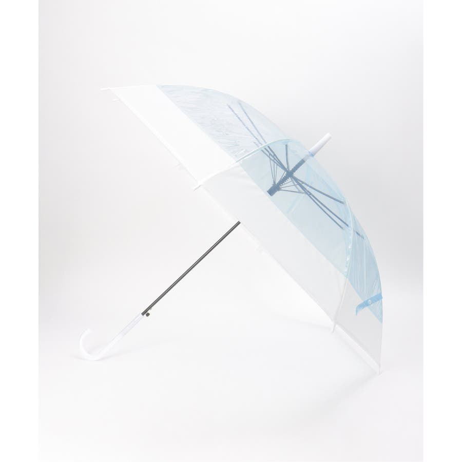 カラーラインの切り継ぎデザインが施されたビニール傘。