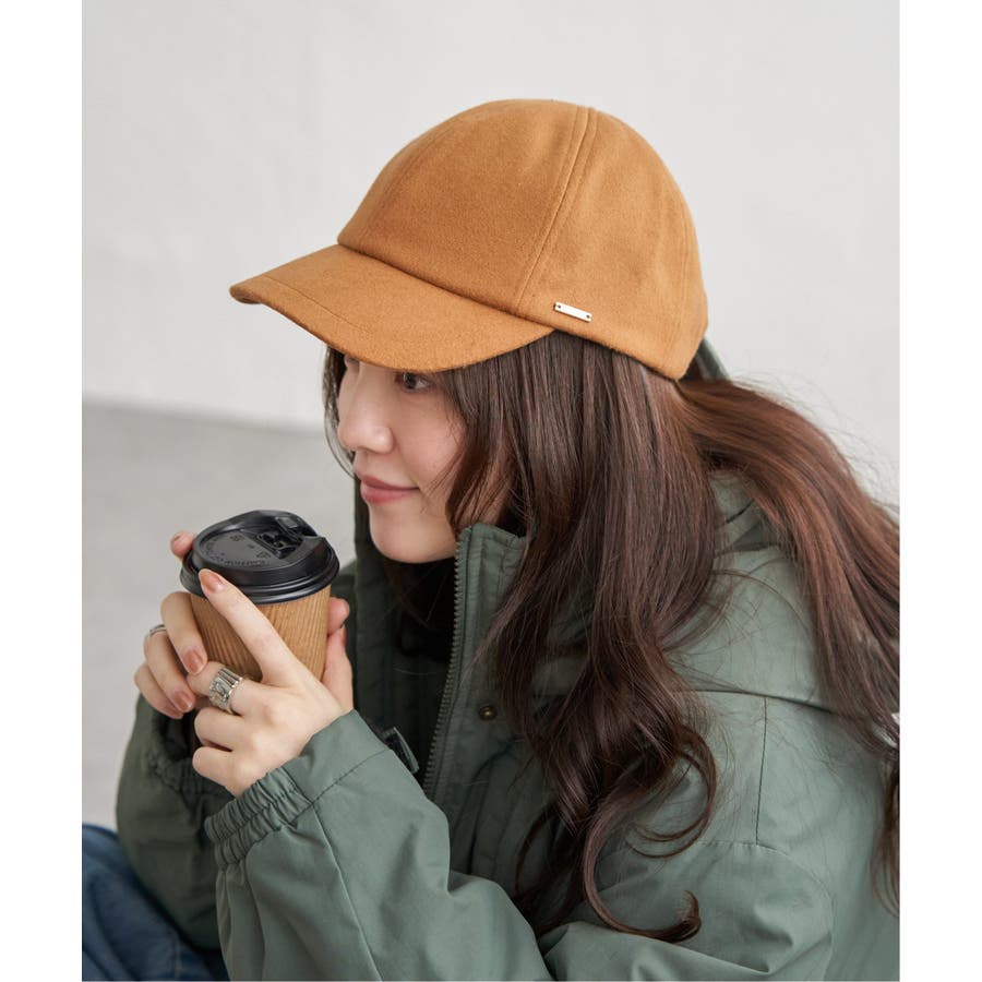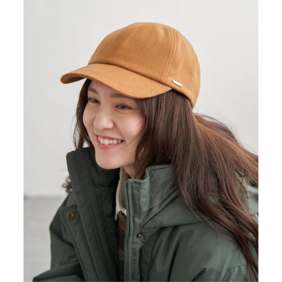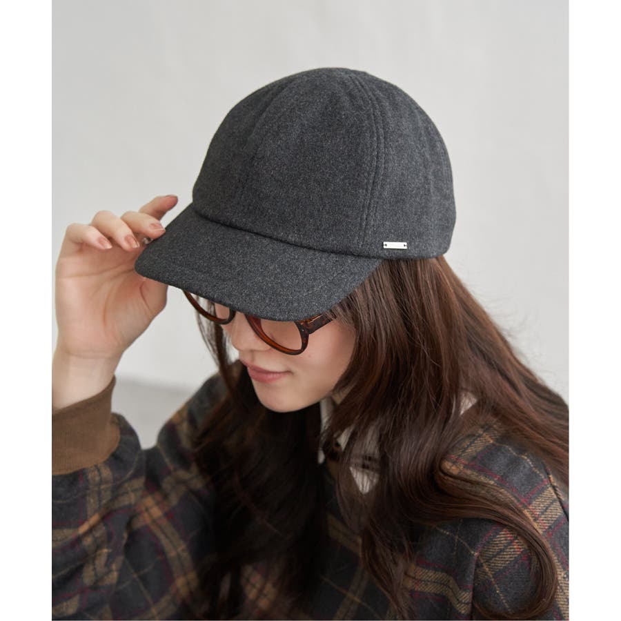 フラノ素材が際立つシンプルなキャップ、短めつばを採用。