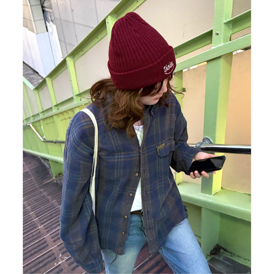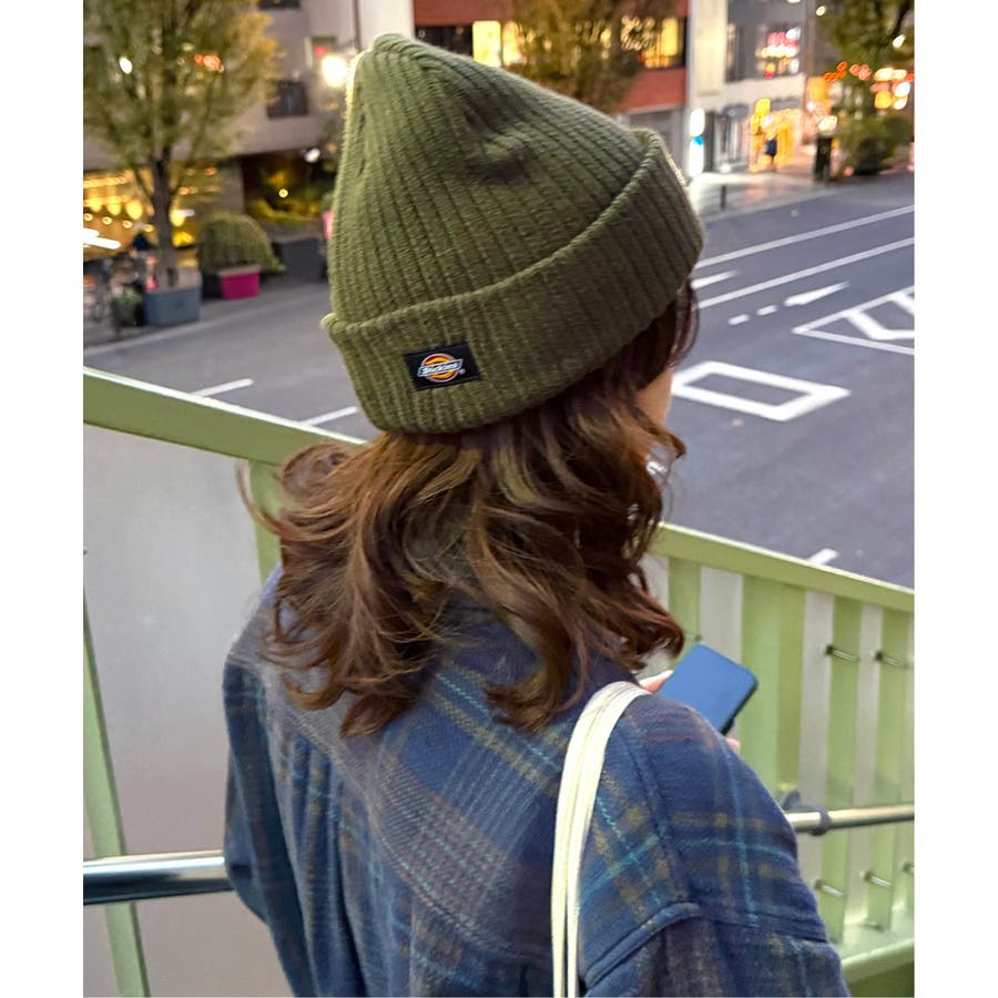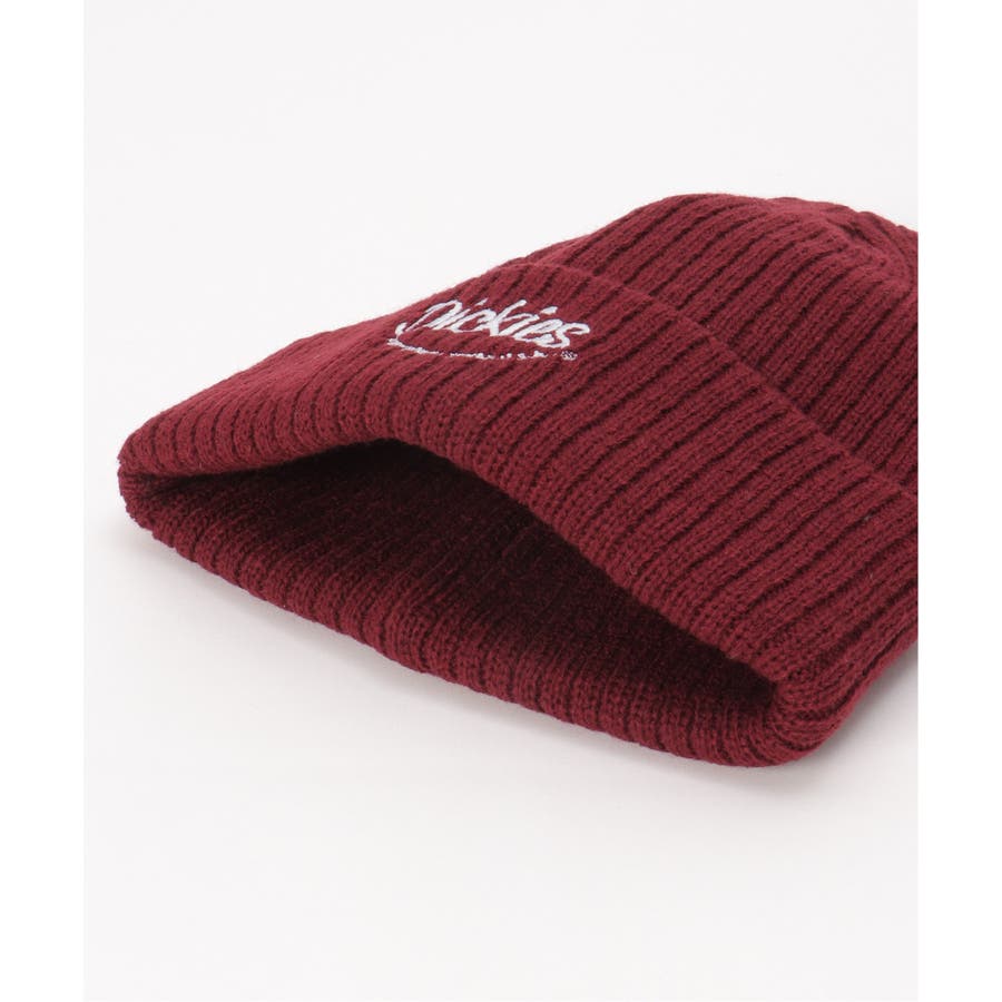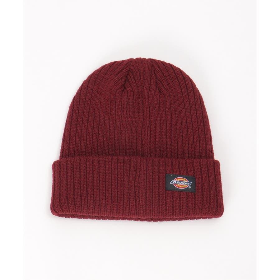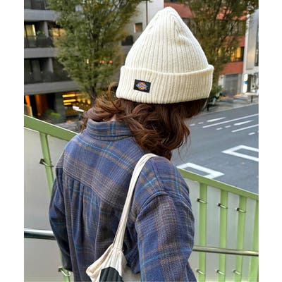 「Dickies/ディッキーズ」の刺繍ロゴとワッペンをアクセントにしたシンプルなニット帽。