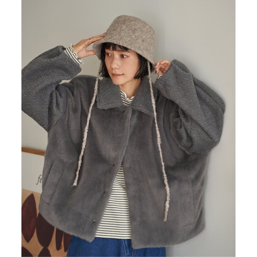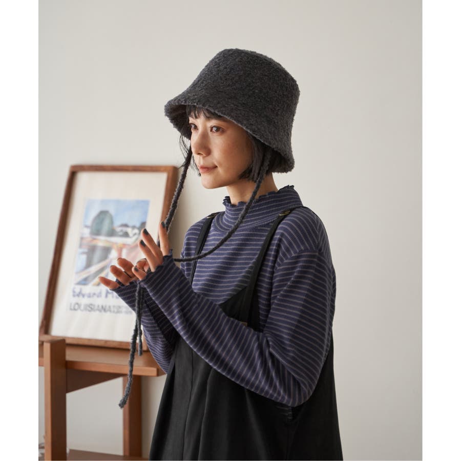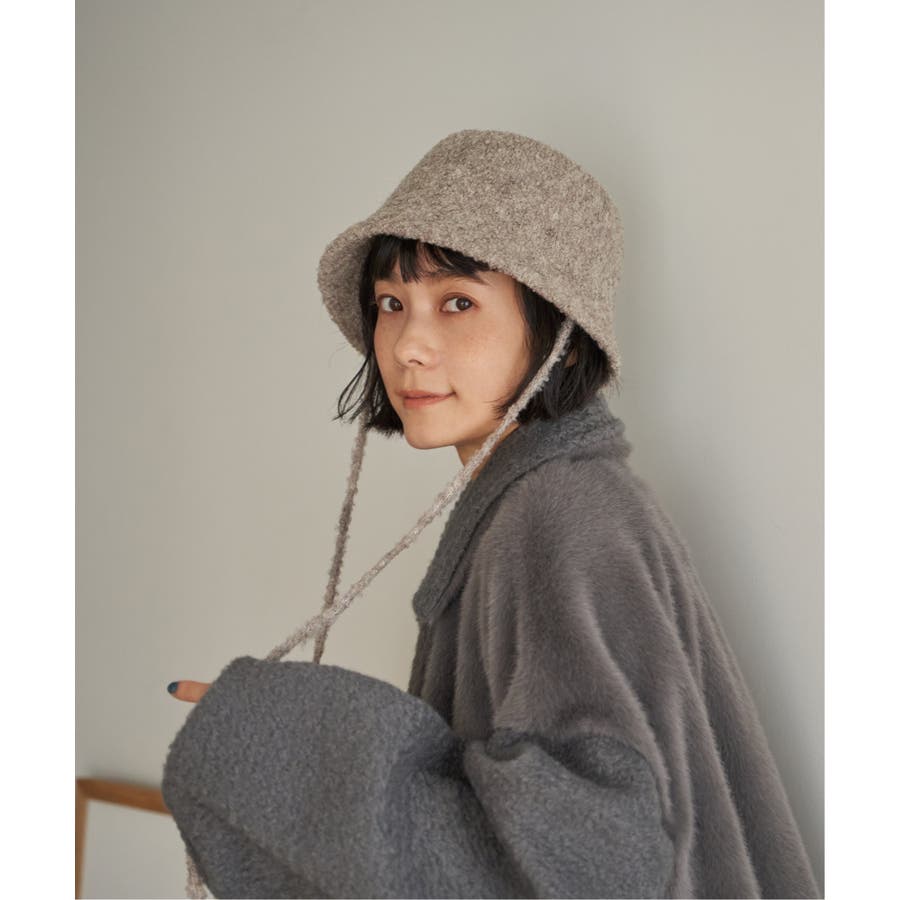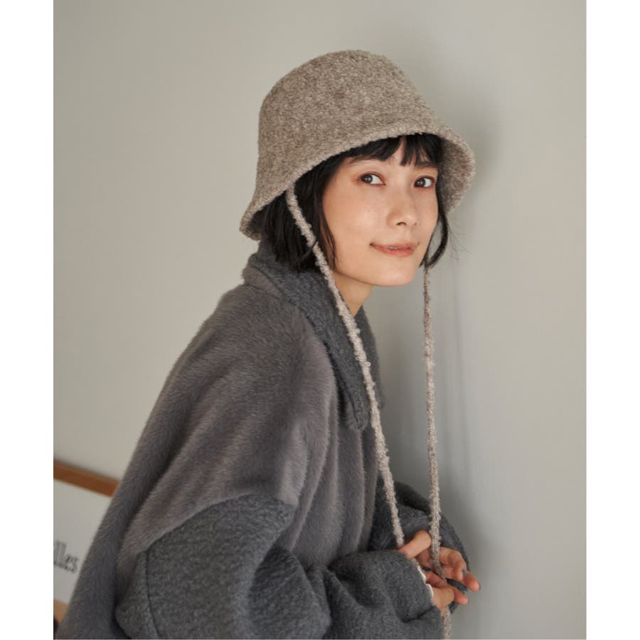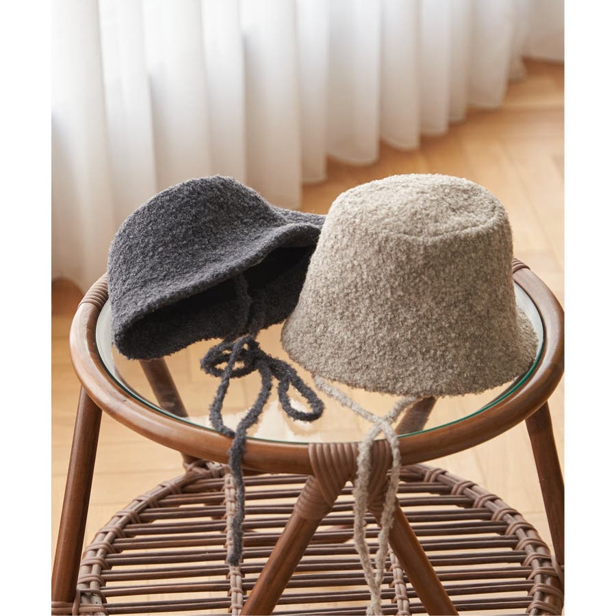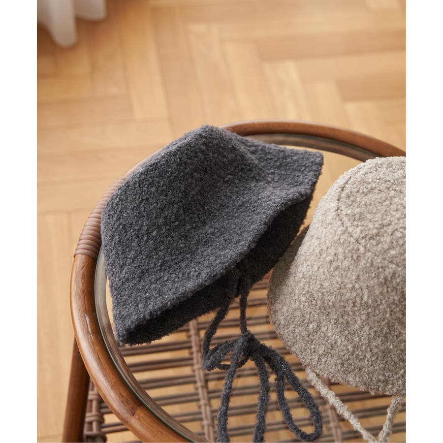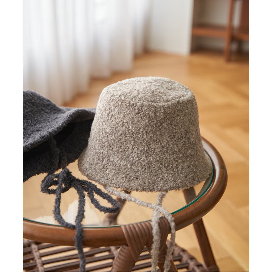 ふんわりとしたブークレー素材を使用した、バケットハット型のハット。