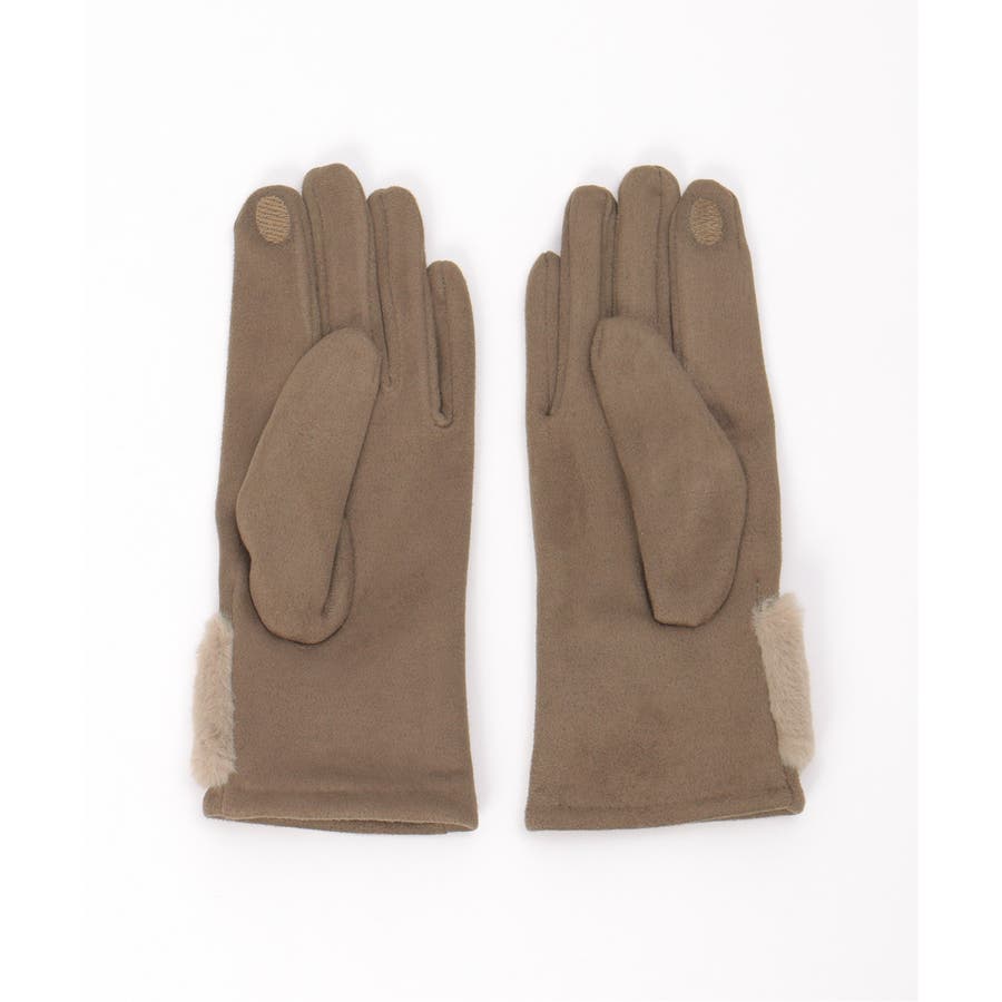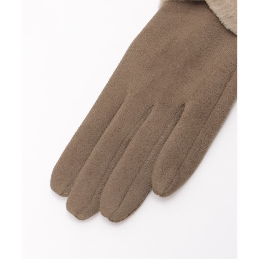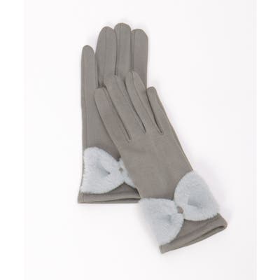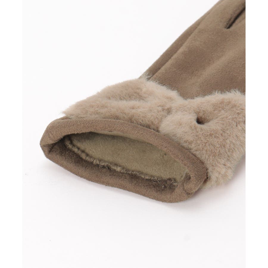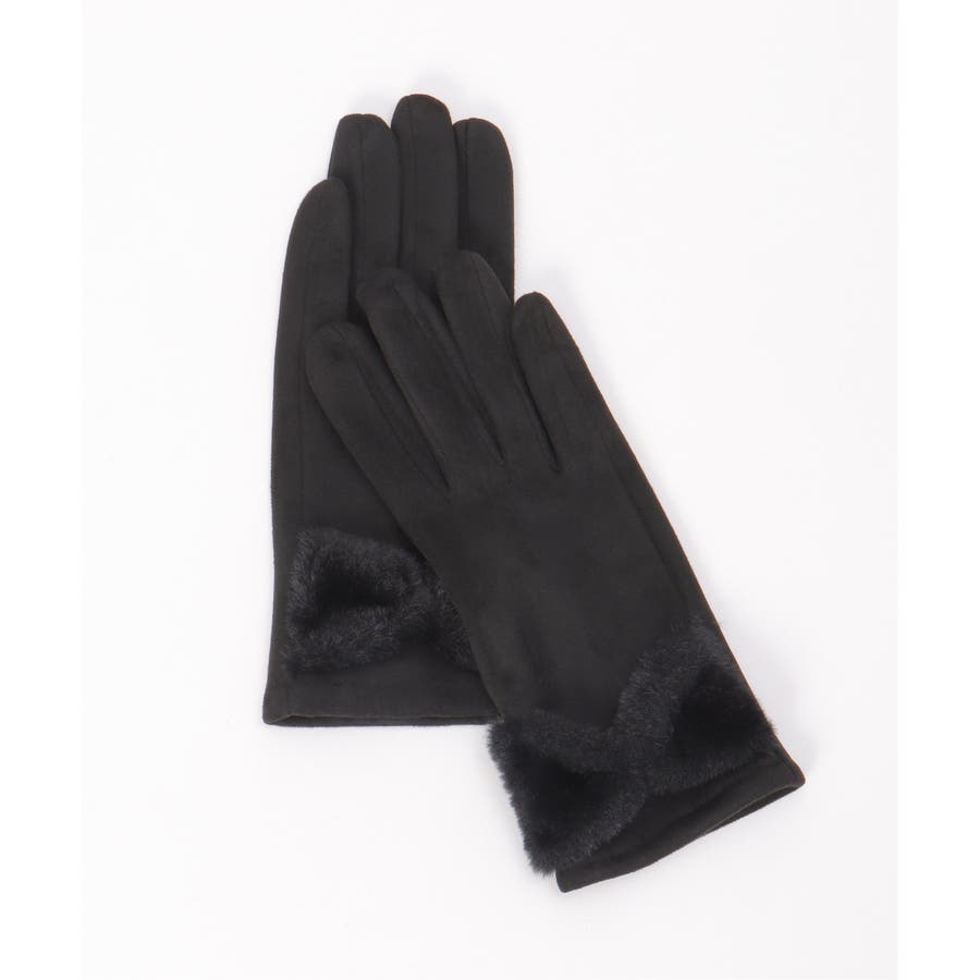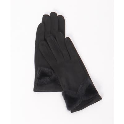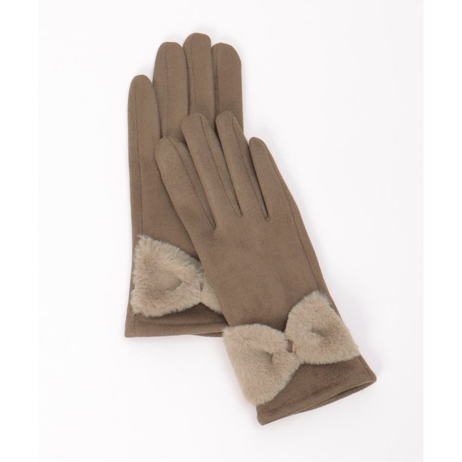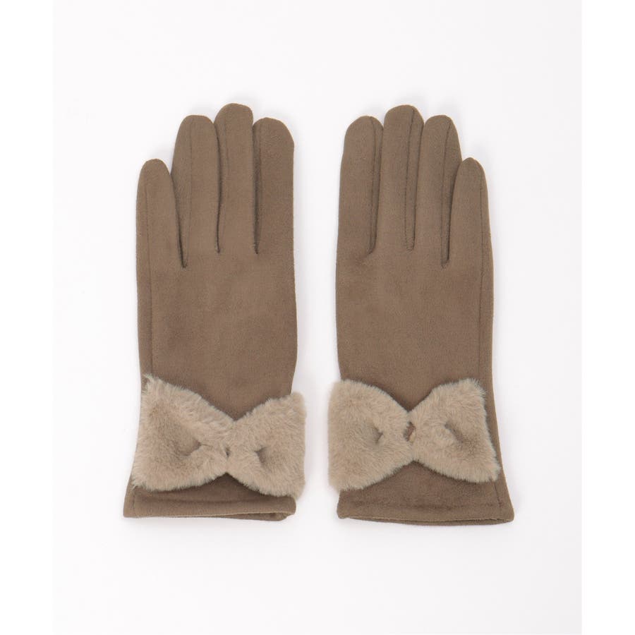 フェイクスエードのしっとりとした質感に、ふわふわのリボンをあしらった愛らしい冬グローブ。