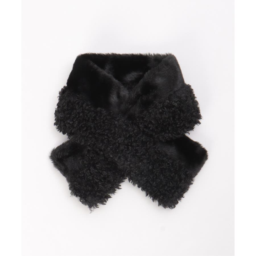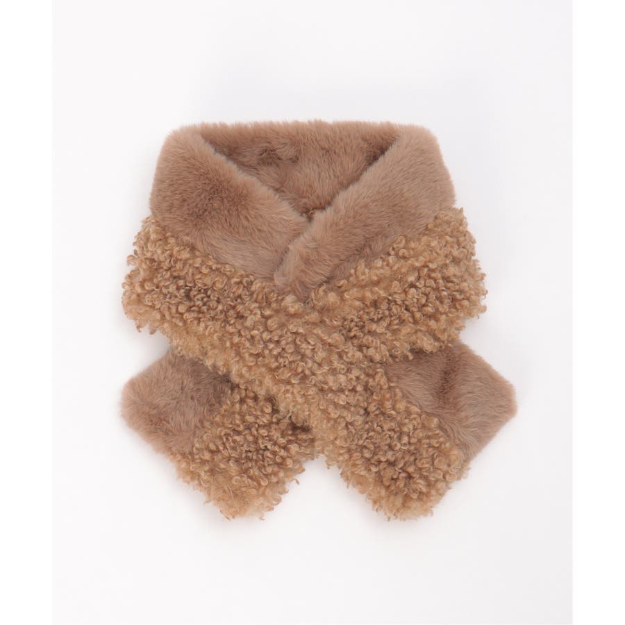異素材のフェイクファーを組み合わせた差し込みマフラー。