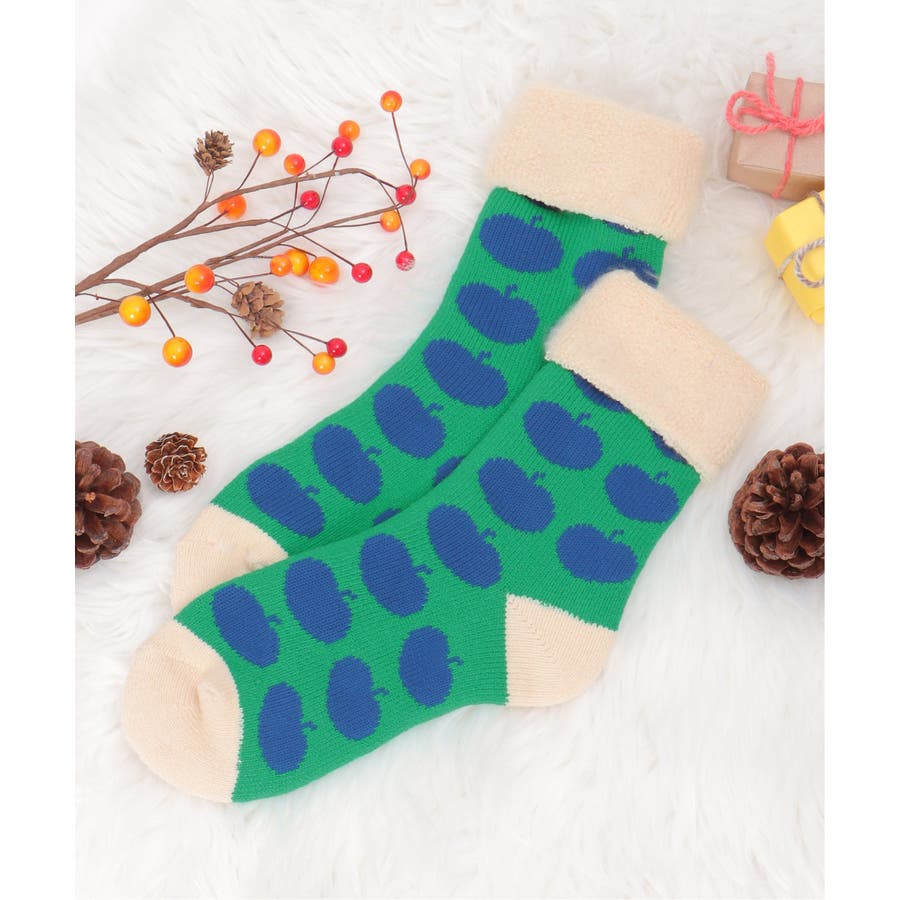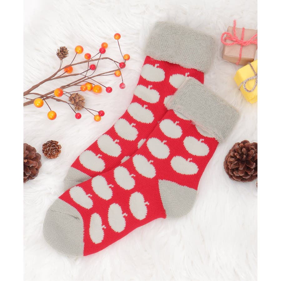 北欧風なアップル柄の裏起毛ソックス。