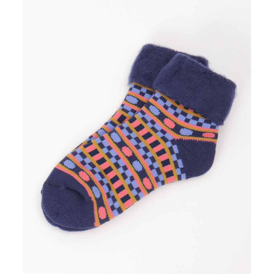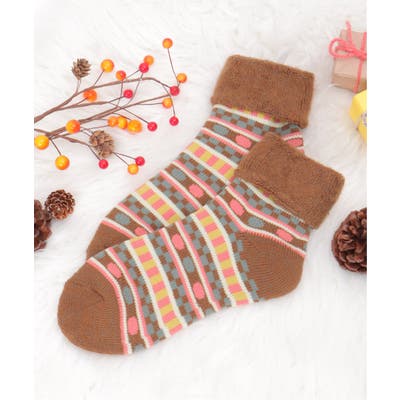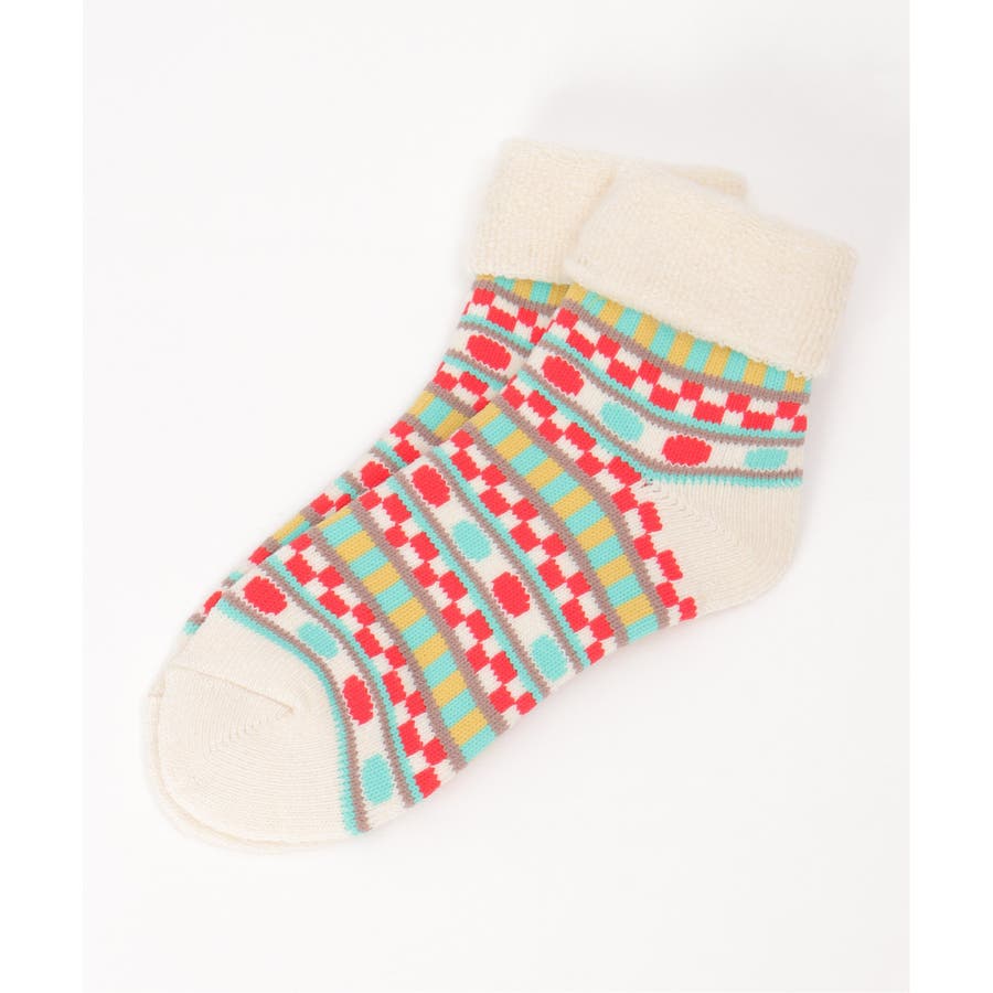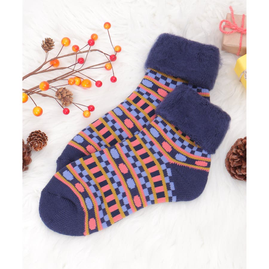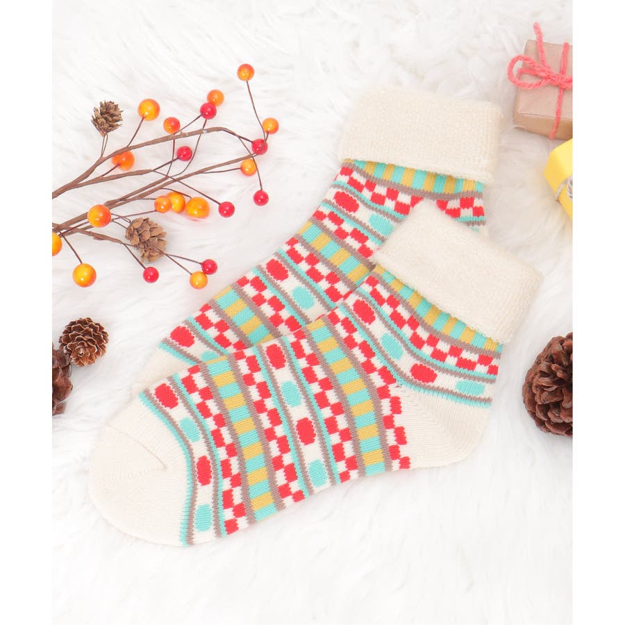 カラフルなノルディック柄の裏起毛ソックス。
