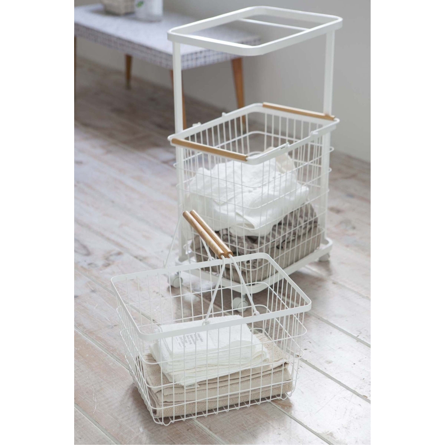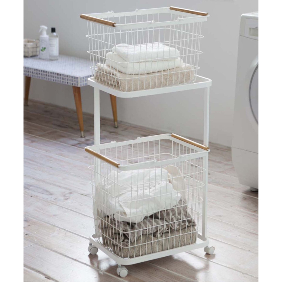 ランドリーバスケットを上下に置けるランドリーワゴンです。