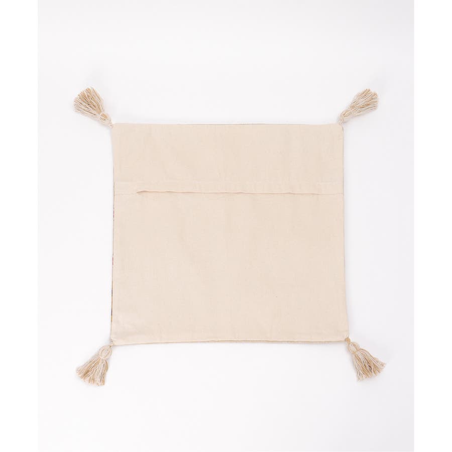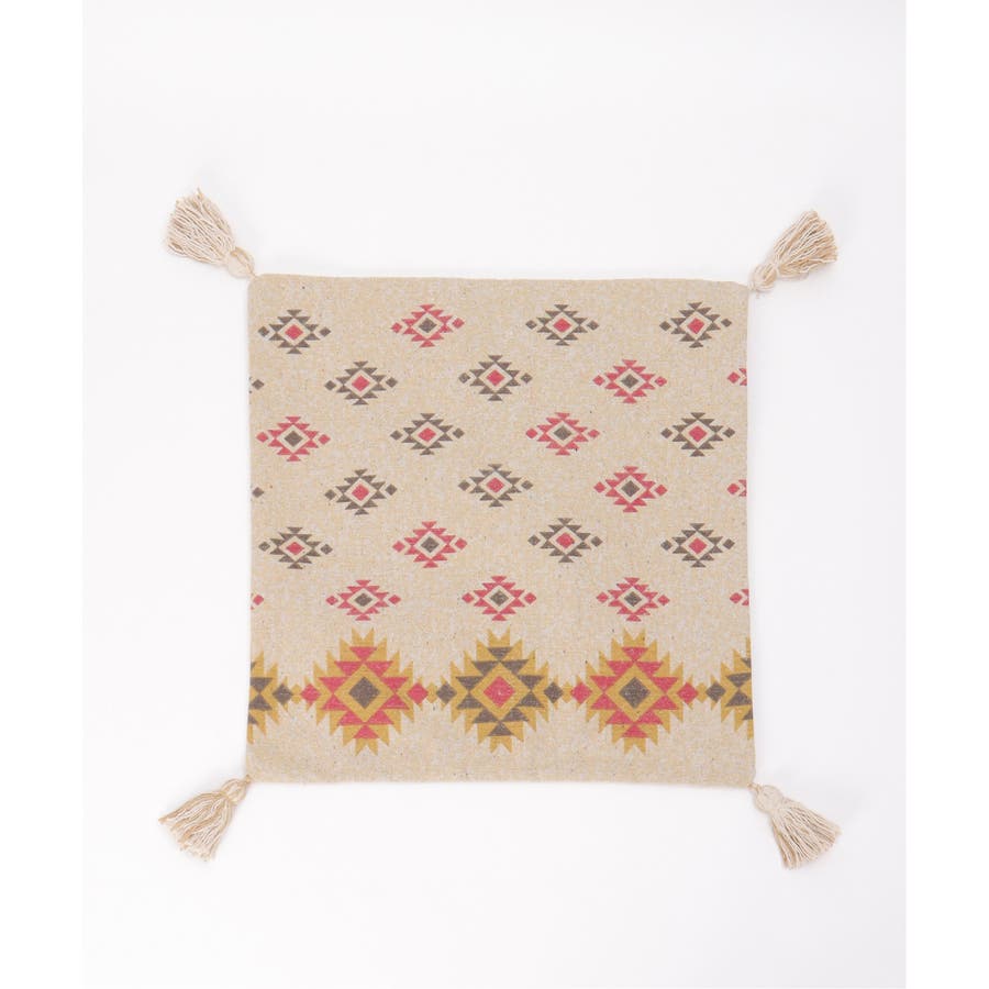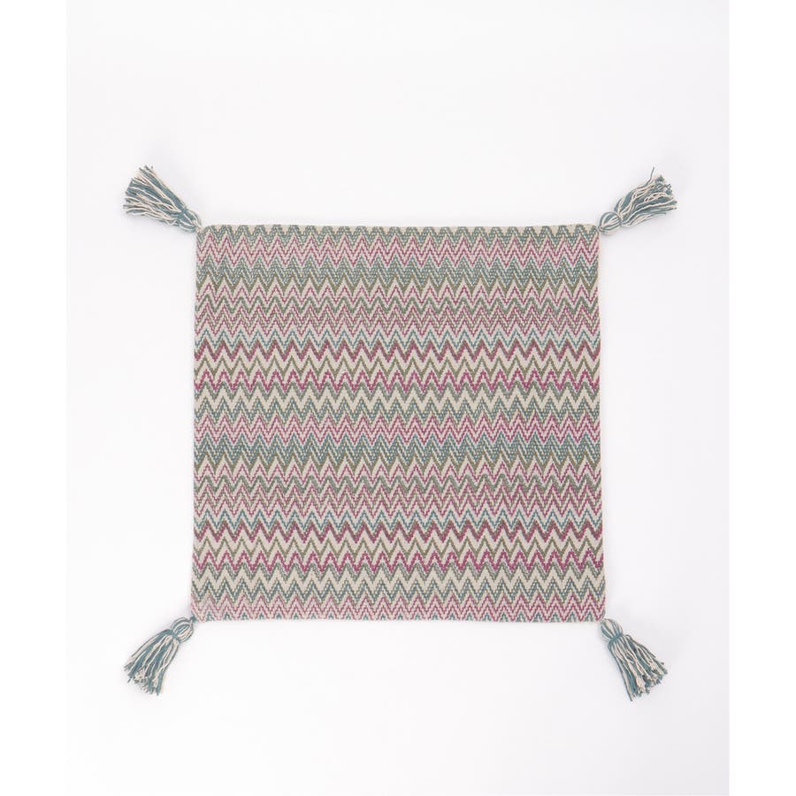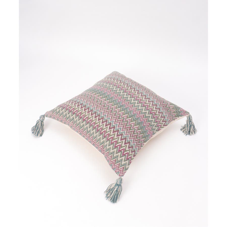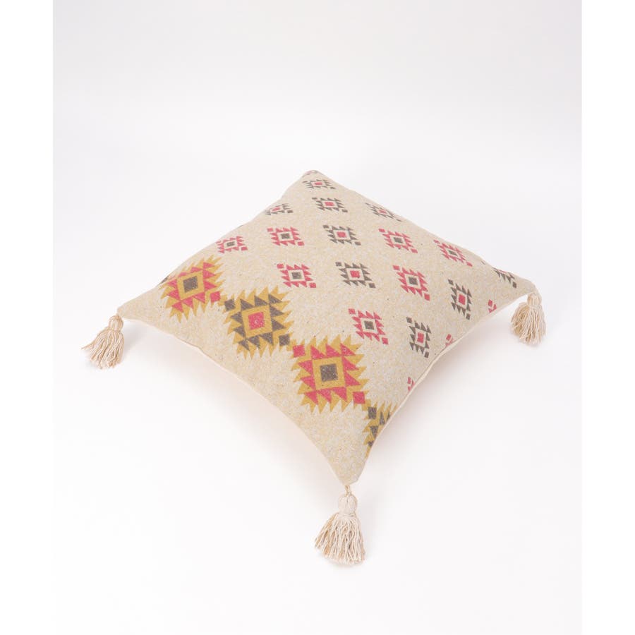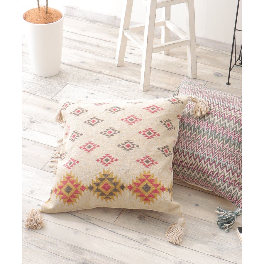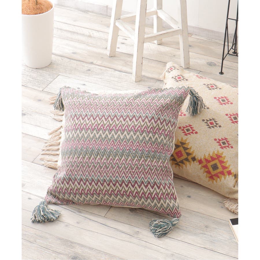 タッセル付きのストーンウォッシュ加工のクッションカバー。