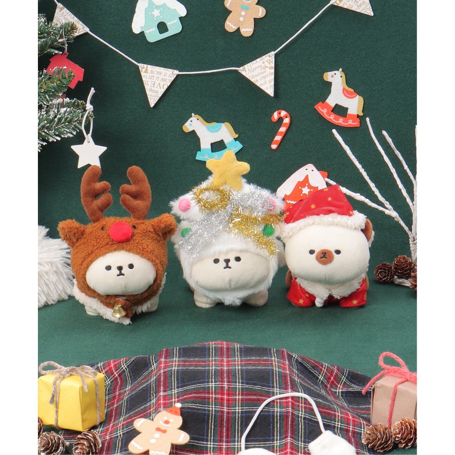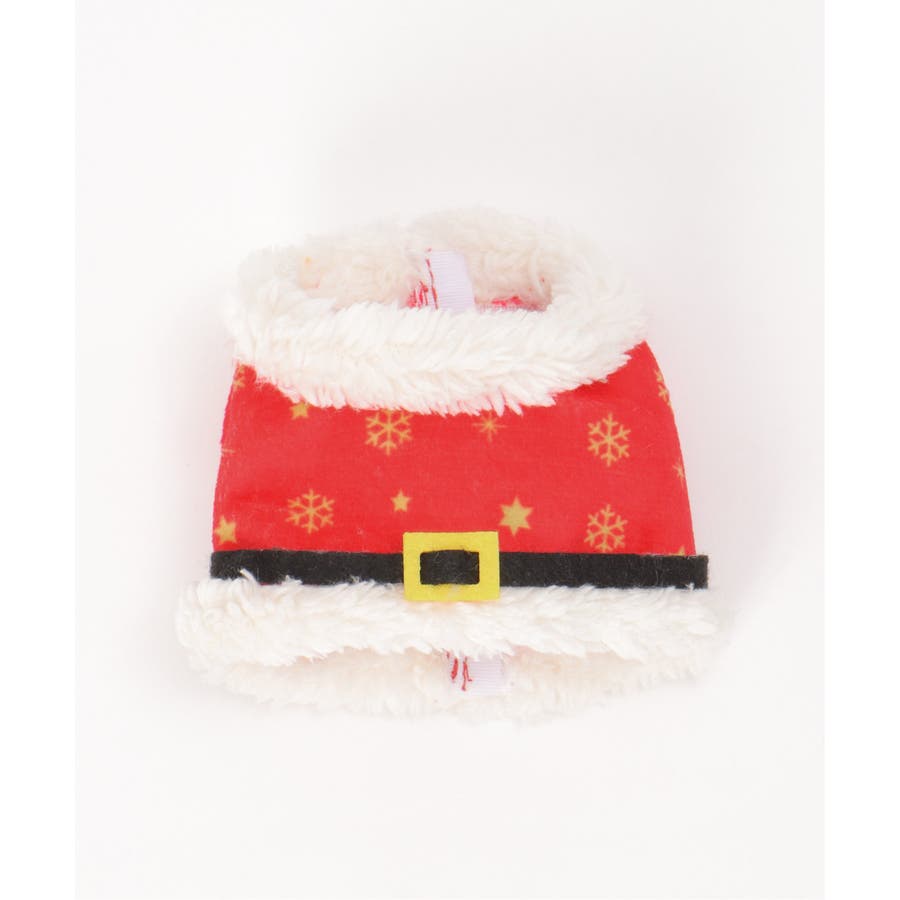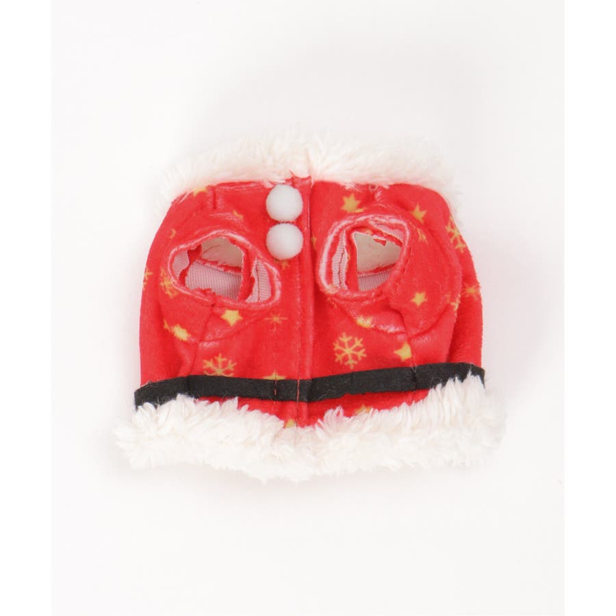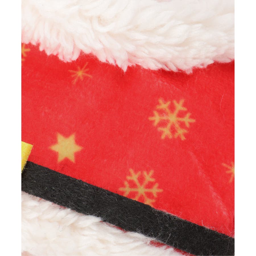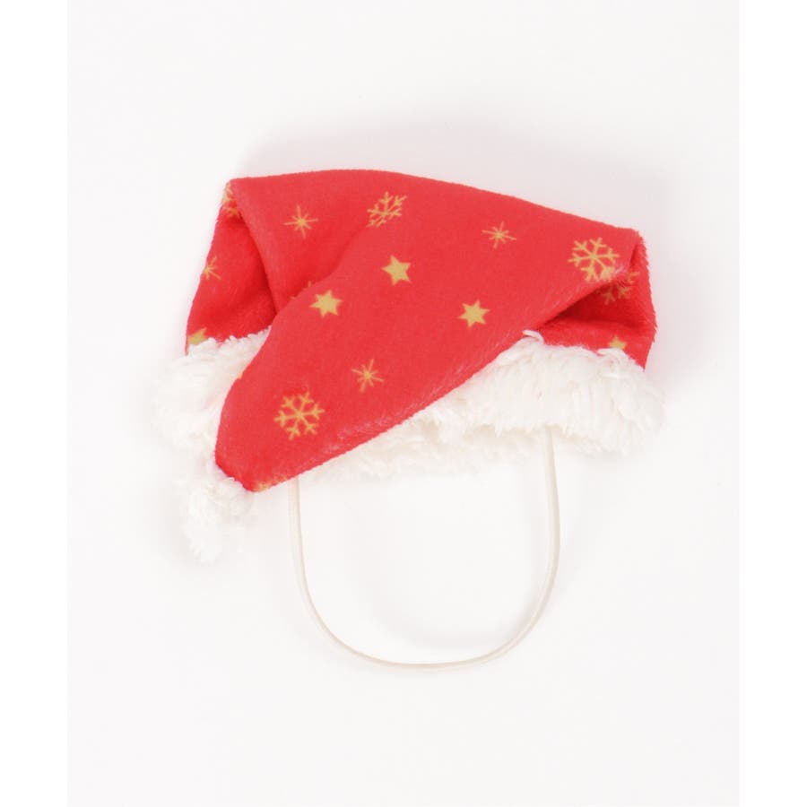 雪柄のプリントを施したサンタクロースのかぶりものセット。