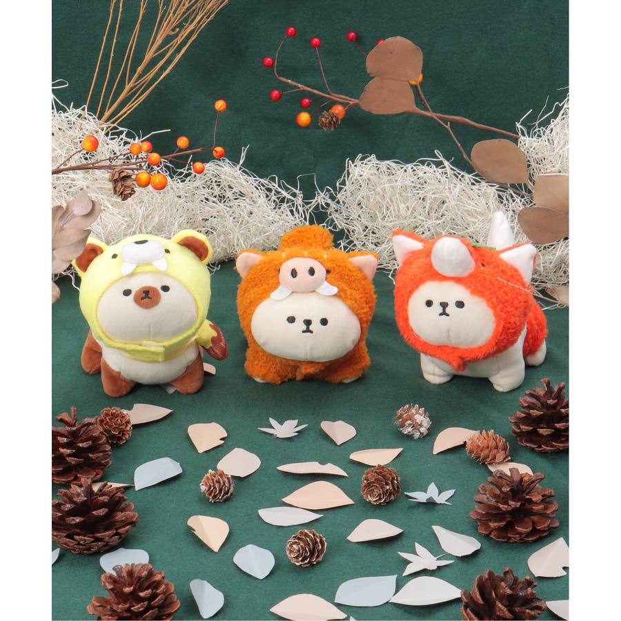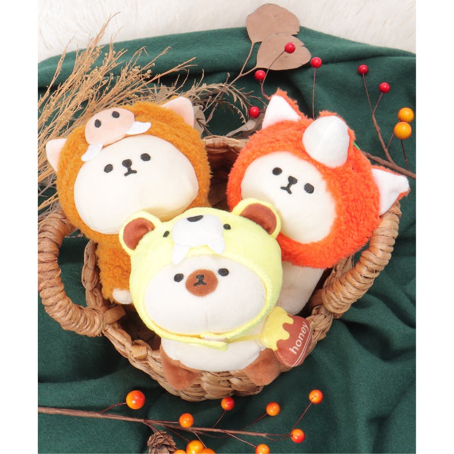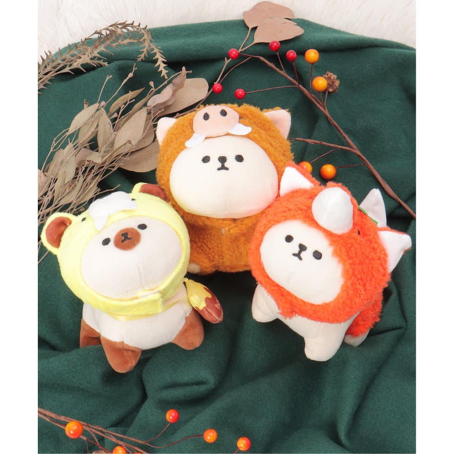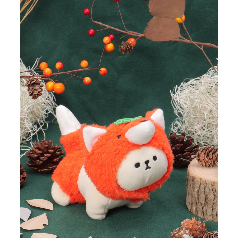 発色のよいオレンジ色がキツネらしいかぶりもの。