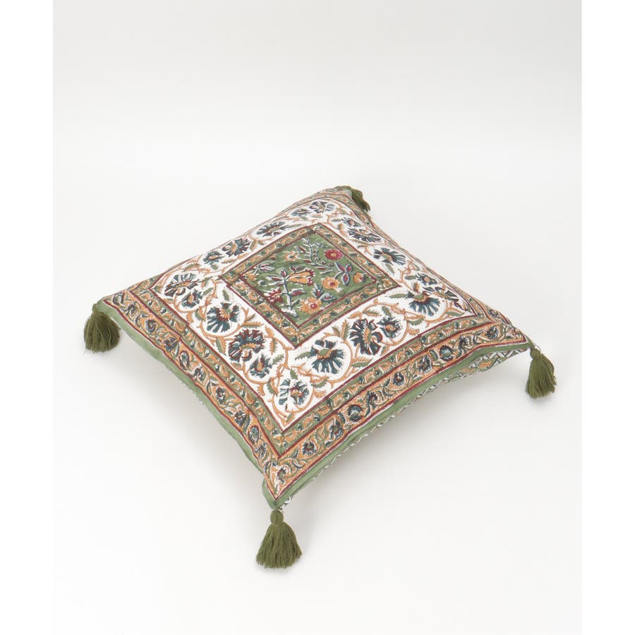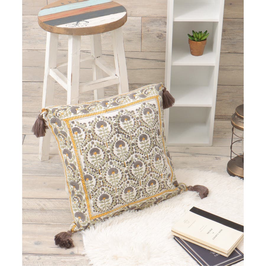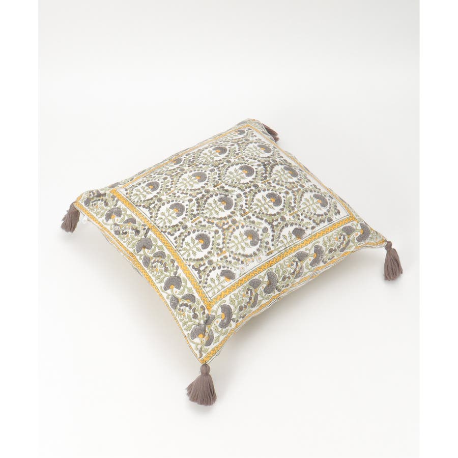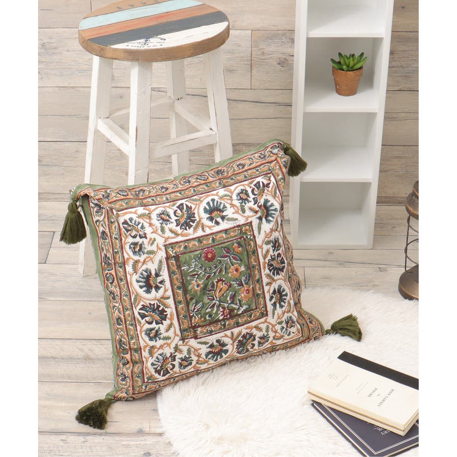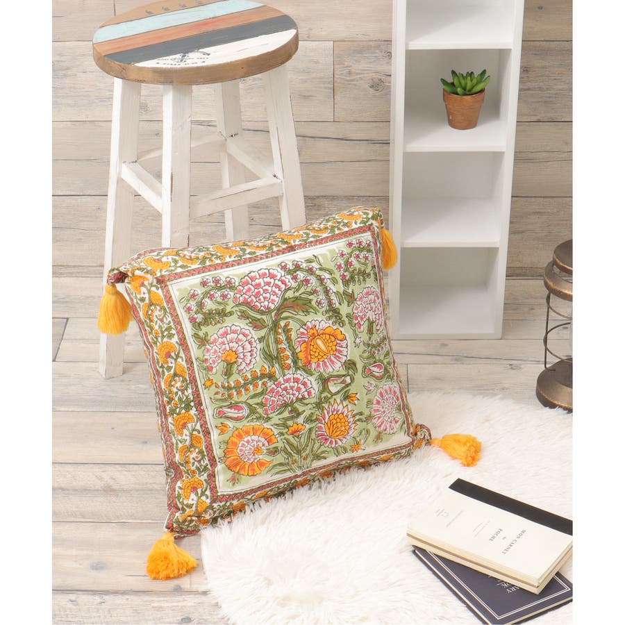 職人によるハンドメイドで作られたブロックプリントのクッションカバー。