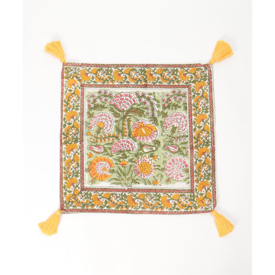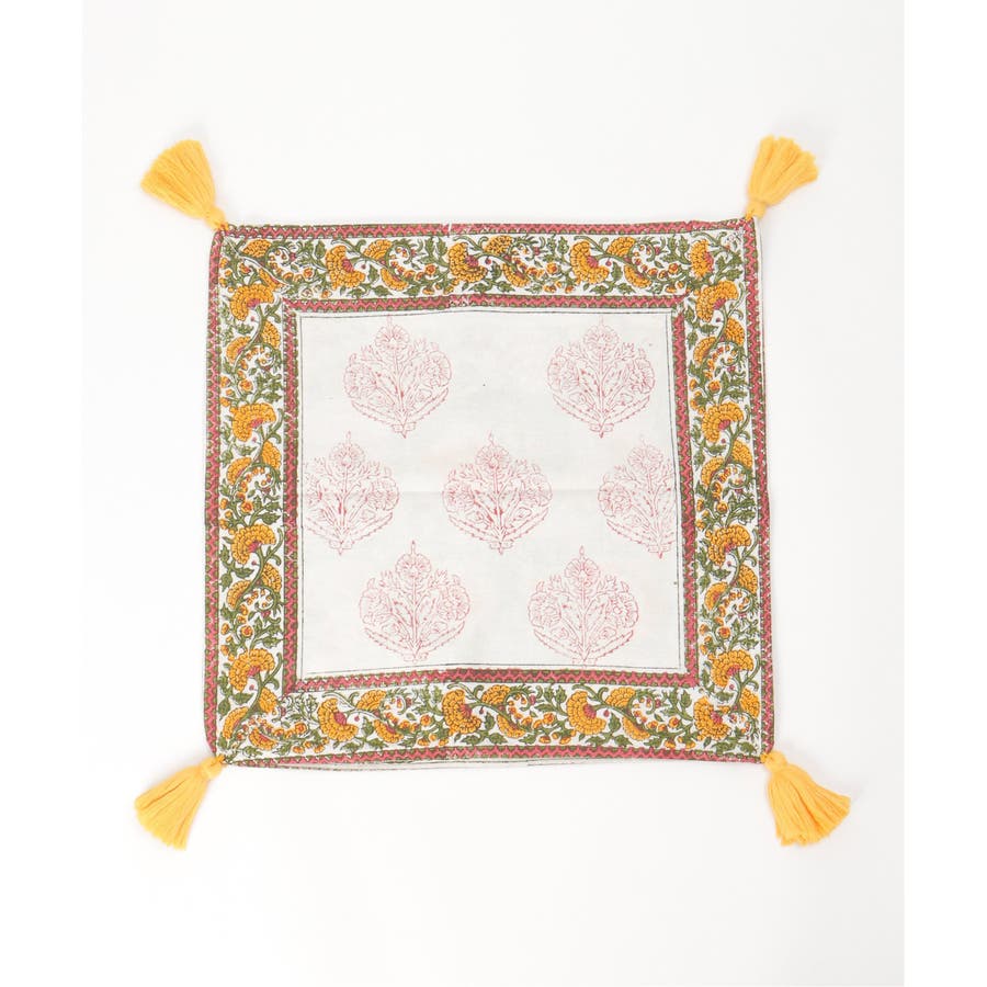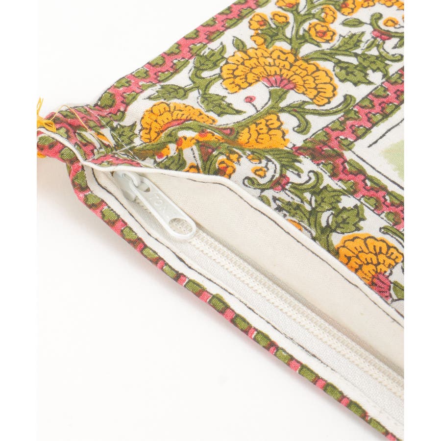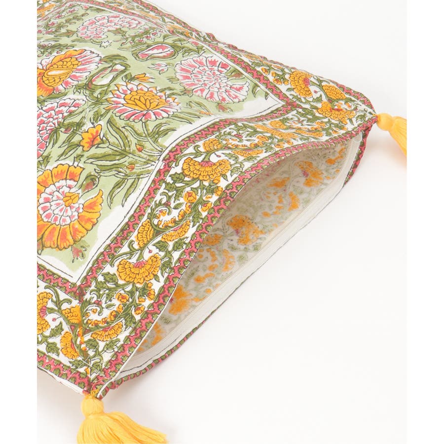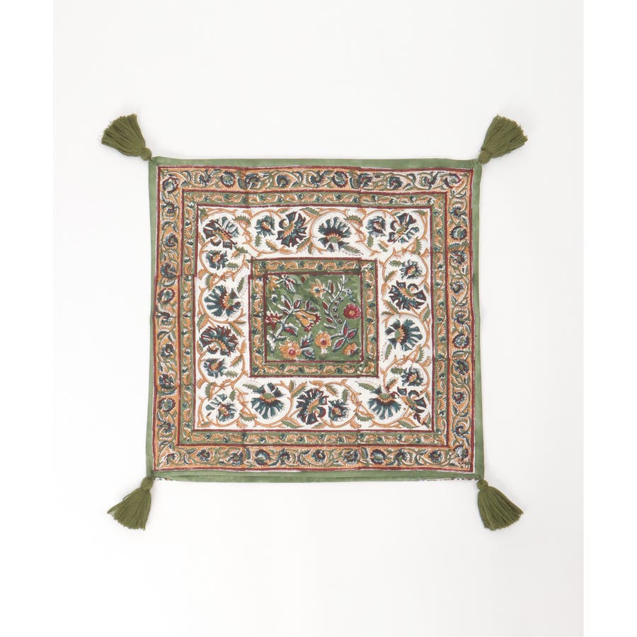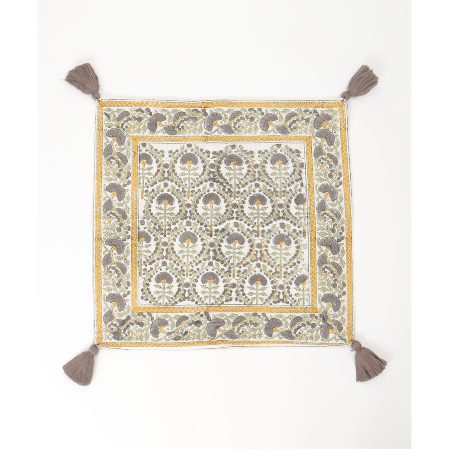 職人によるハンドメイドで作られたブロックプリントのクッションカバー。