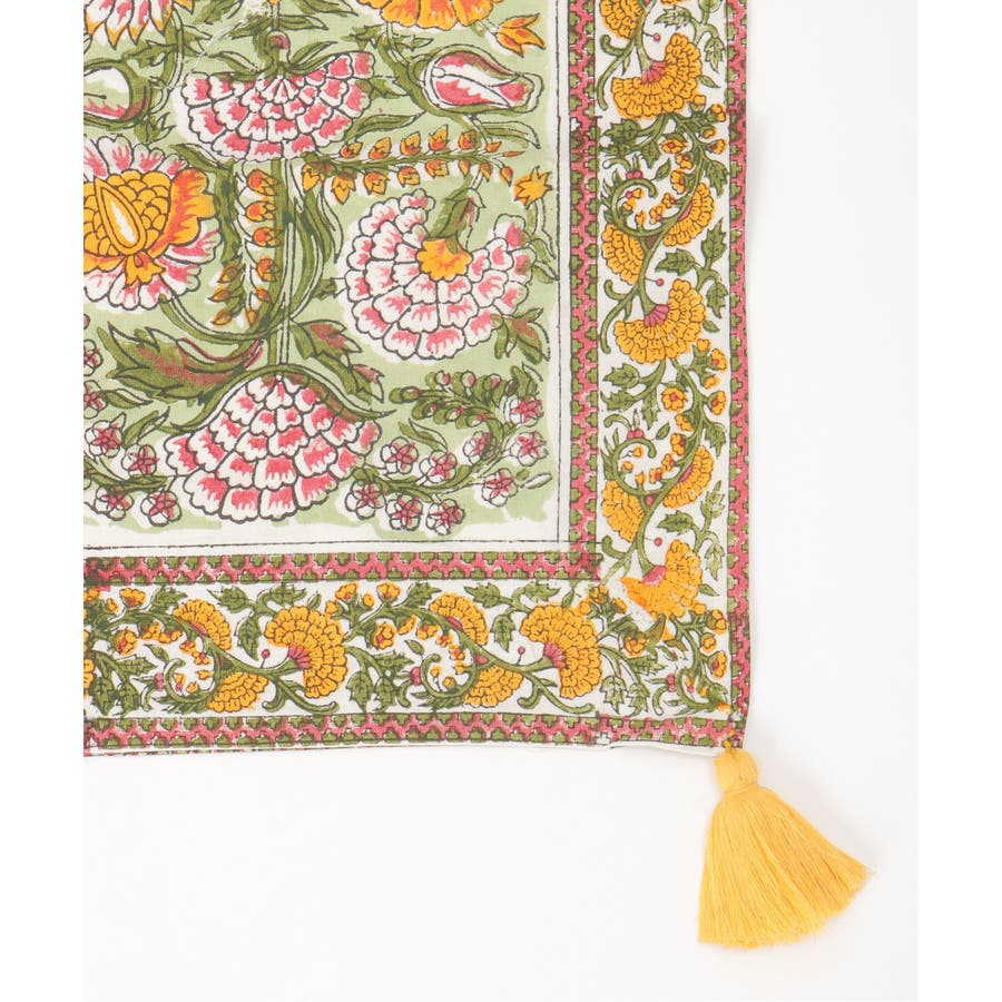 木版を使って職人がひと版ひと版、手でスタンプを押すように生地の上にプリントして作られたインドの伝統的な布を使用。