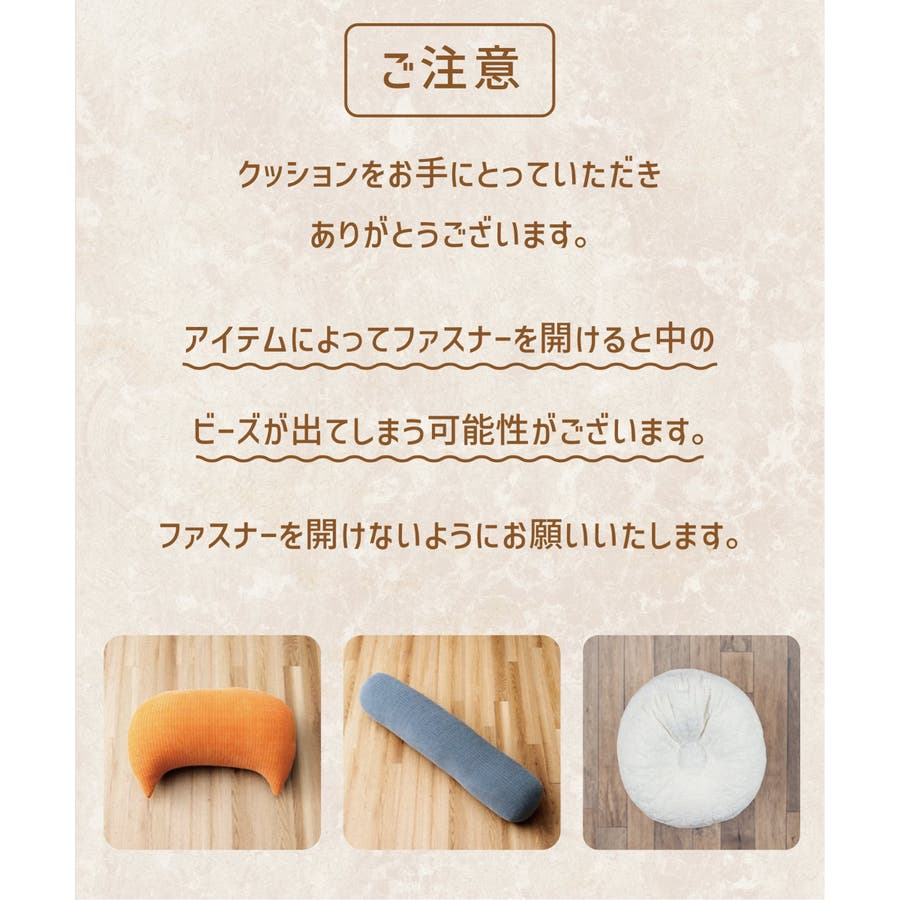 本商品は中材にマイクロビーズを使用しており、素材の特性(流動性・静電気の帯びやすさ)により、製造工程上ファスナー仕様となっております。なお、ファスナーは中材補充用ではなく、製造時に中材を封入するためのものであり、補充はできない仕様となっております。