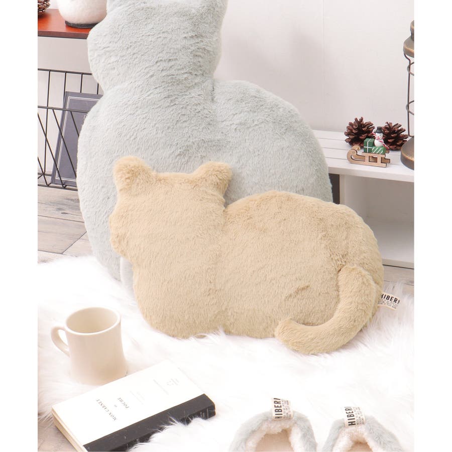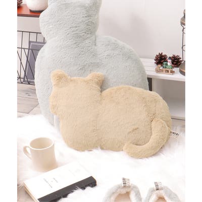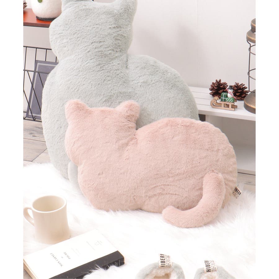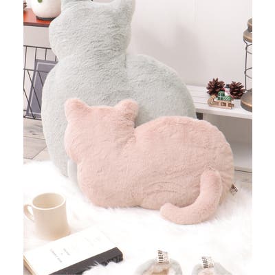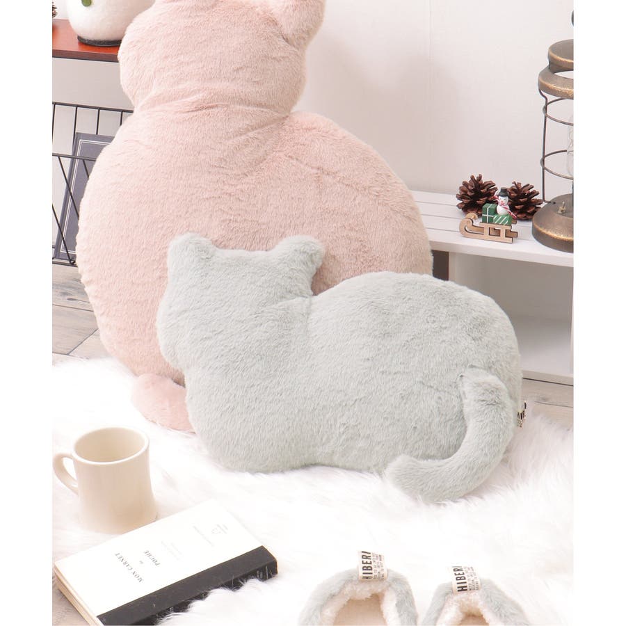 見た目にも癒されるもこもこ素材のネコ型クッション。