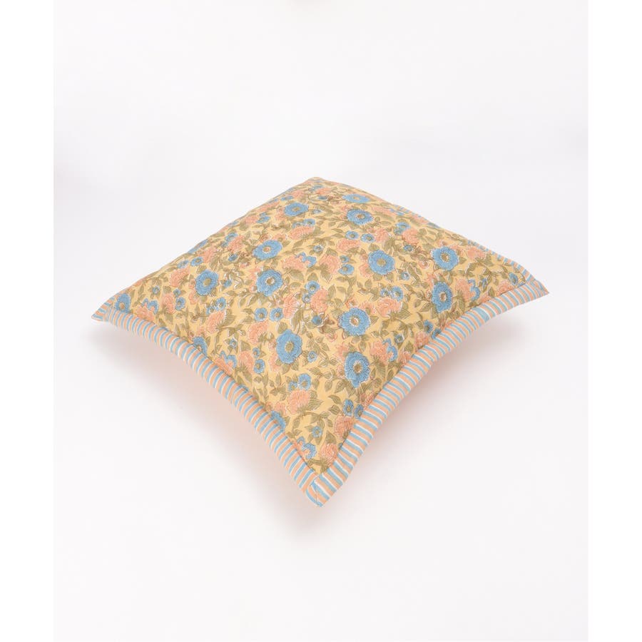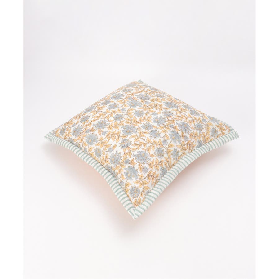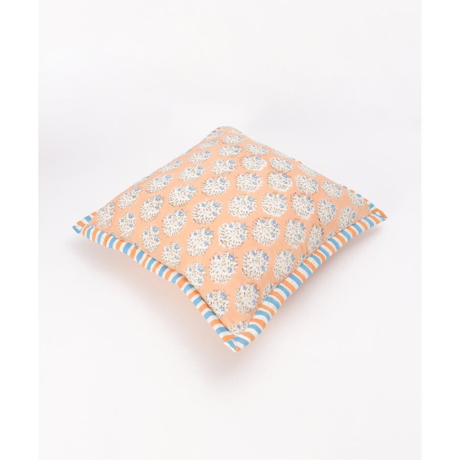 インドの伝統技法「ブロックプリント」でデザインされたクッションカバー。