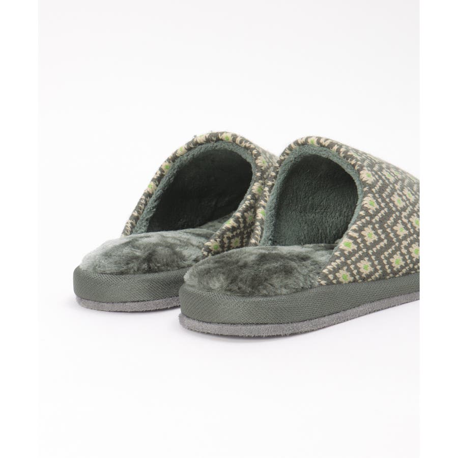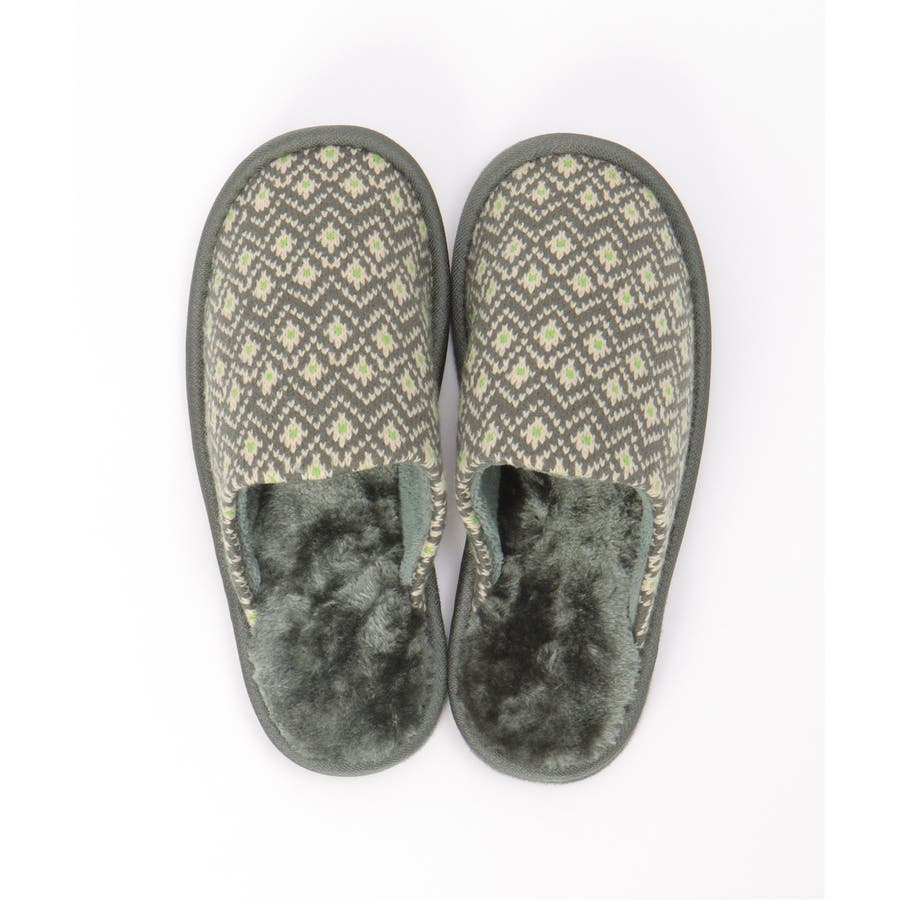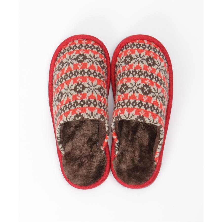 季節感たっぷりなノルディック柄のニットスリッパ。