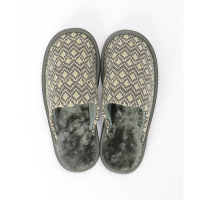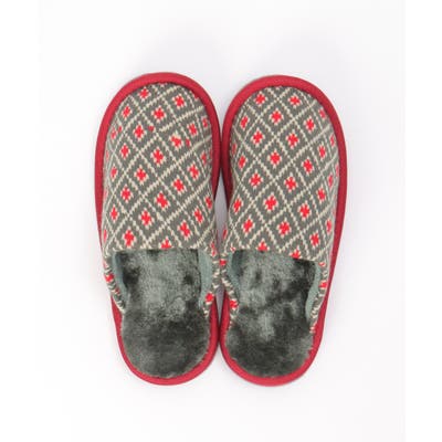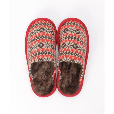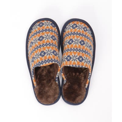 カラフルなノルディック柄のニットスリッパ。