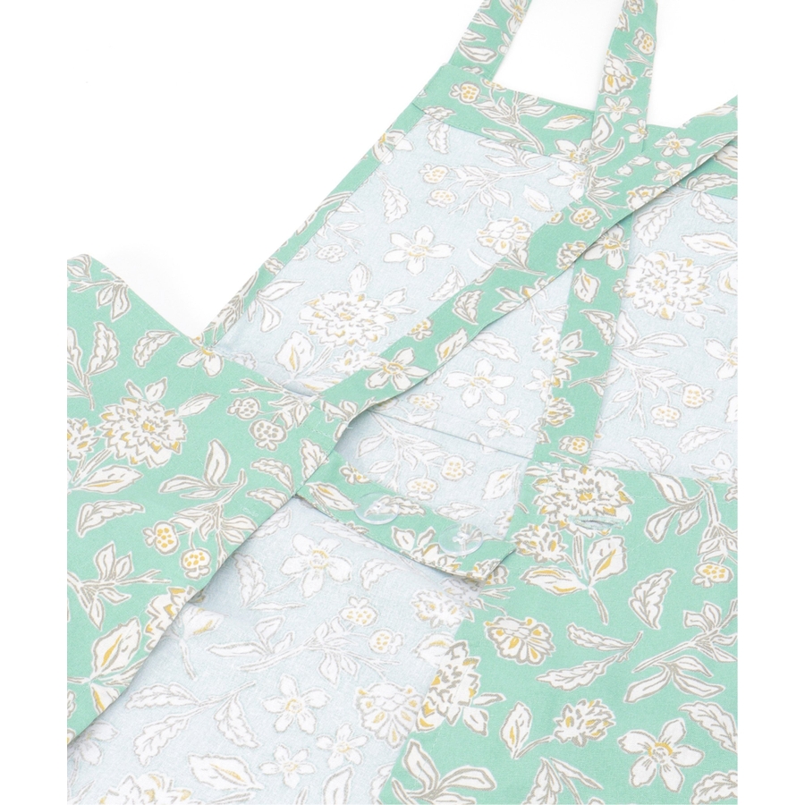 やさしい草花モチーフをあしらったフローラルエプロン。