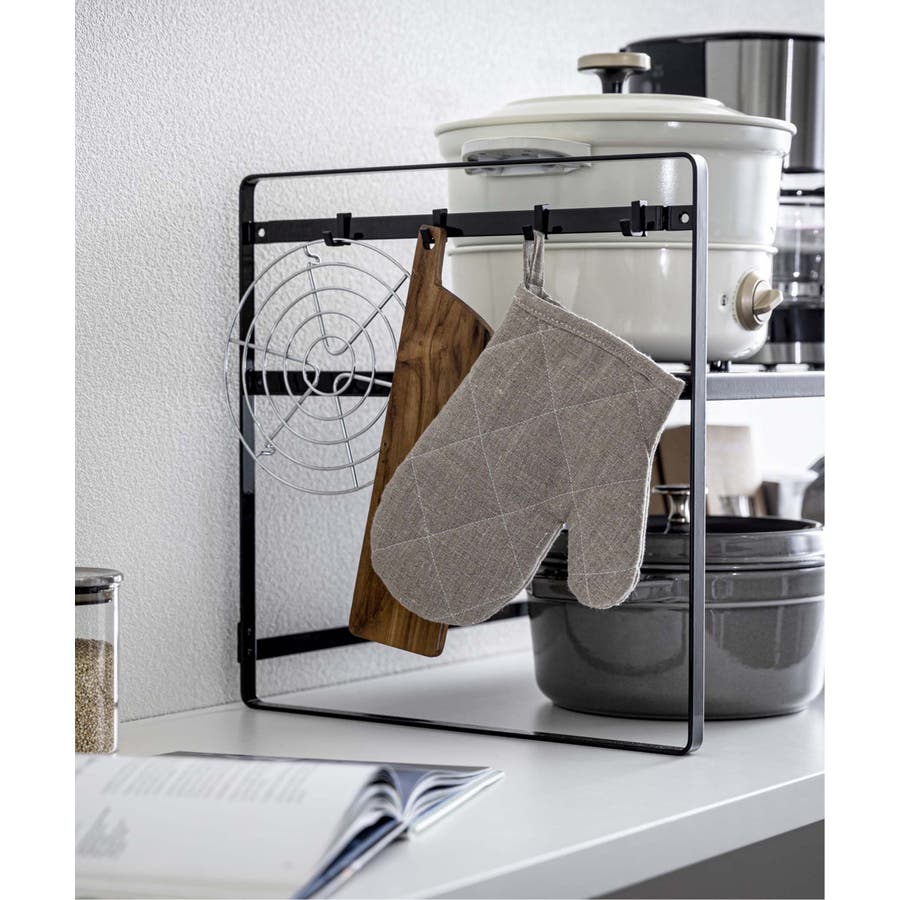 白、黒のモノトーンデザインがおしゃれな「tower/タワー」のトースターラック、ワイドサイズ。
