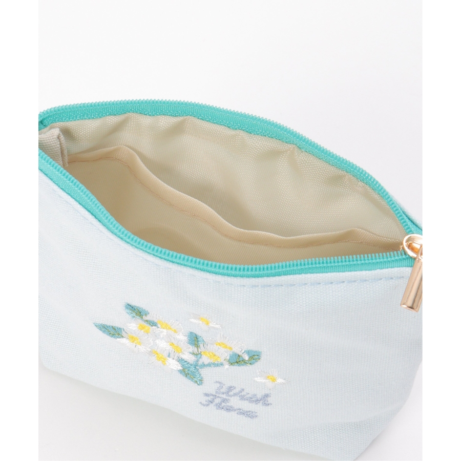 ポーチはジャスミンのお花を刺しゅうしたマチ付きで、小物を持ち歩くのにちょうどよいサイズです。