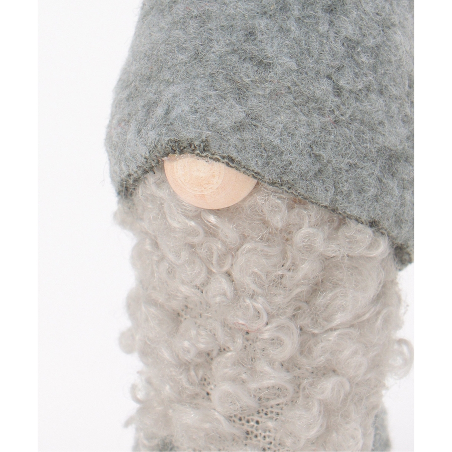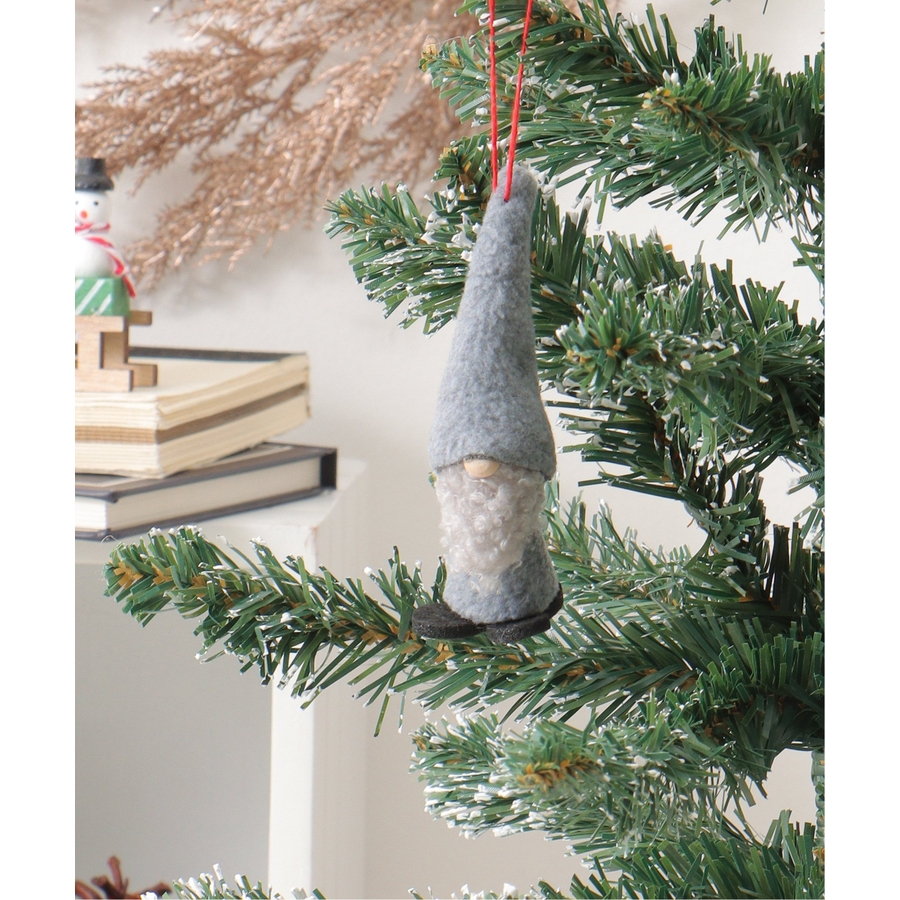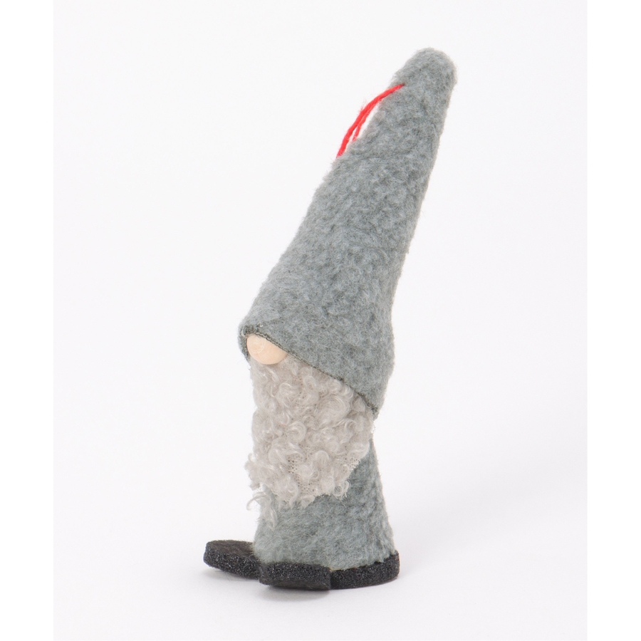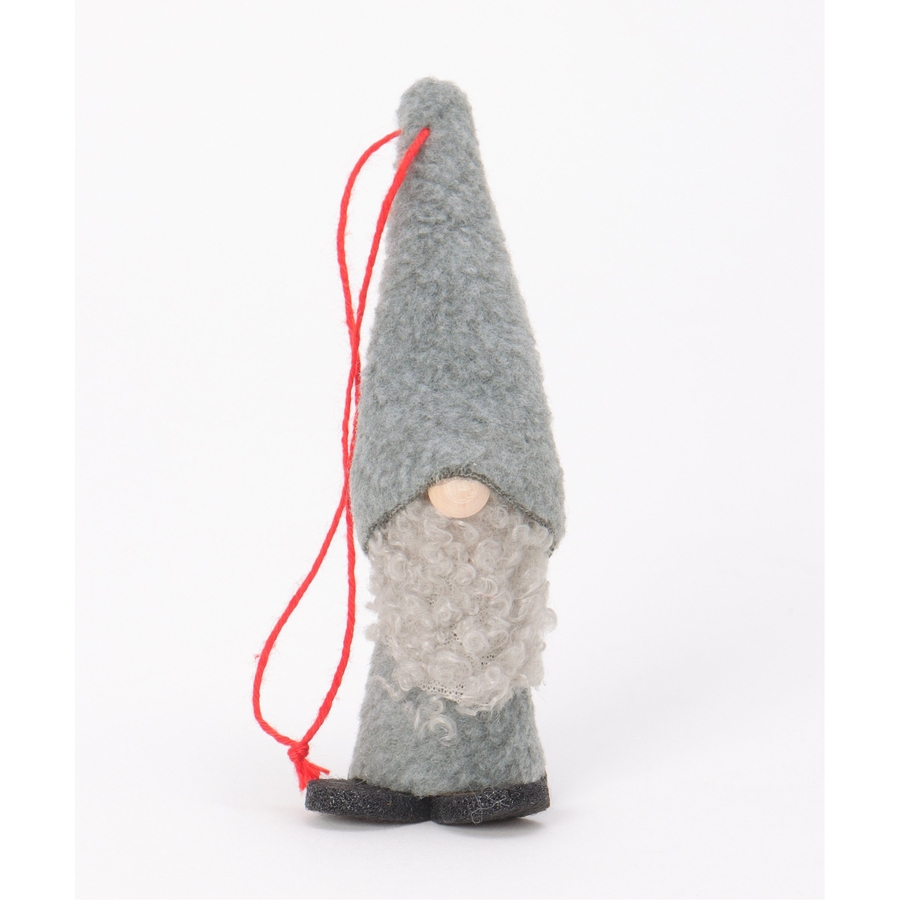 長い帽子とふわふわの白いひげが印象的な愛らしいノームのオーナメント。
