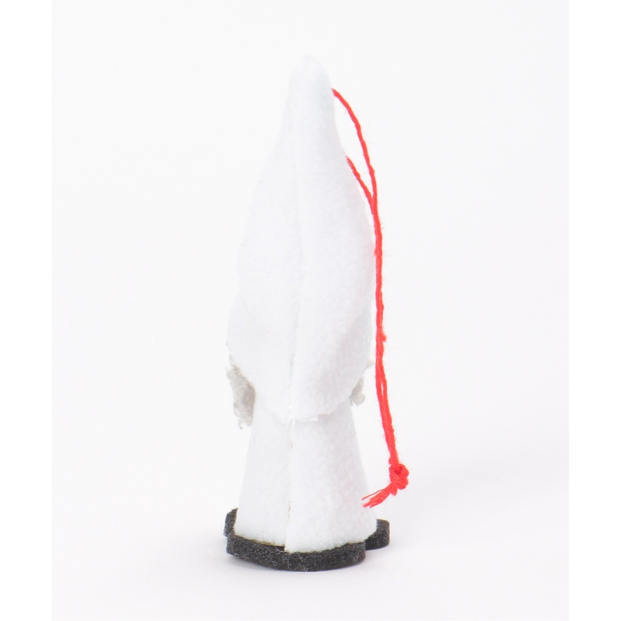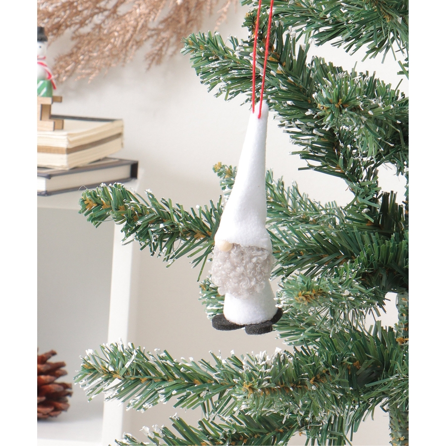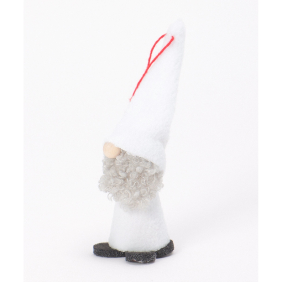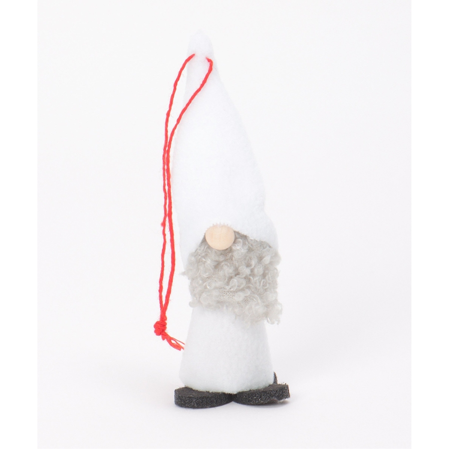 長い帽子とふわふわの白いひげが印象的な愛らしいノームのオーナメント。