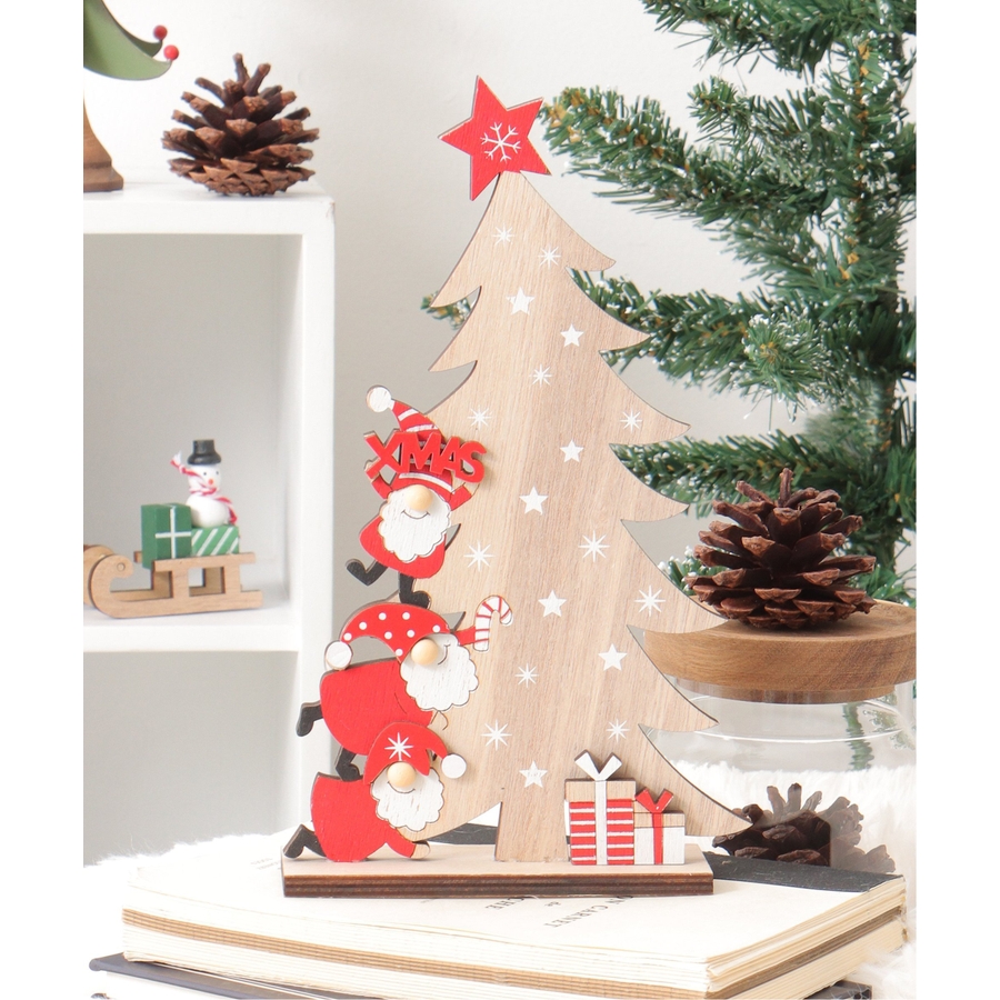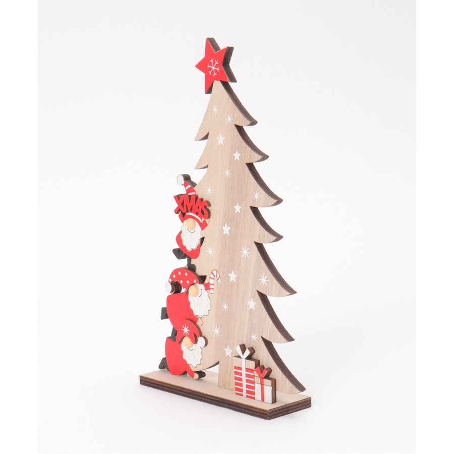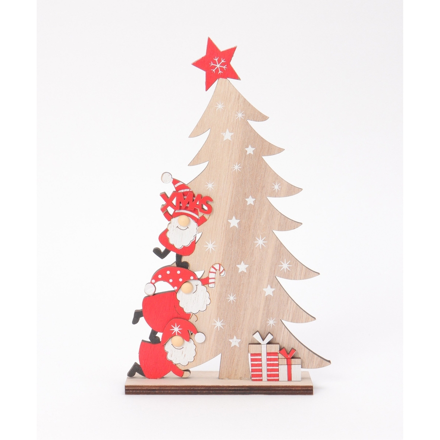 トムテたちがツリーに飾り付けをしている様子を表現した木製オブジェです。