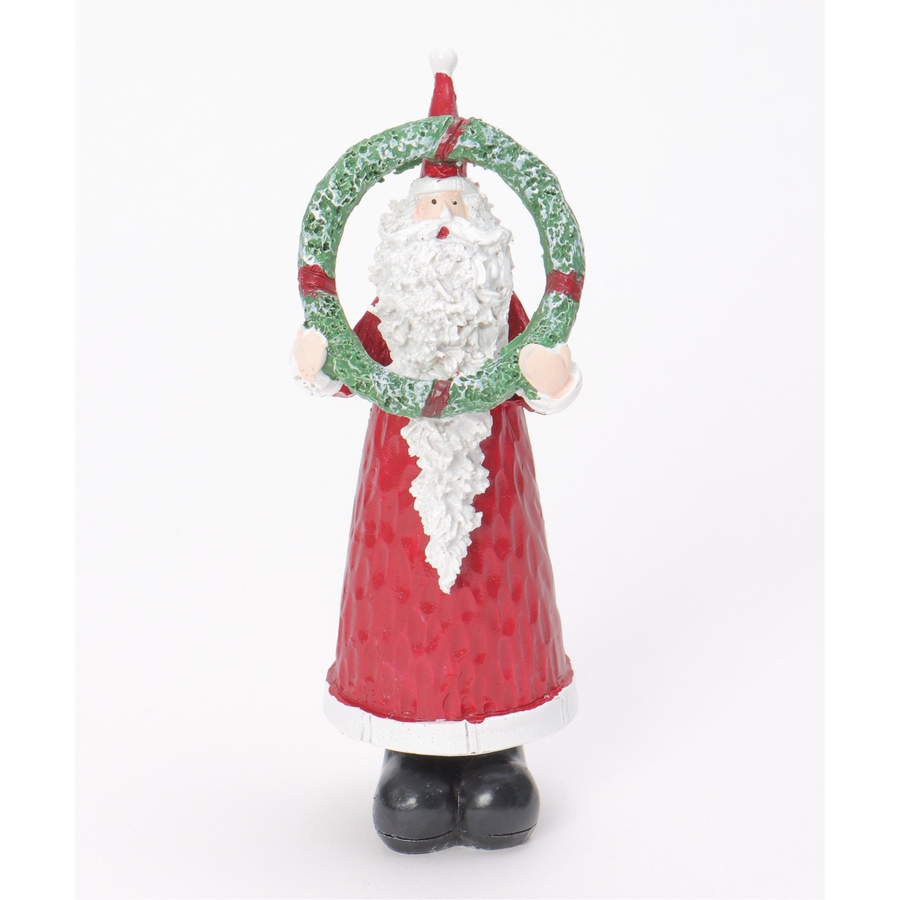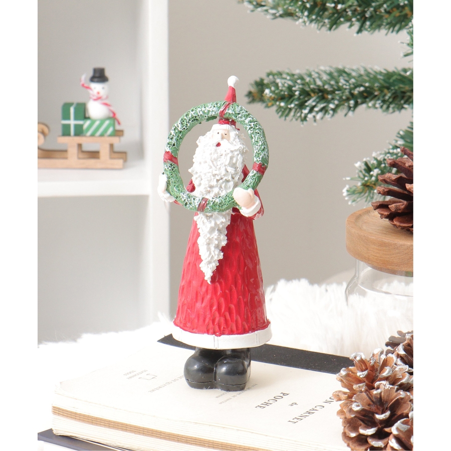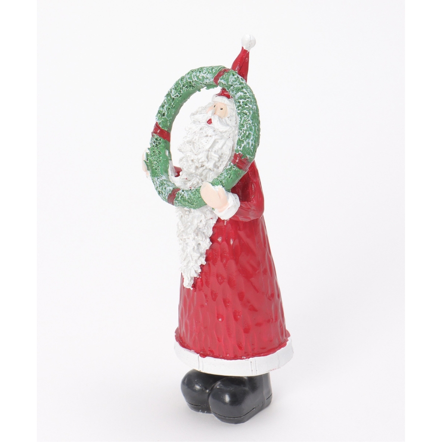 サンタクロースがリースを手に持った可愛らしいオブジェ。