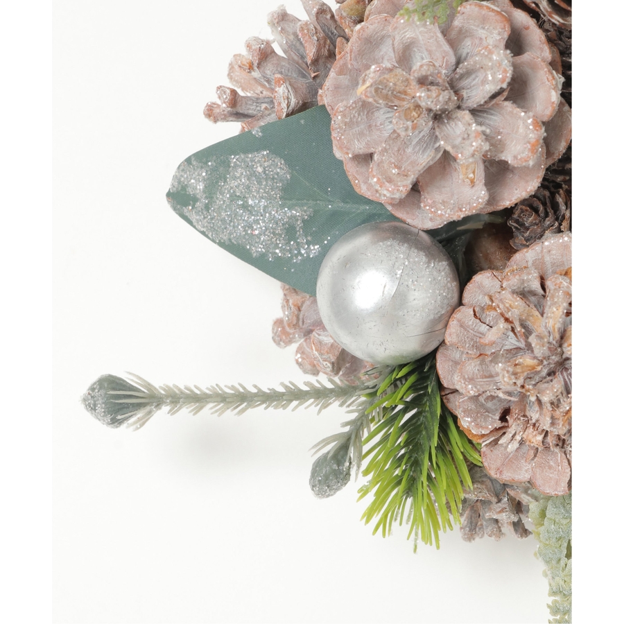 シルバーベースなのでナチュラル系はもちろん、ヴィンテージ系・カフェ系など幅広いインテリアと相性の良いクリスマスリースです。