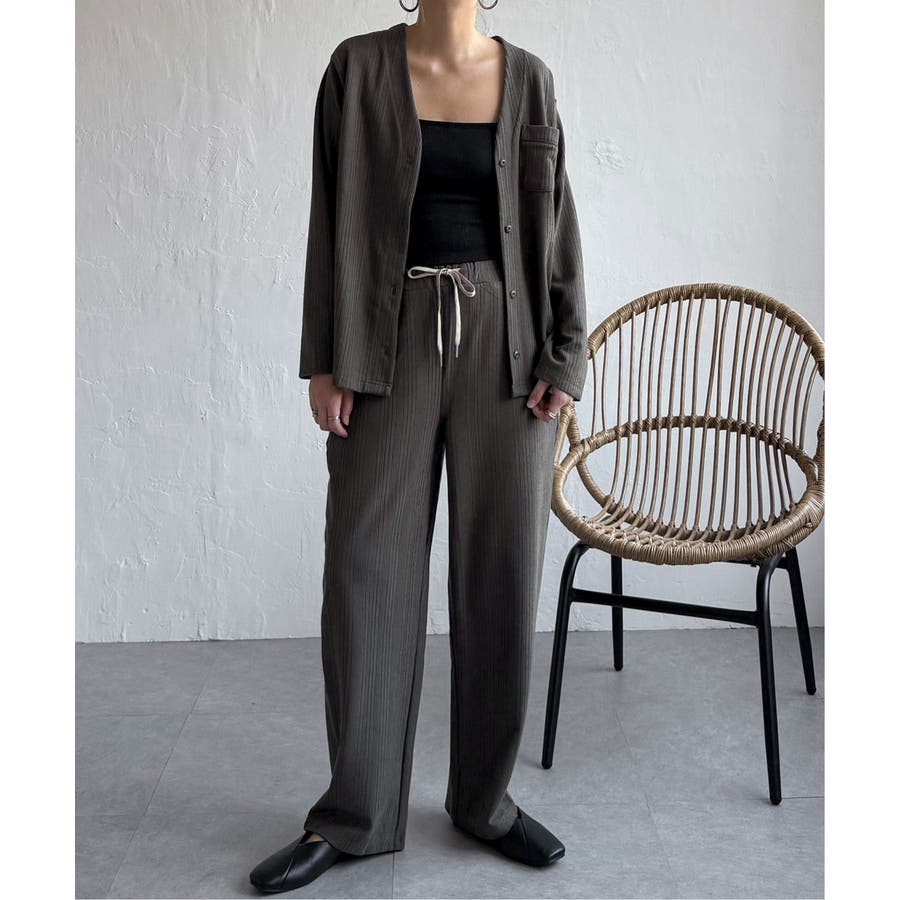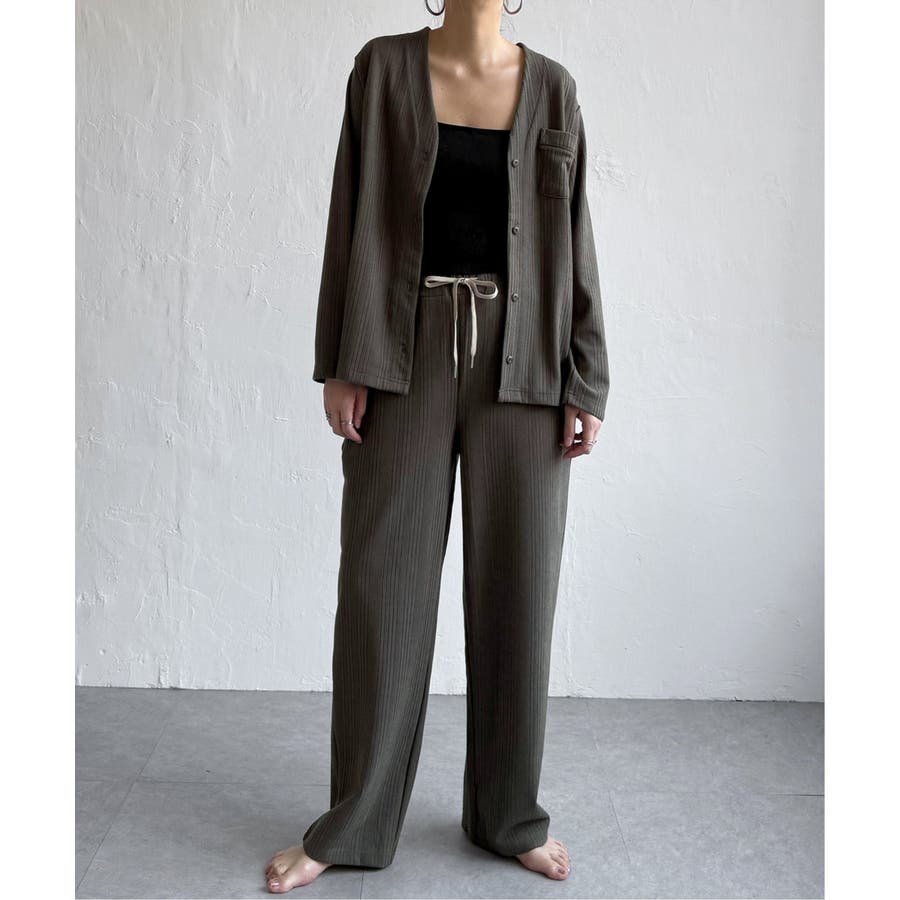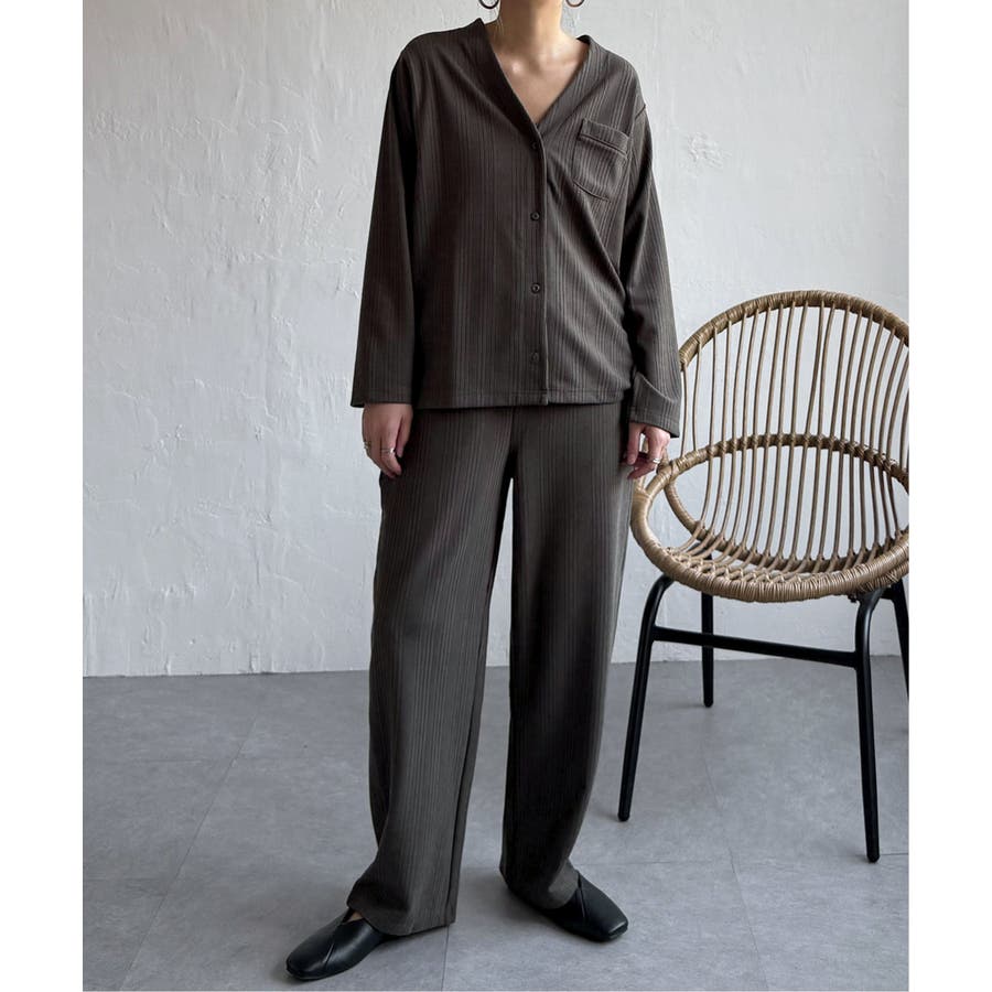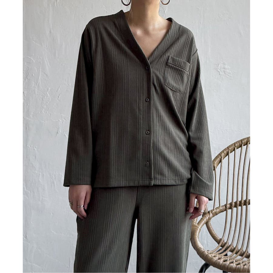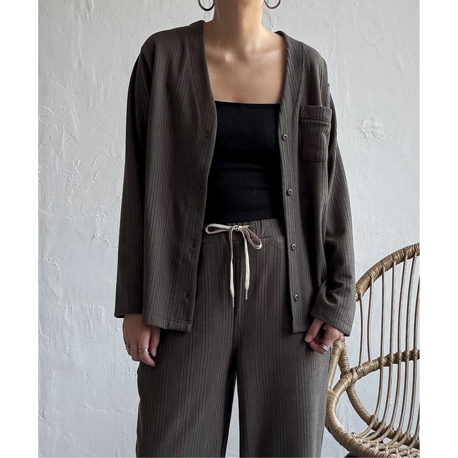 シンプルで洗練されたデザインは、ルームウェアとしてはもちろん、羽織りやセットアップとしても活躍。