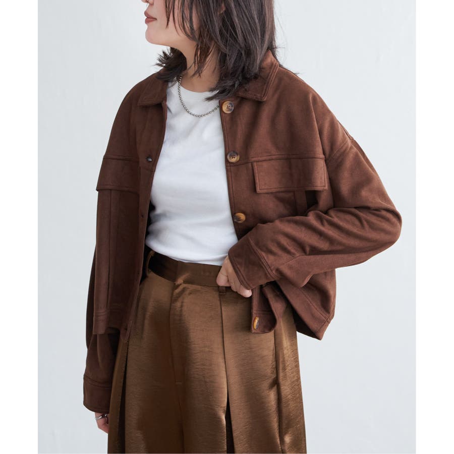 深みのあるカットスエード素材を使用したオーバーシャツ。