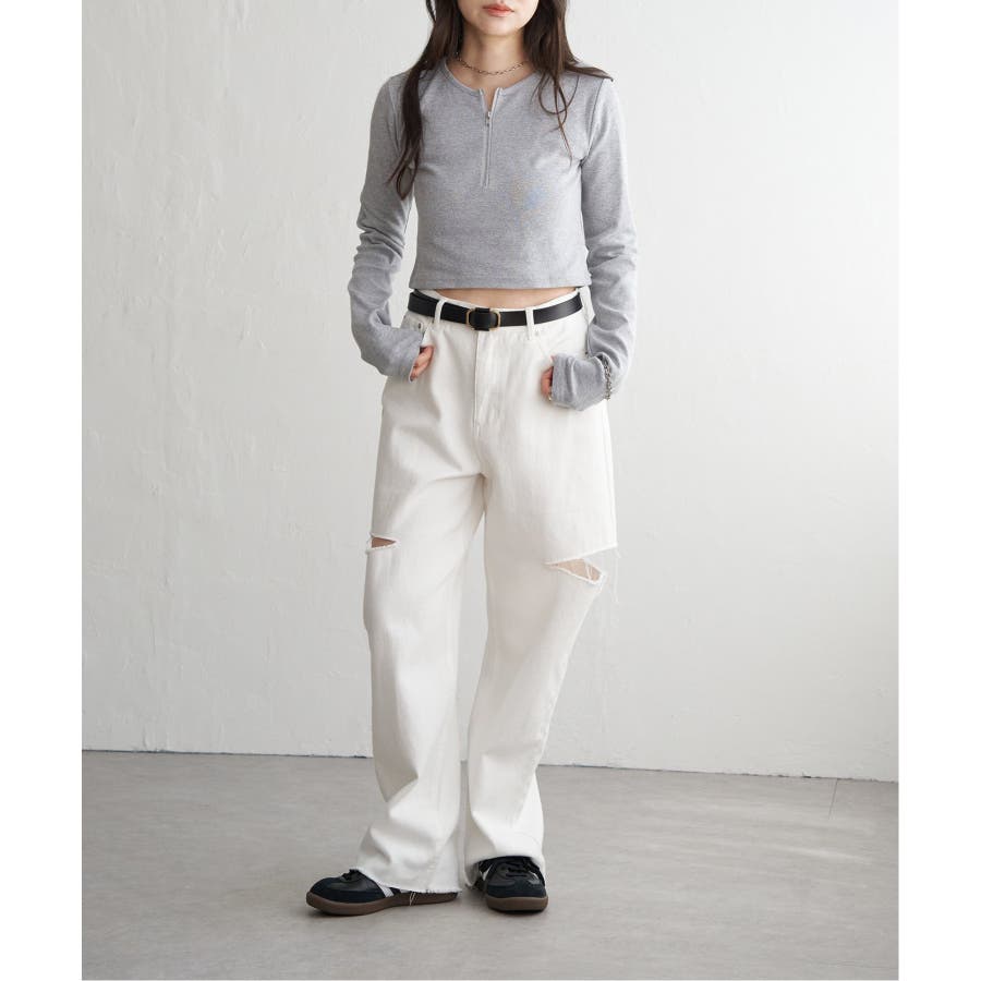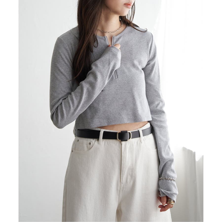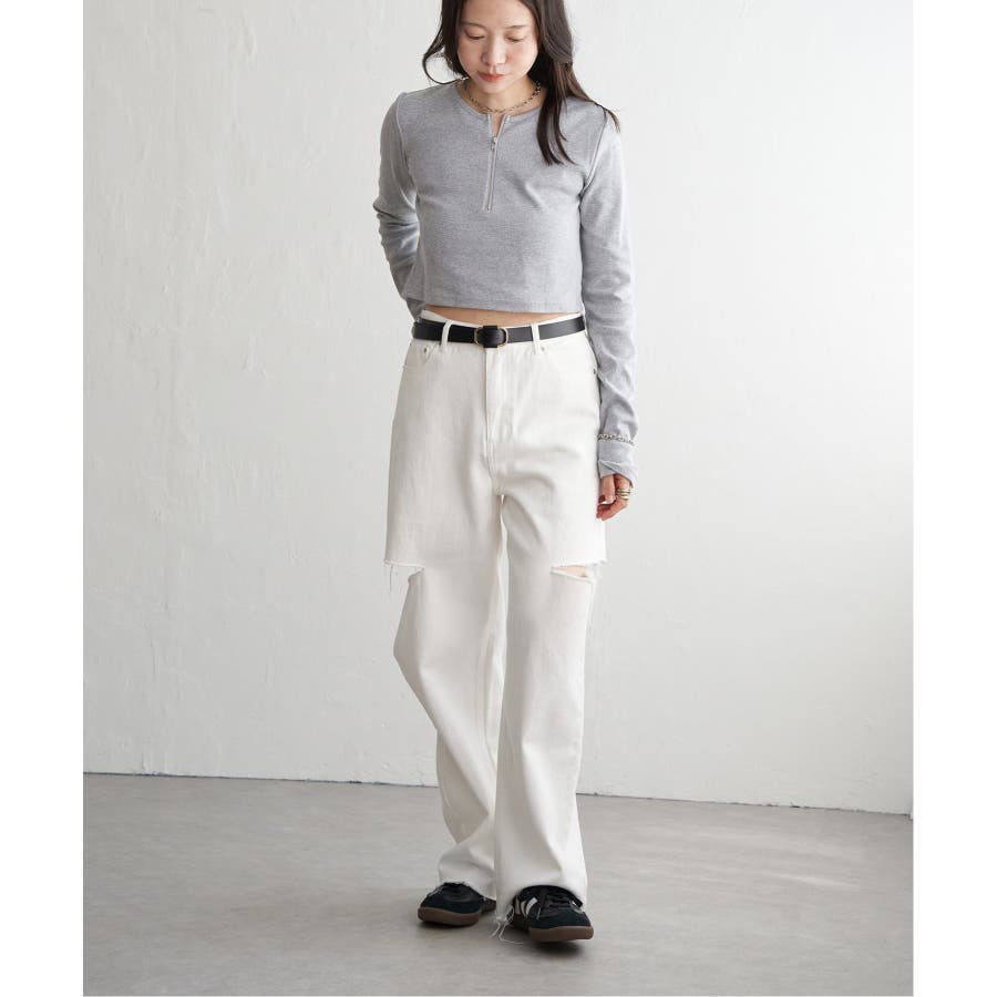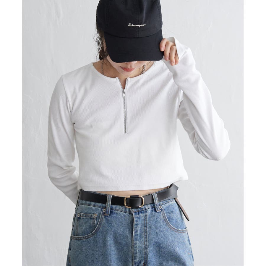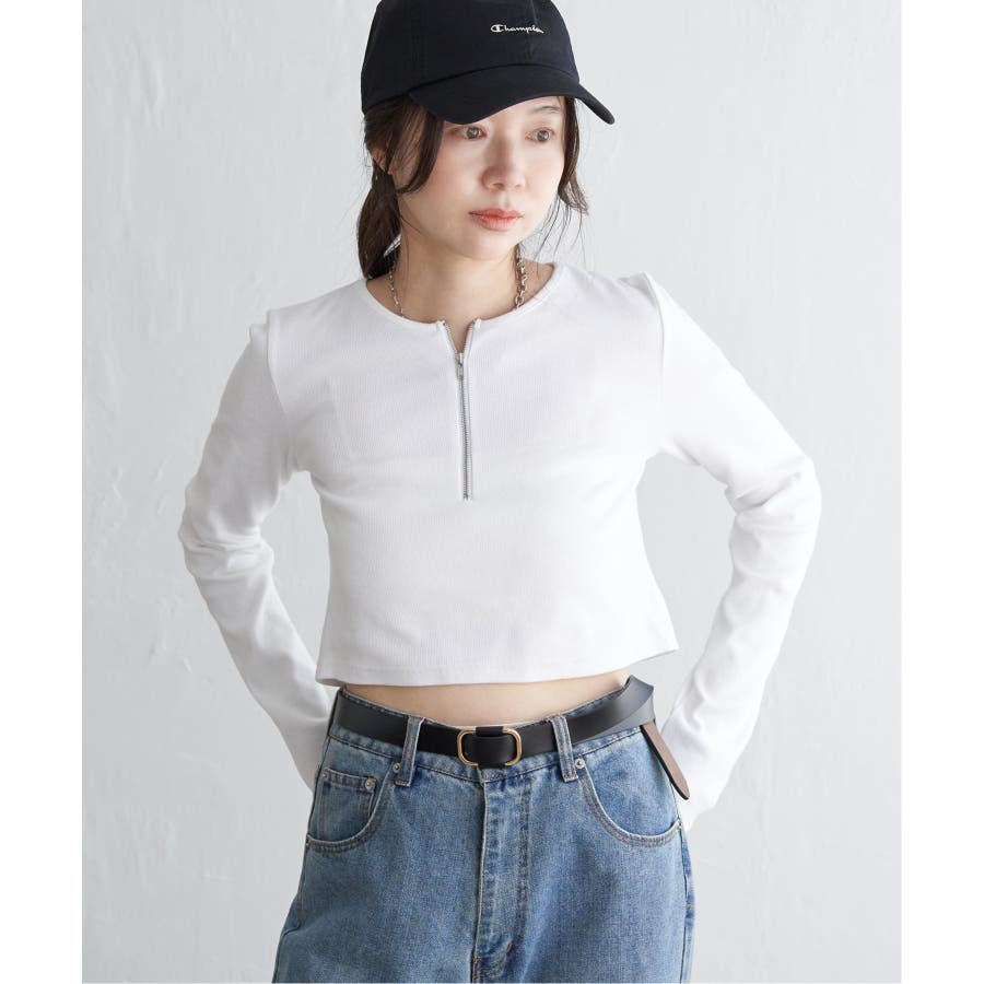 インナーにハイネックを持ってきてチラ見せしたり、ハーフジップならではのレイヤードもしっかり楽しむことができます♪