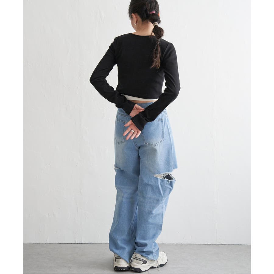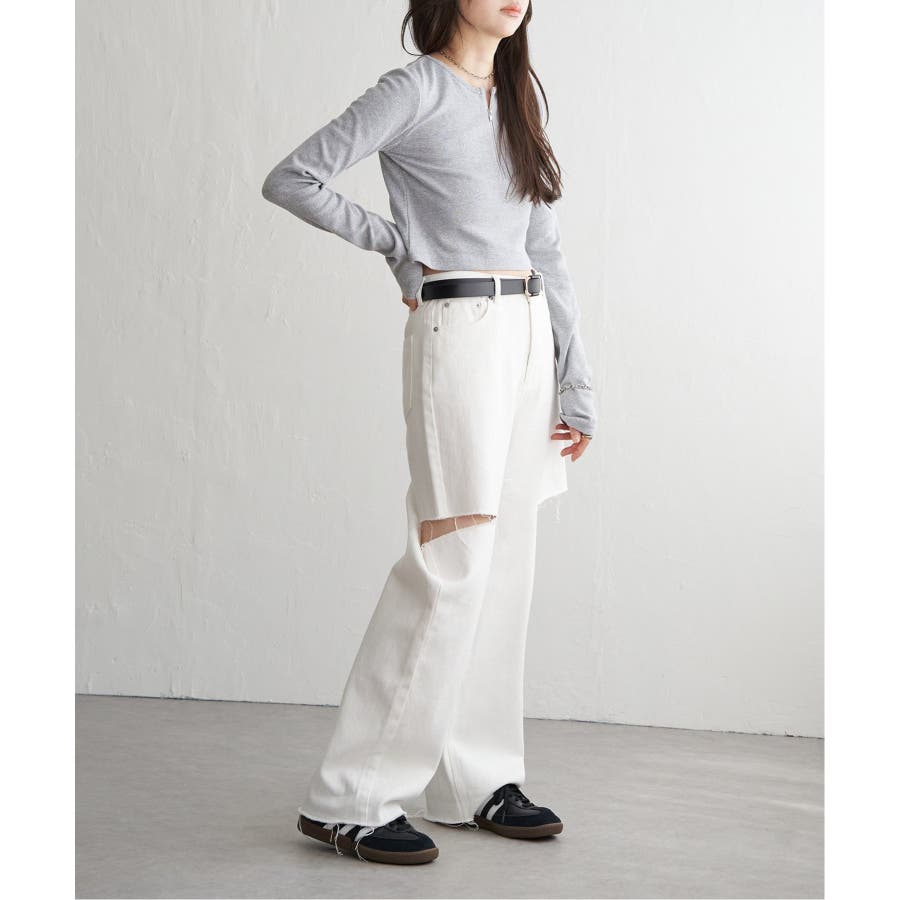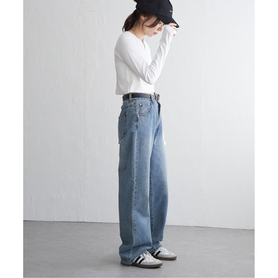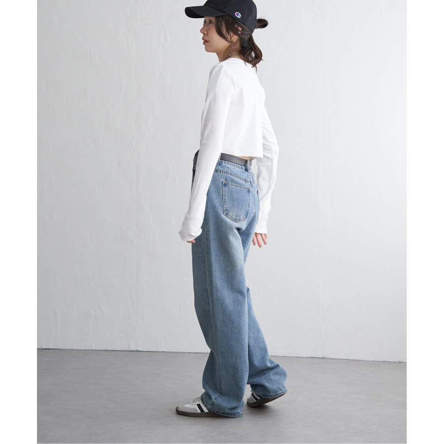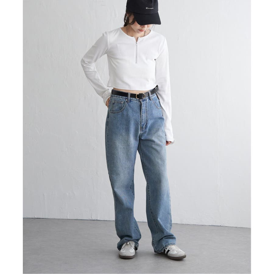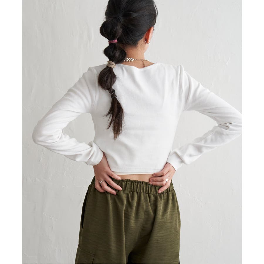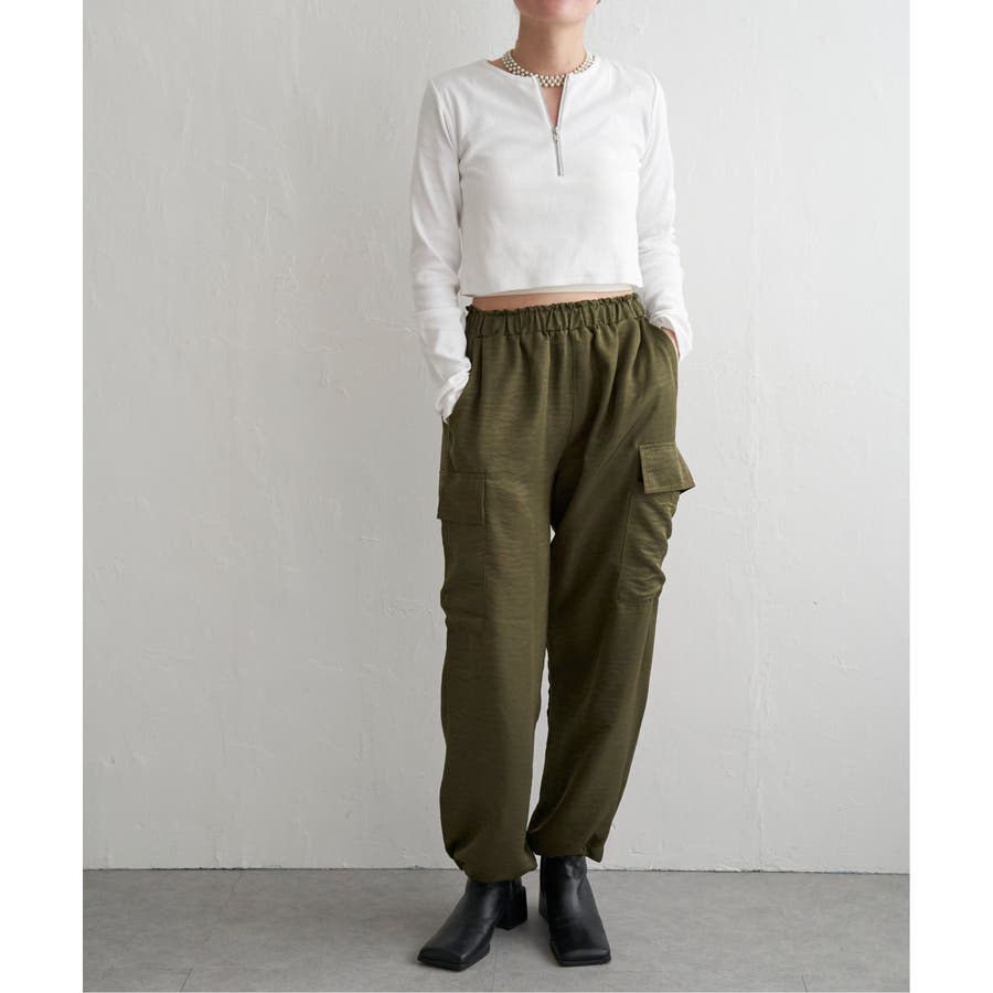 ショート丈のため、ワイドパンツやカーゴパンツなどボリュームのあるボトムと合わせるのがおすすめ!