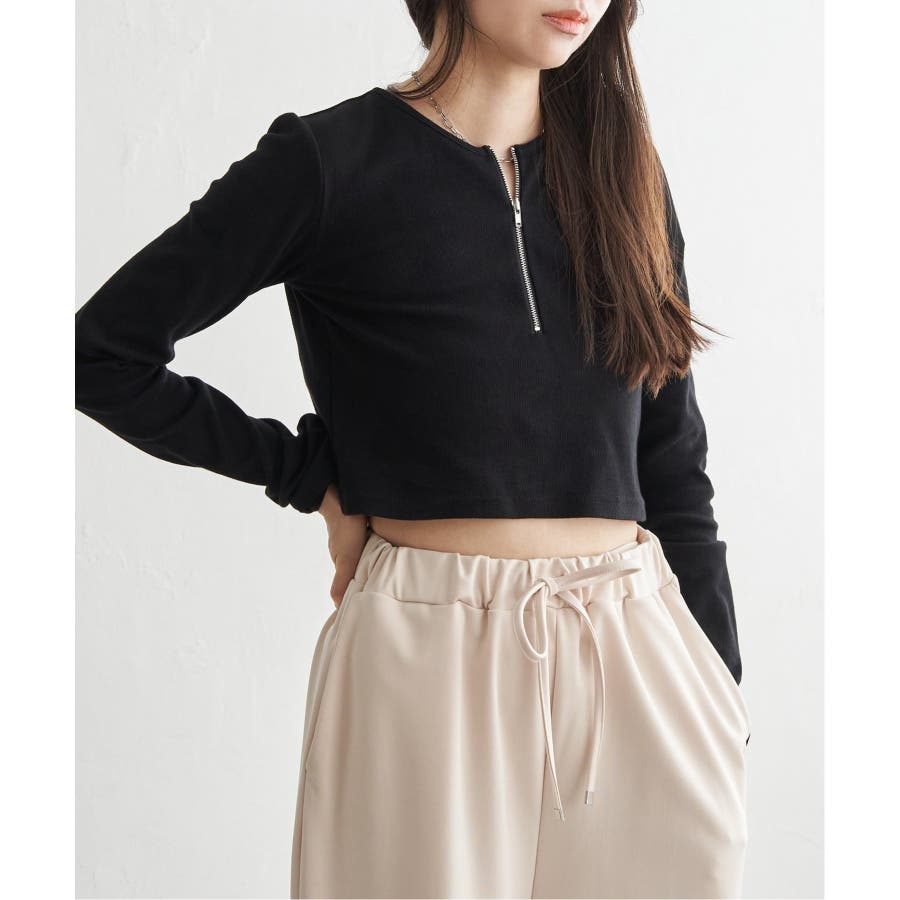ショート丈×ハーフジップで、トレンド感たっぷりに着こなせるプルオーバー。