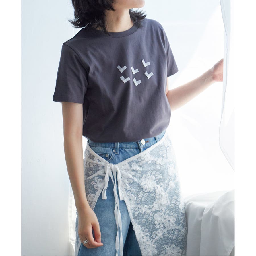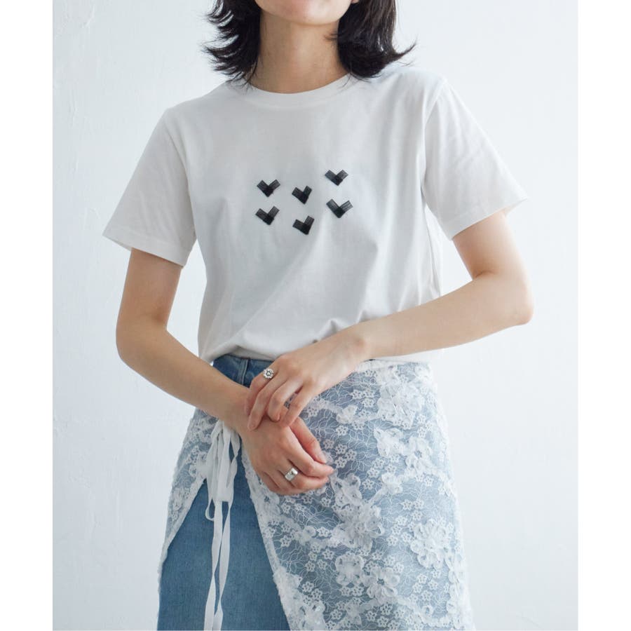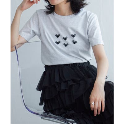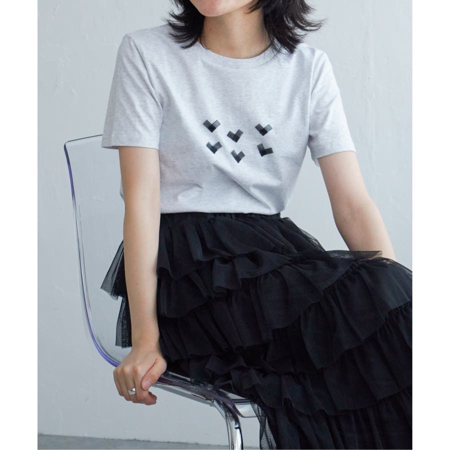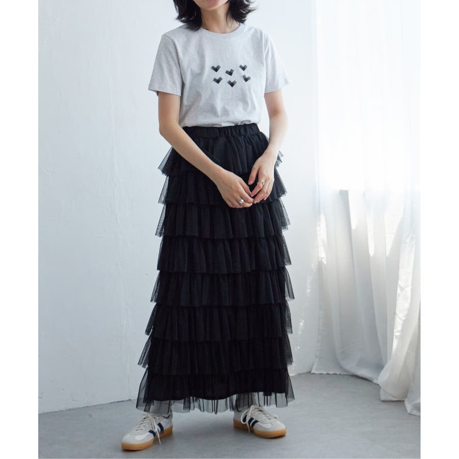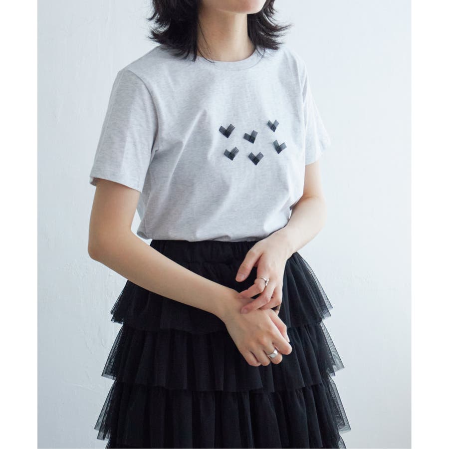 オーガンジー素材のハートがあしらわれたTシャツです。