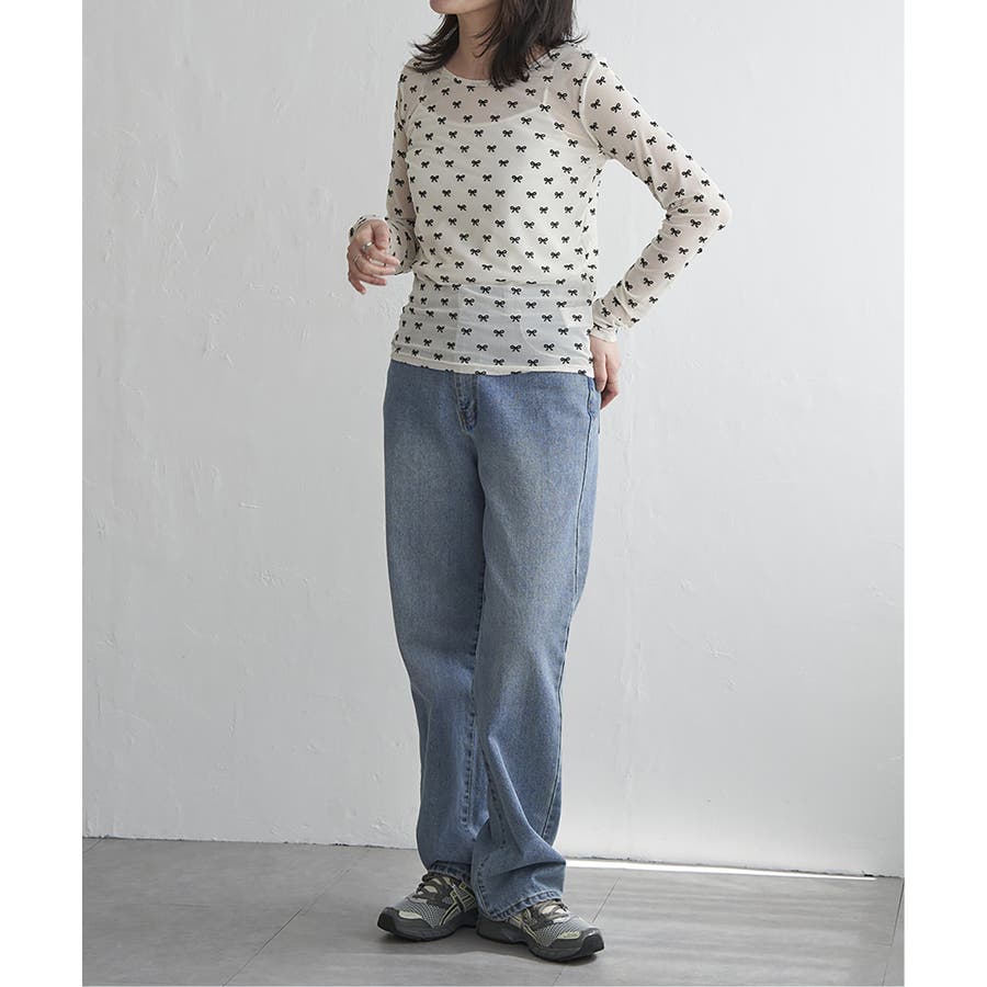 ワイドデニムを合わせれば、甘さをほどよく中和したバランスのいいスタイルに。