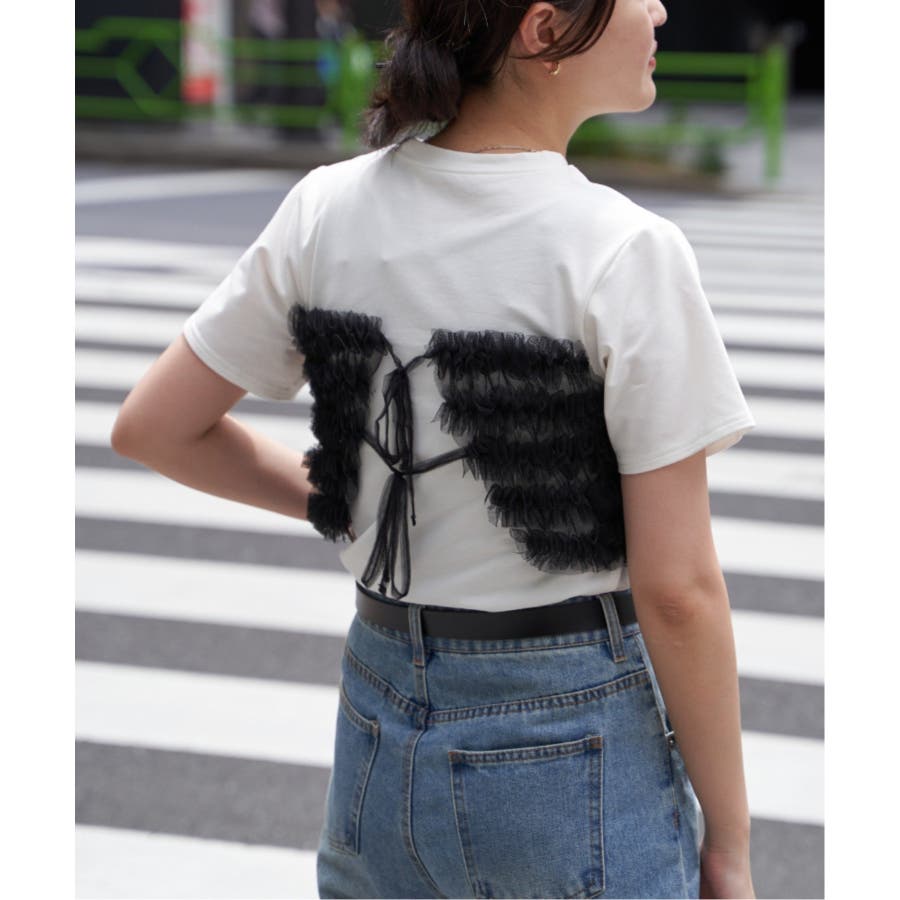 天竺チュールフリルビスチェ見えTシャツ