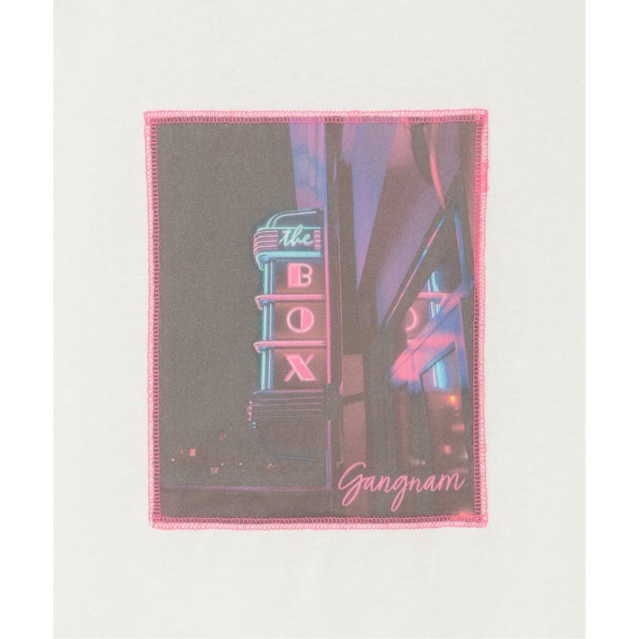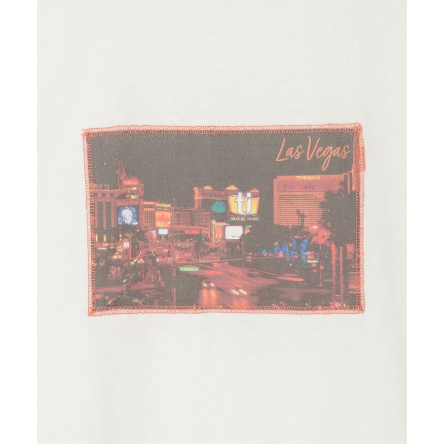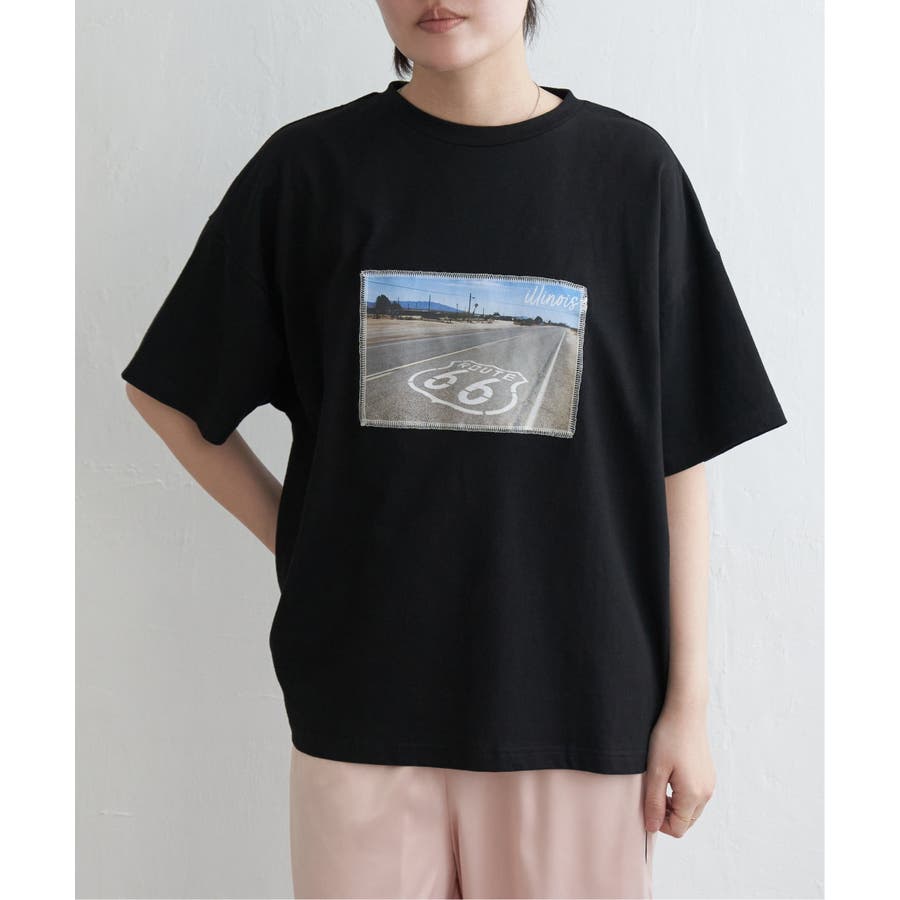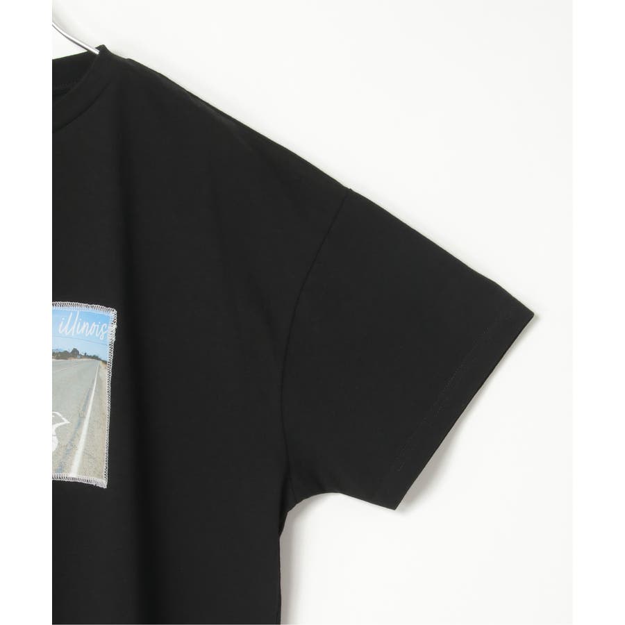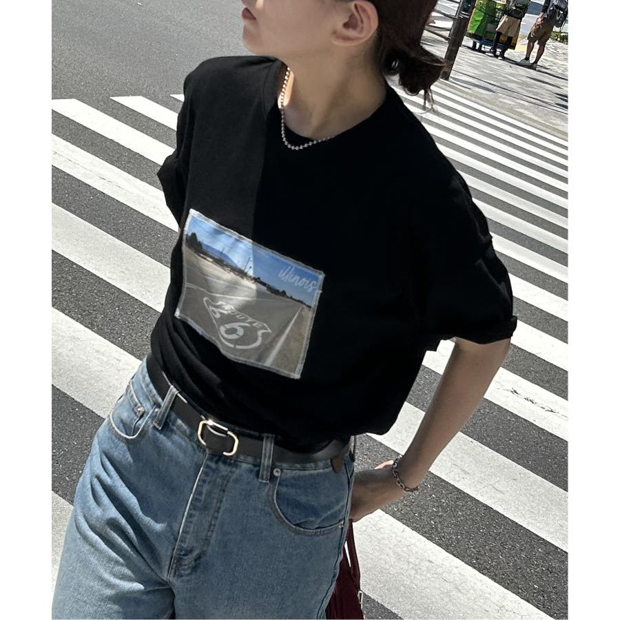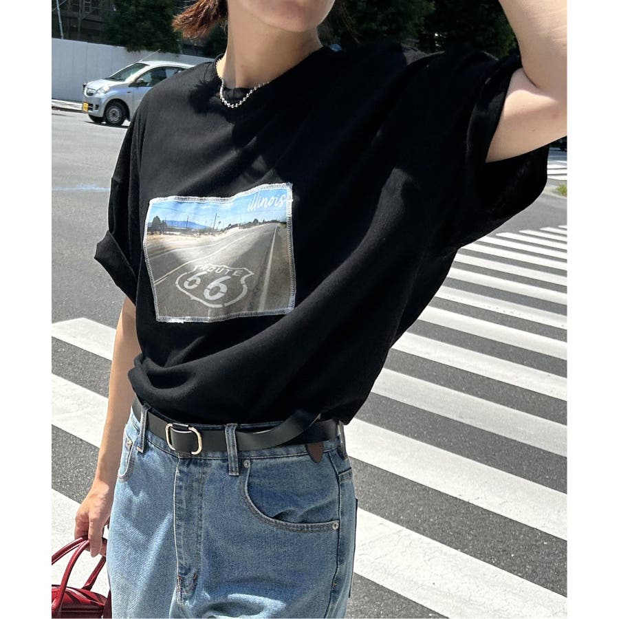 フォトプリントをステッチで貼り付けたワザありTシャツ。