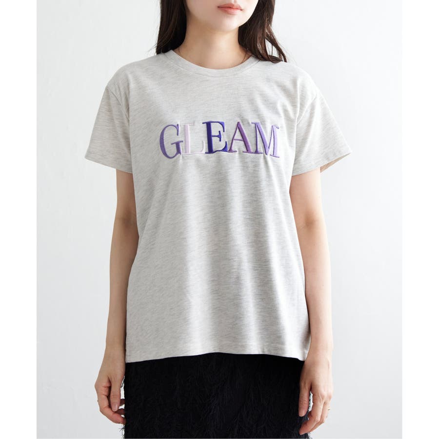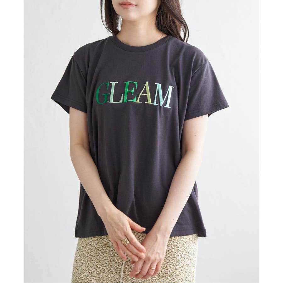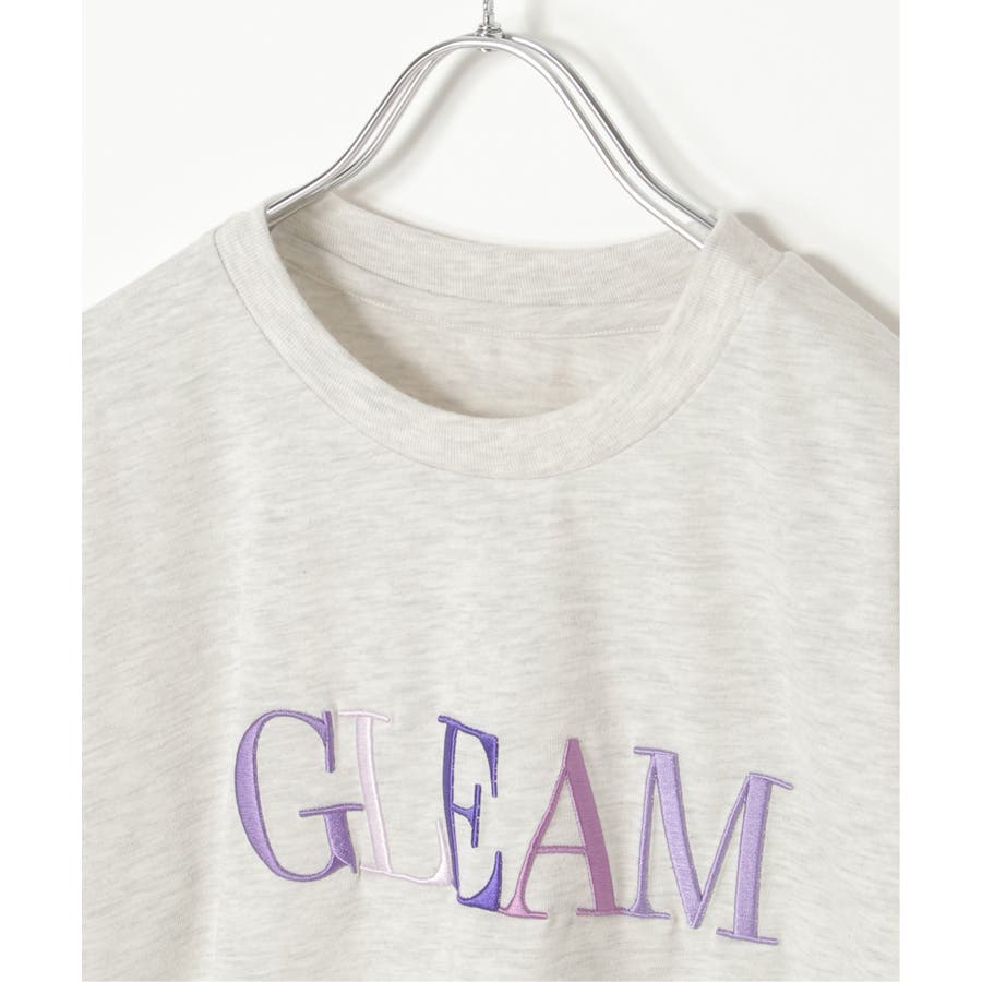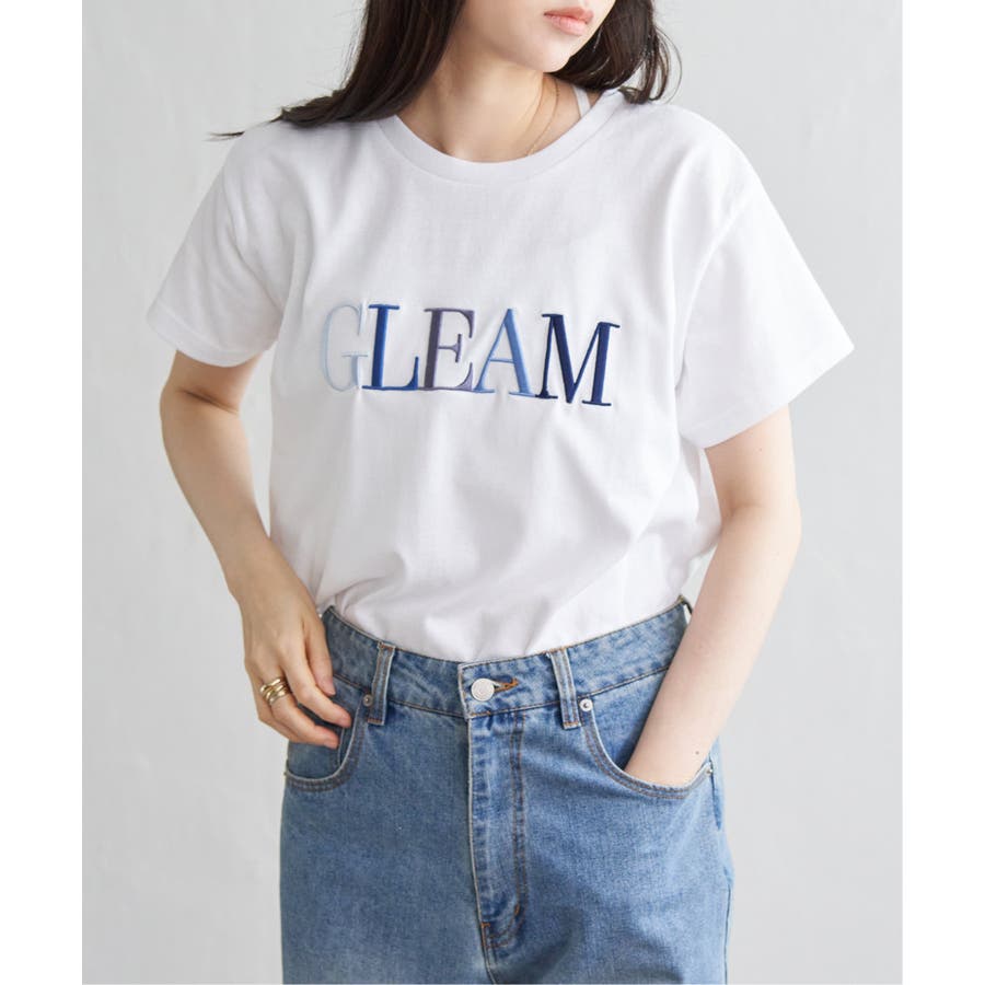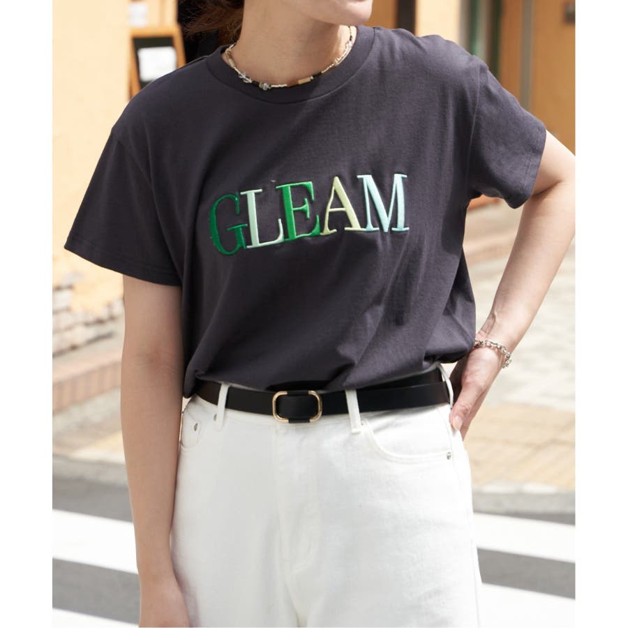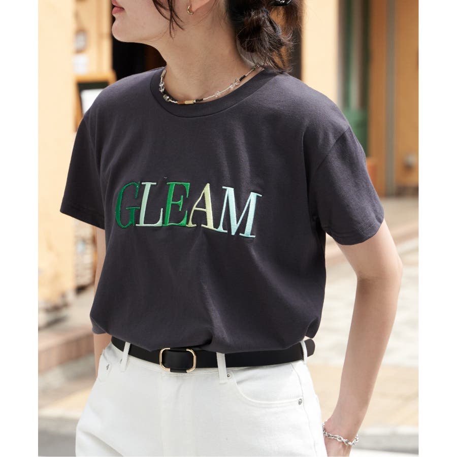 目を引く“GLEAM”のロゴ刺繍が胸元に映えるTシャツ。