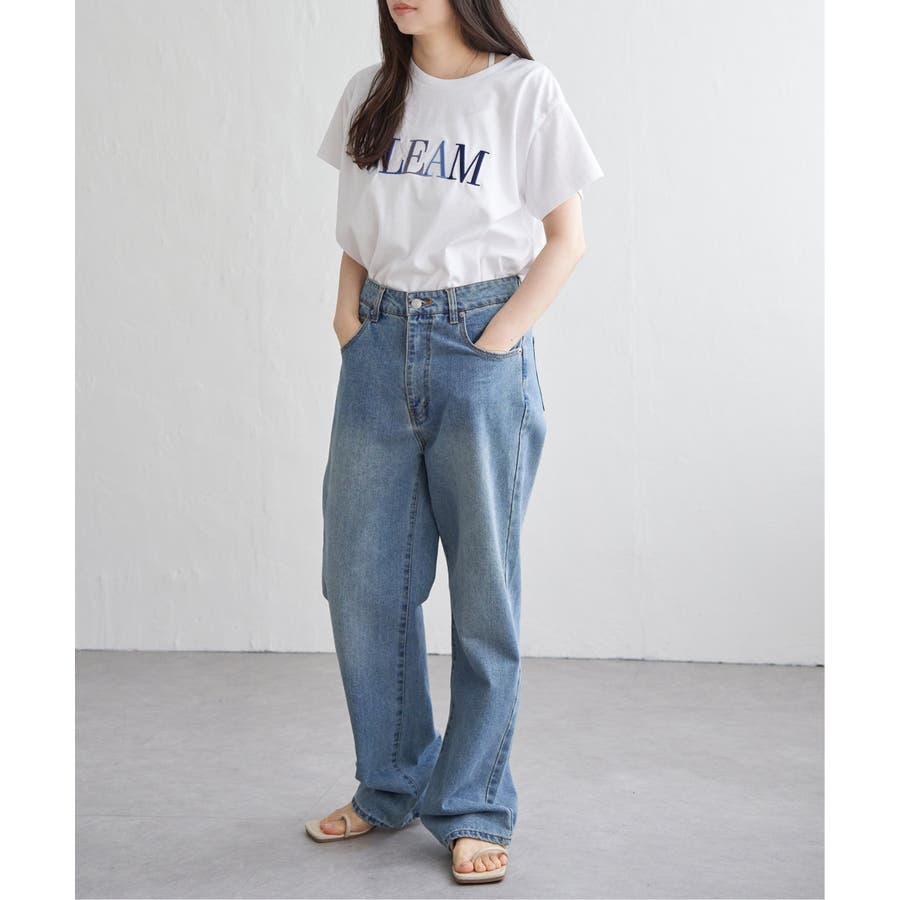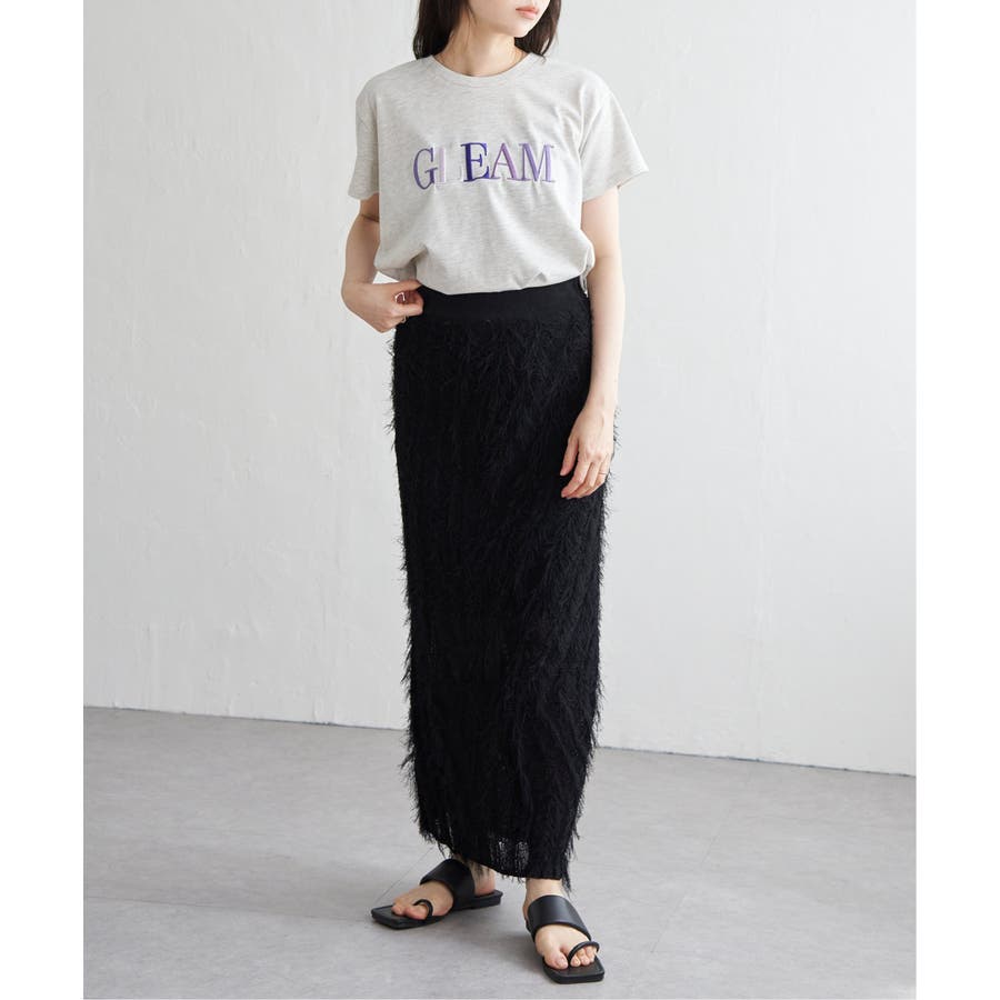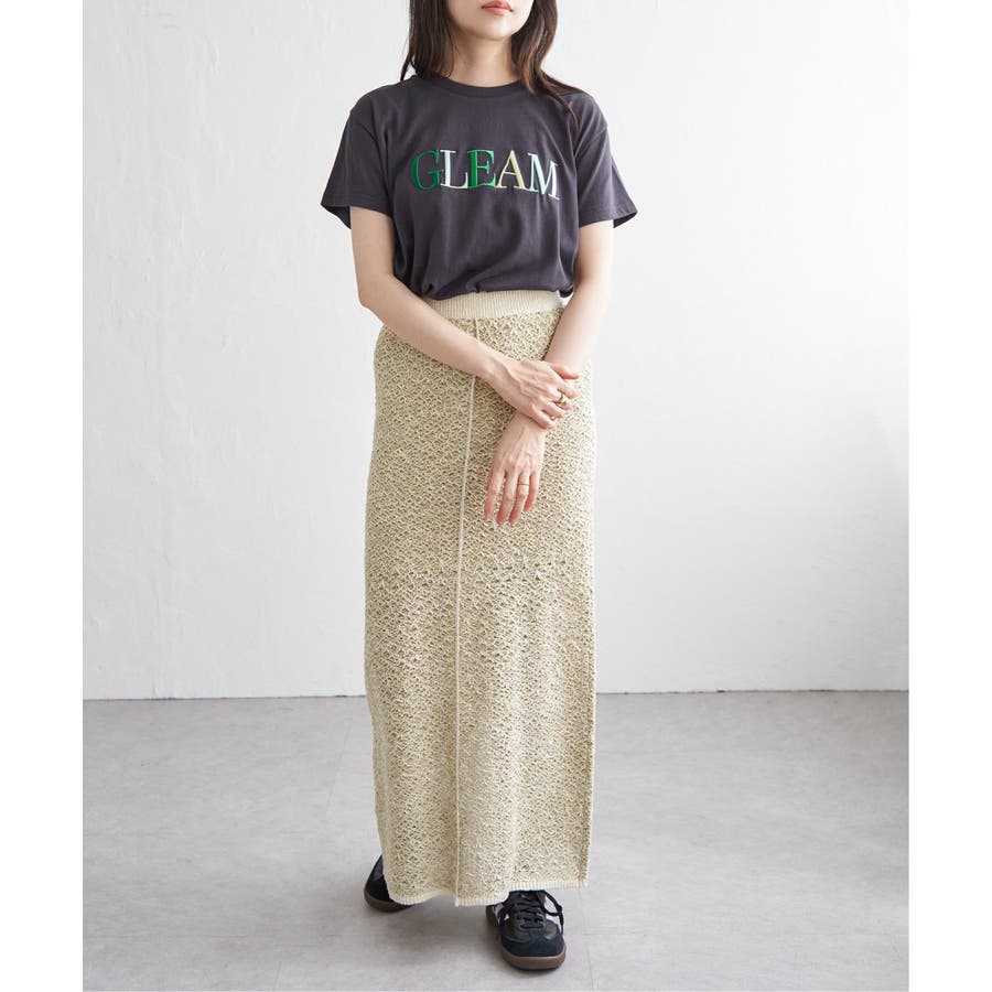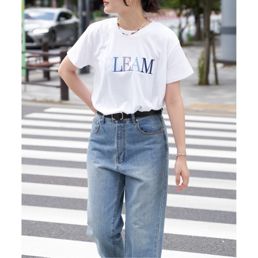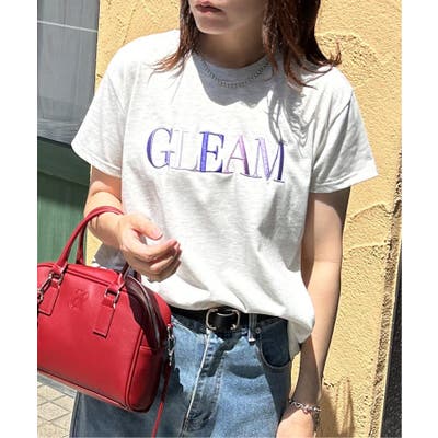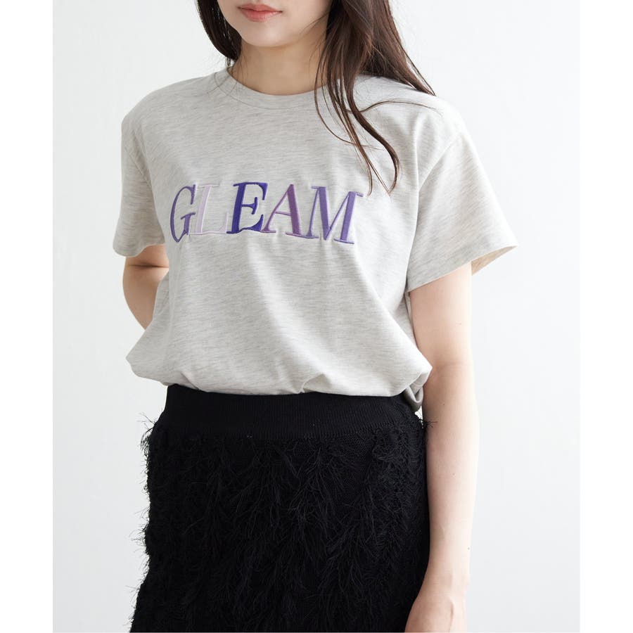 目を引く“GLEAM”のロゴ刺繍が胸元に映えるTシャツ。