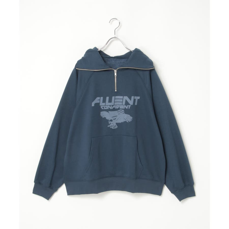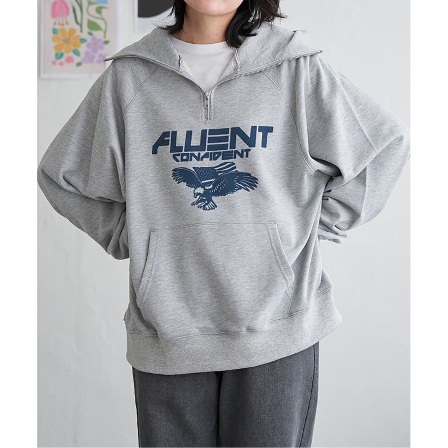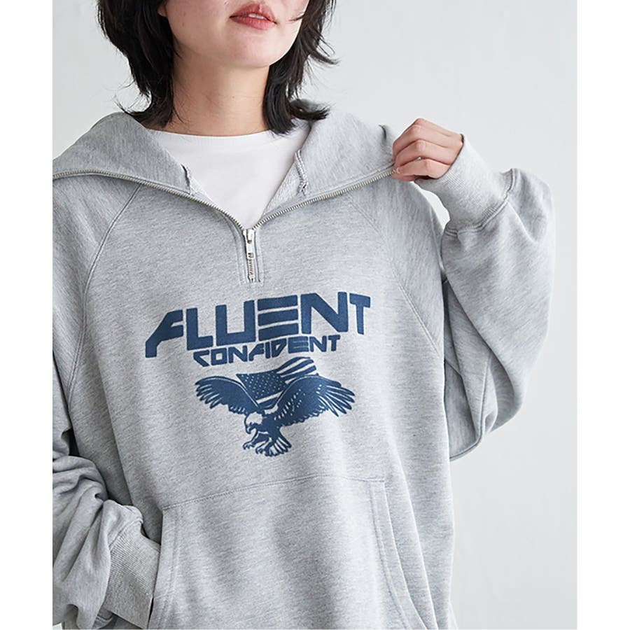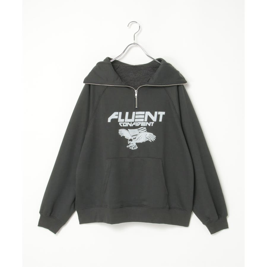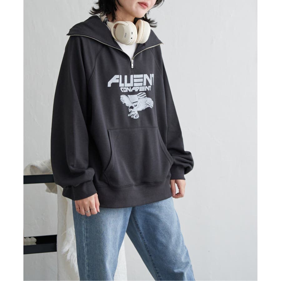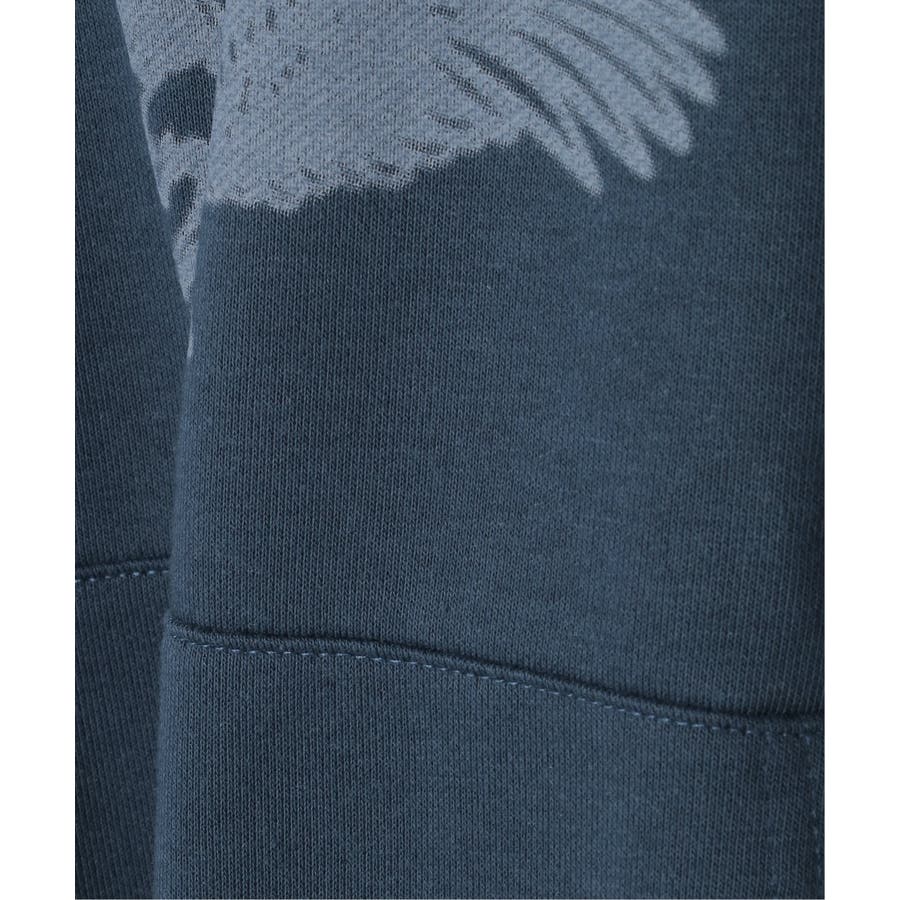 目を引くイーグルプリントのパーカー。