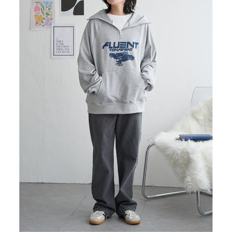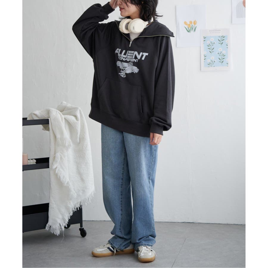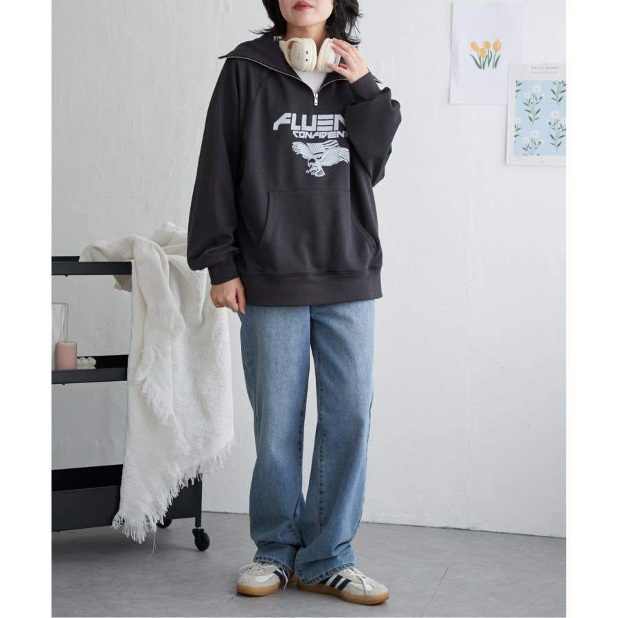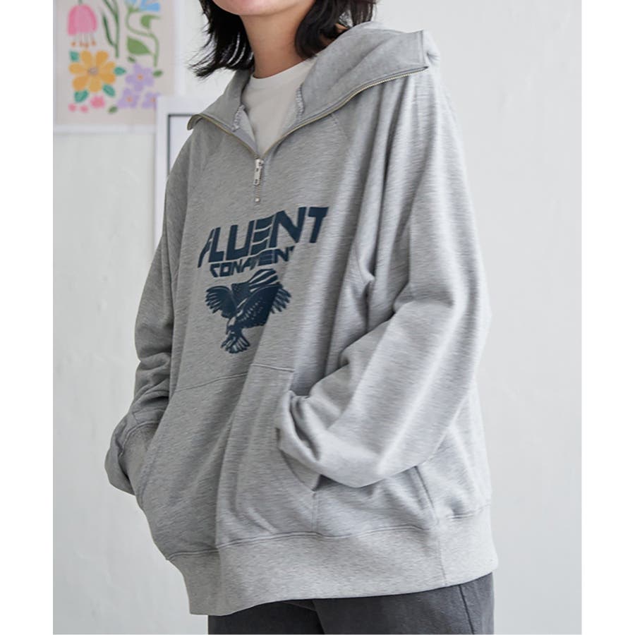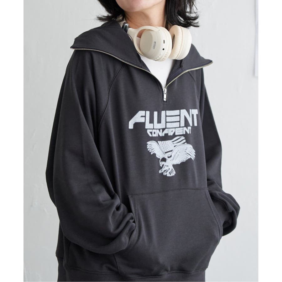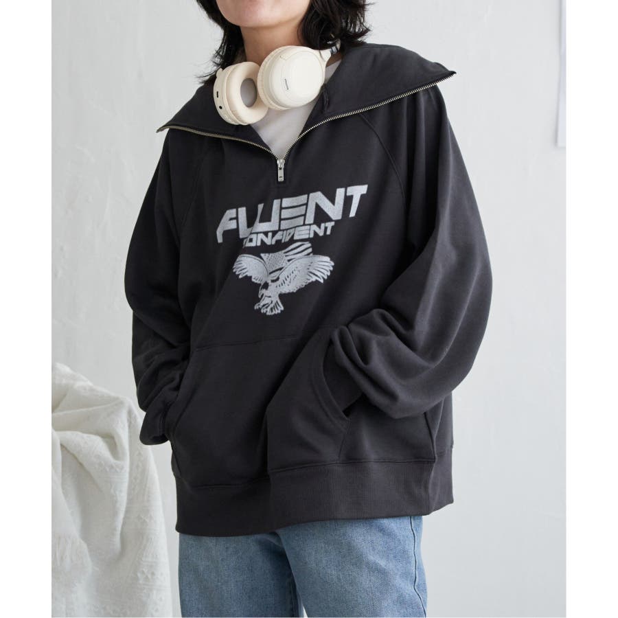 目を引くイーグルプリントのパーカー。