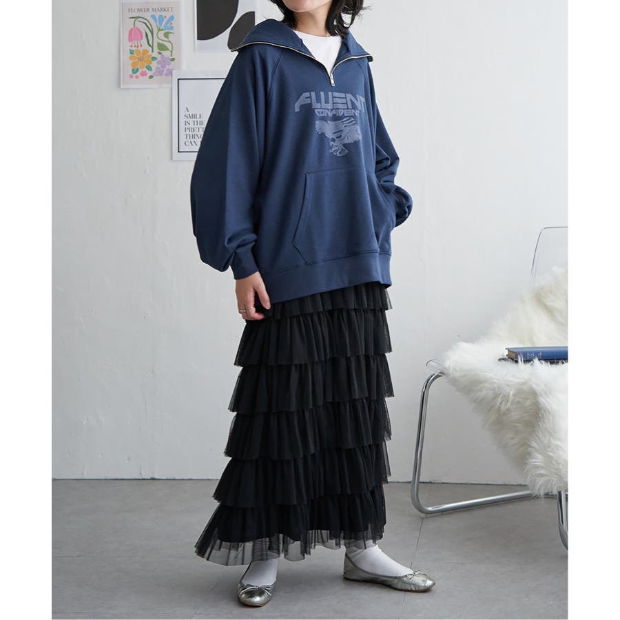 あえて甘めのスカートを合わせて甘辛MIXにするのも◎