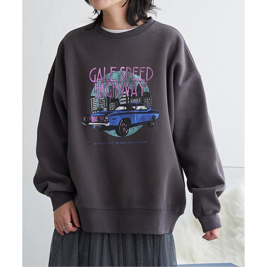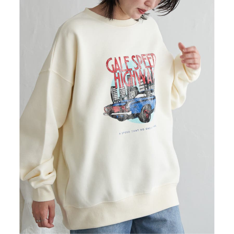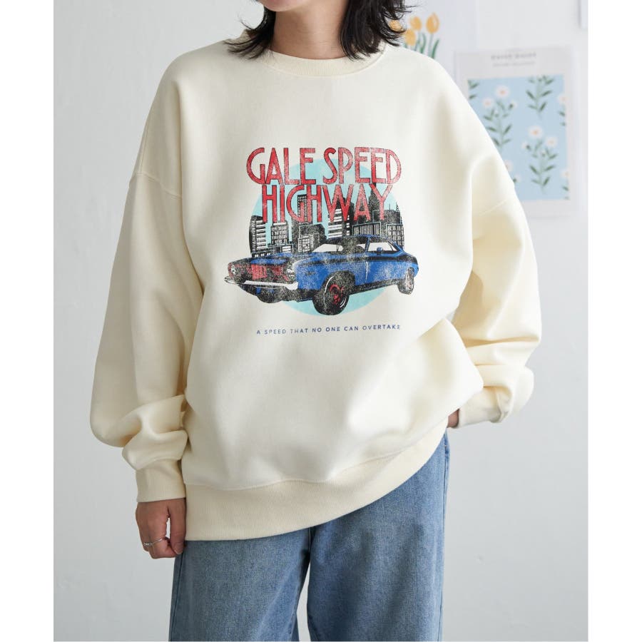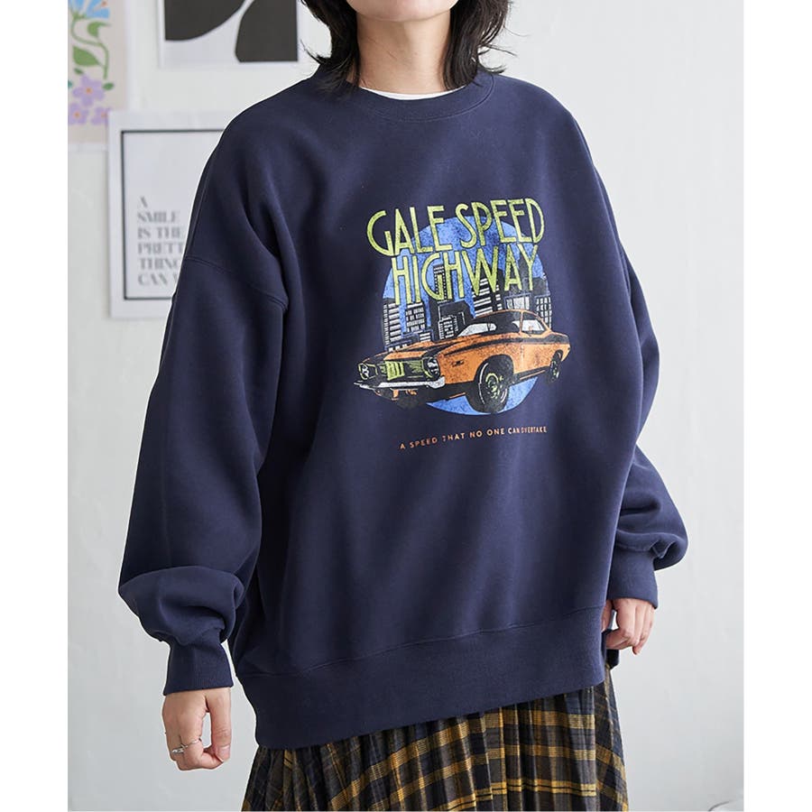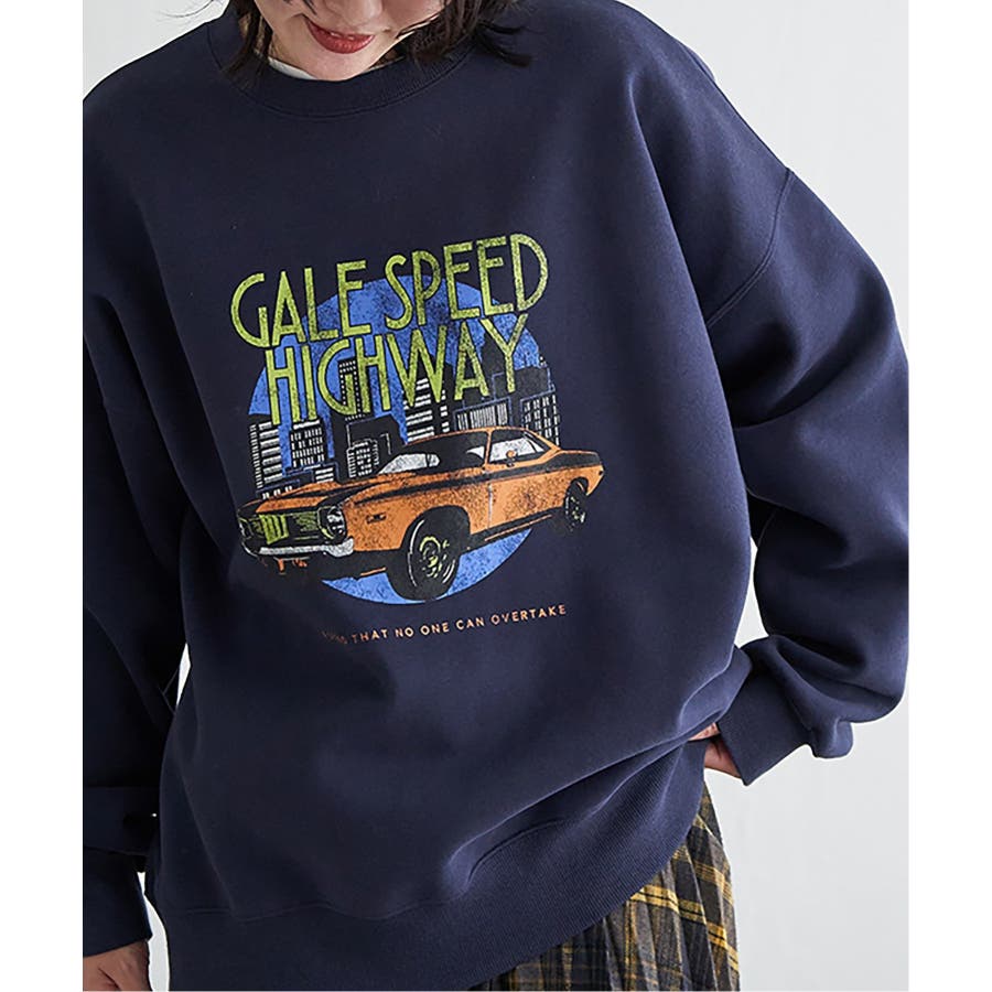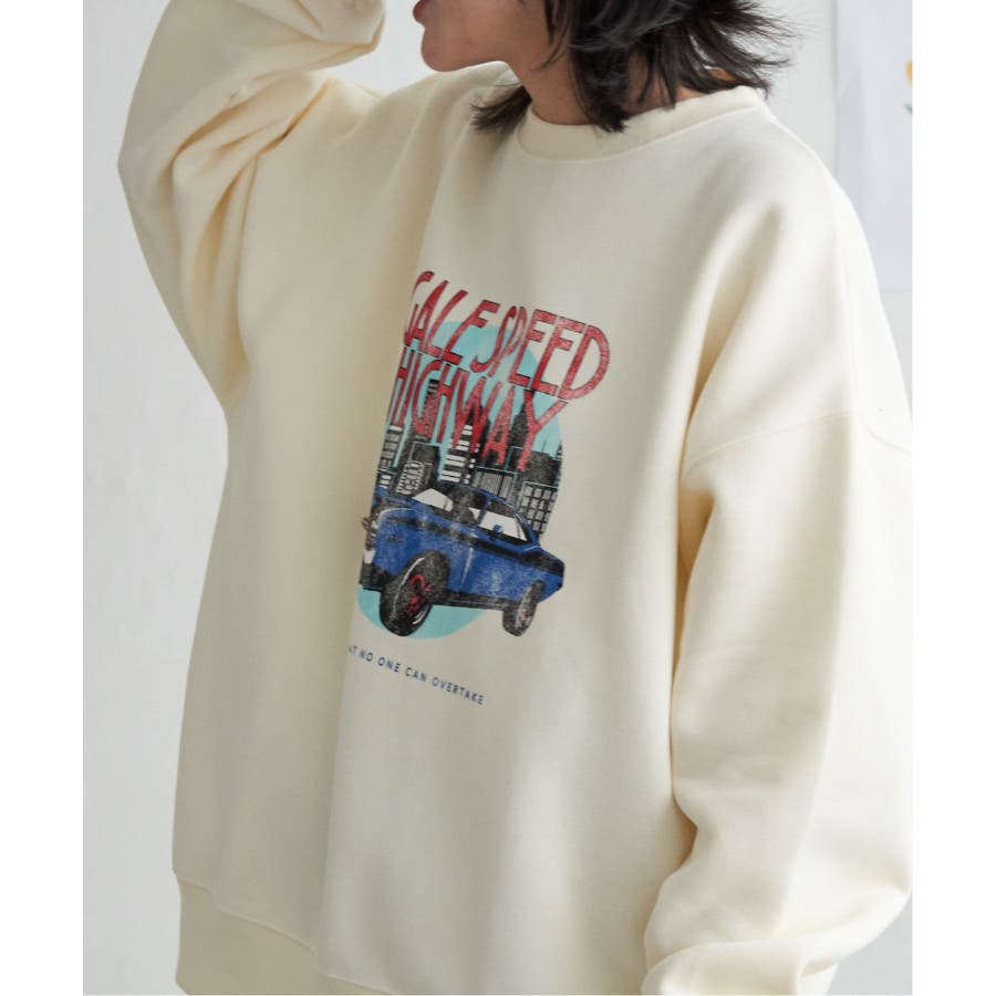 レトロなイラストタッチの車のプリントが魅力のスウェット。
