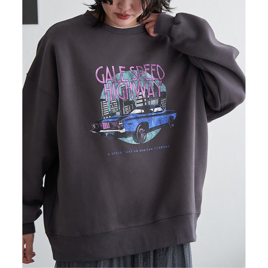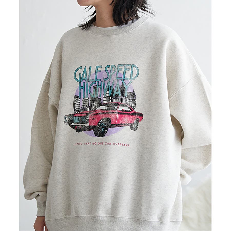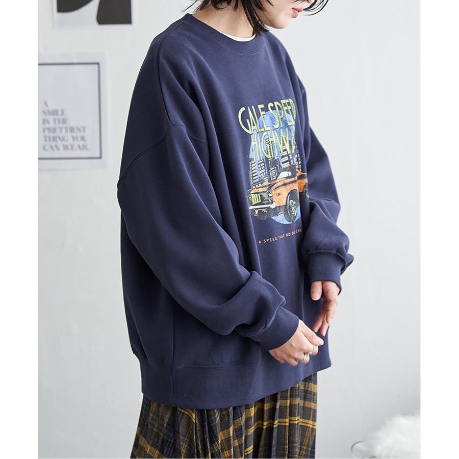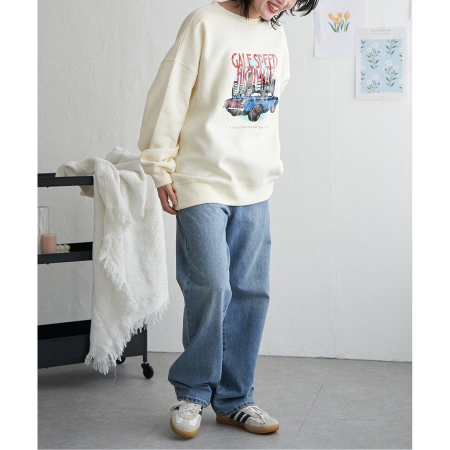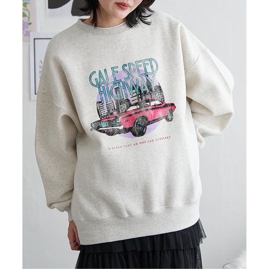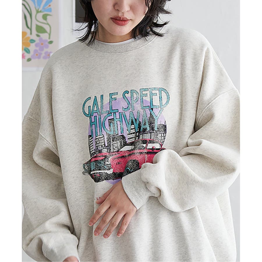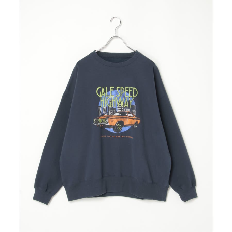 レトロなイラストタッチの車のプリントが魅力のスウェット。