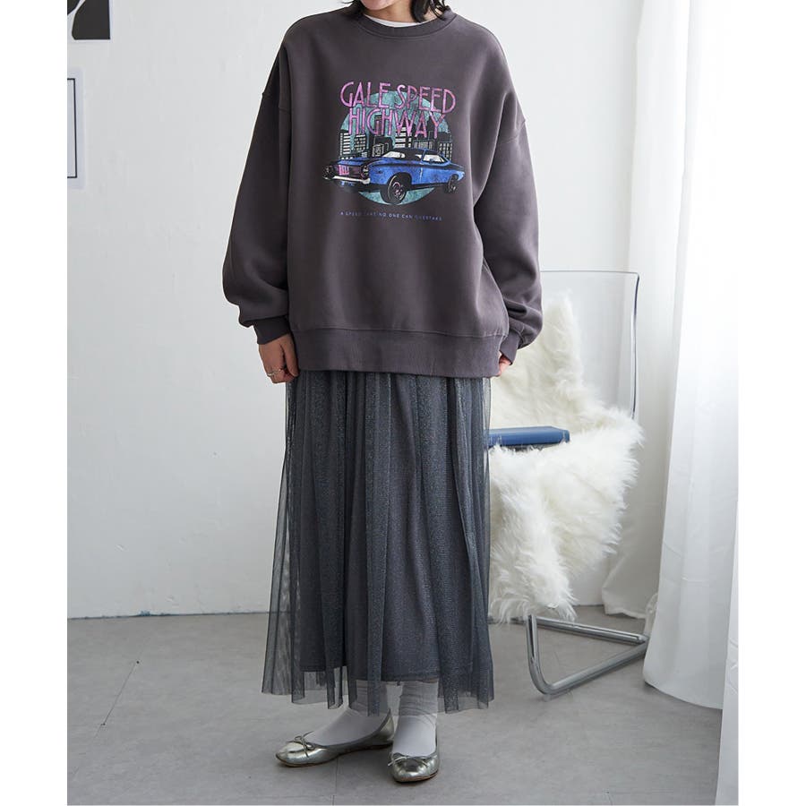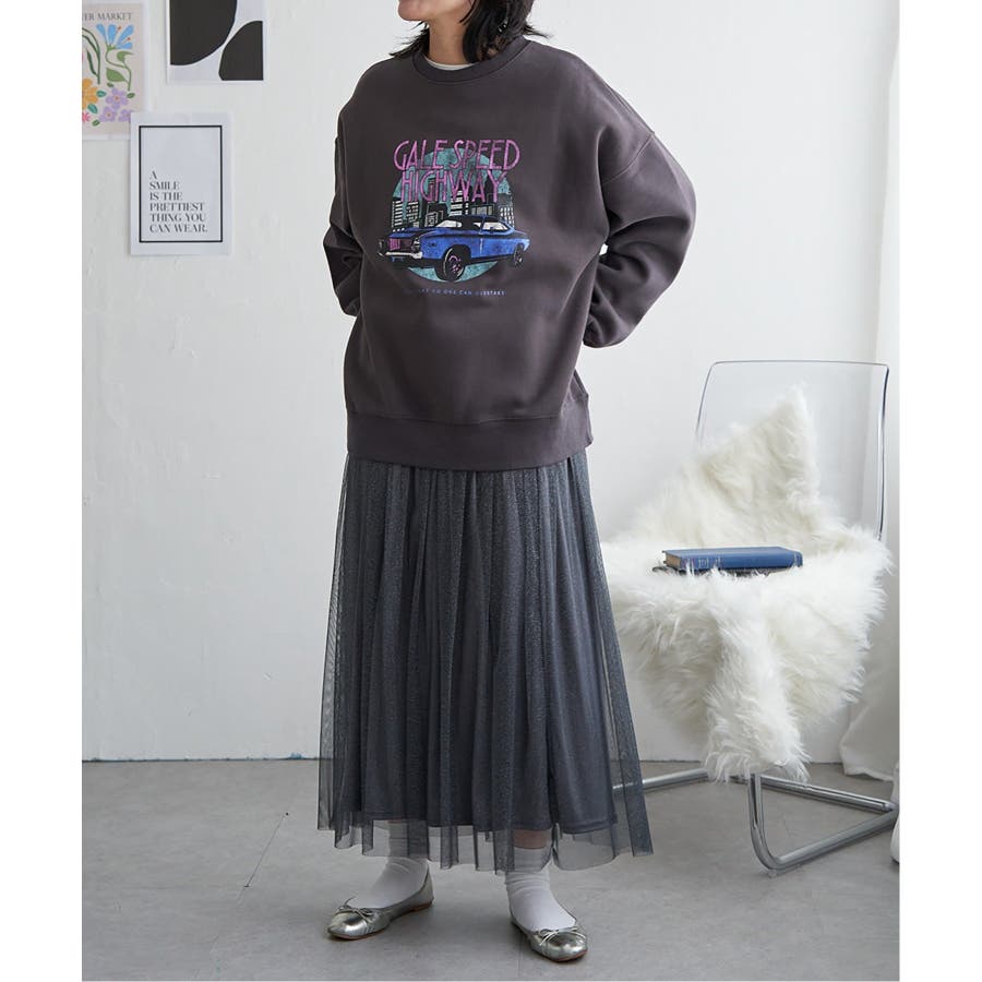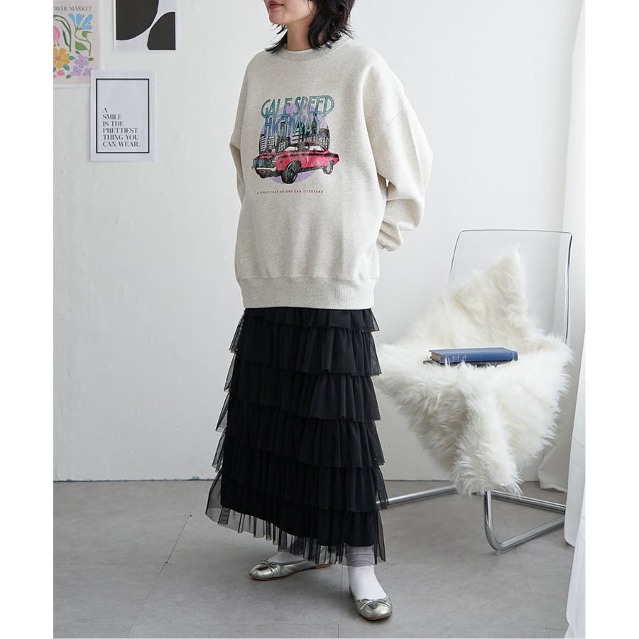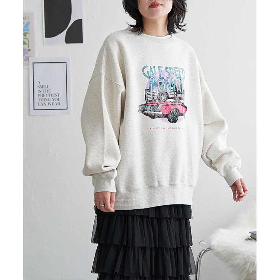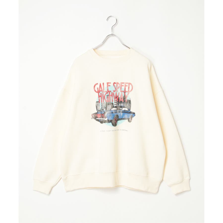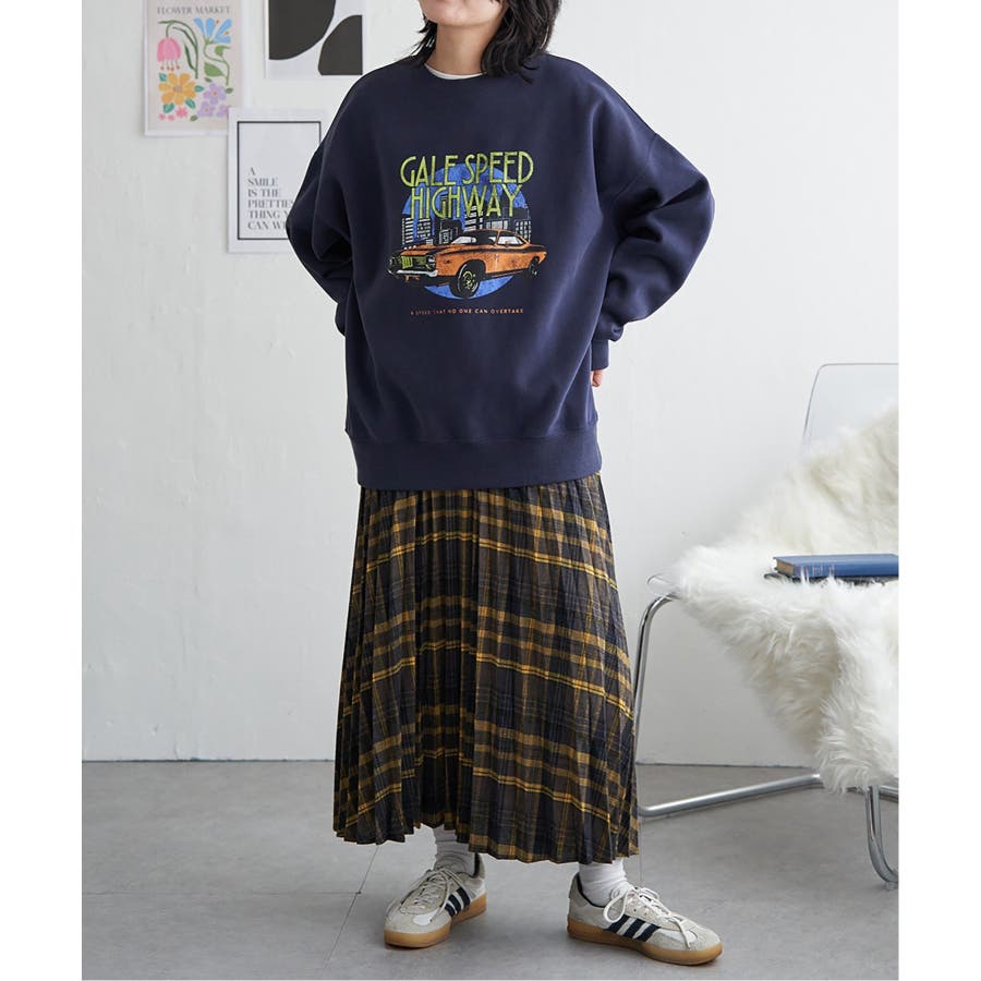 レトロなイラストタッチの車のプリントが魅力のスウェット。