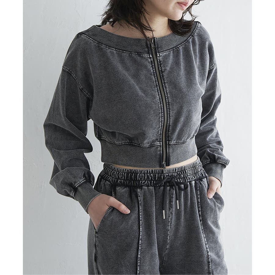 【セットアップ対応】ケミカルオフショルスウェットジップ