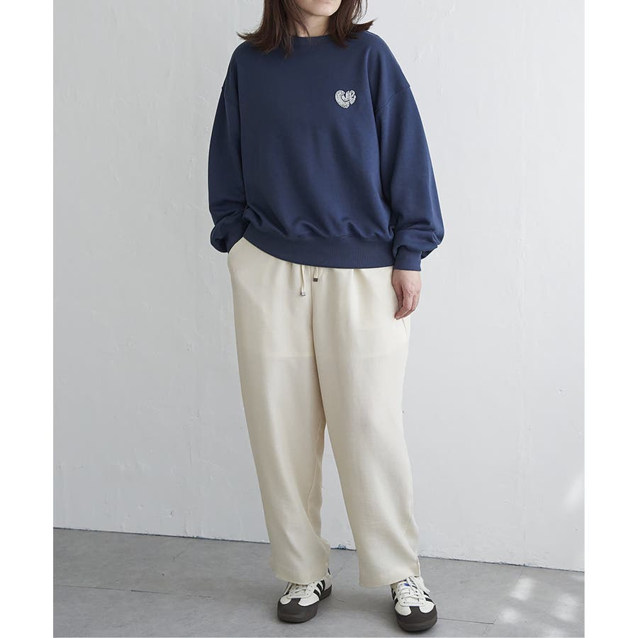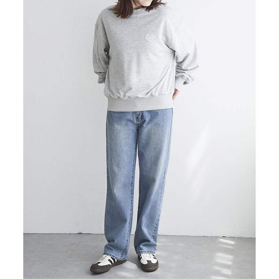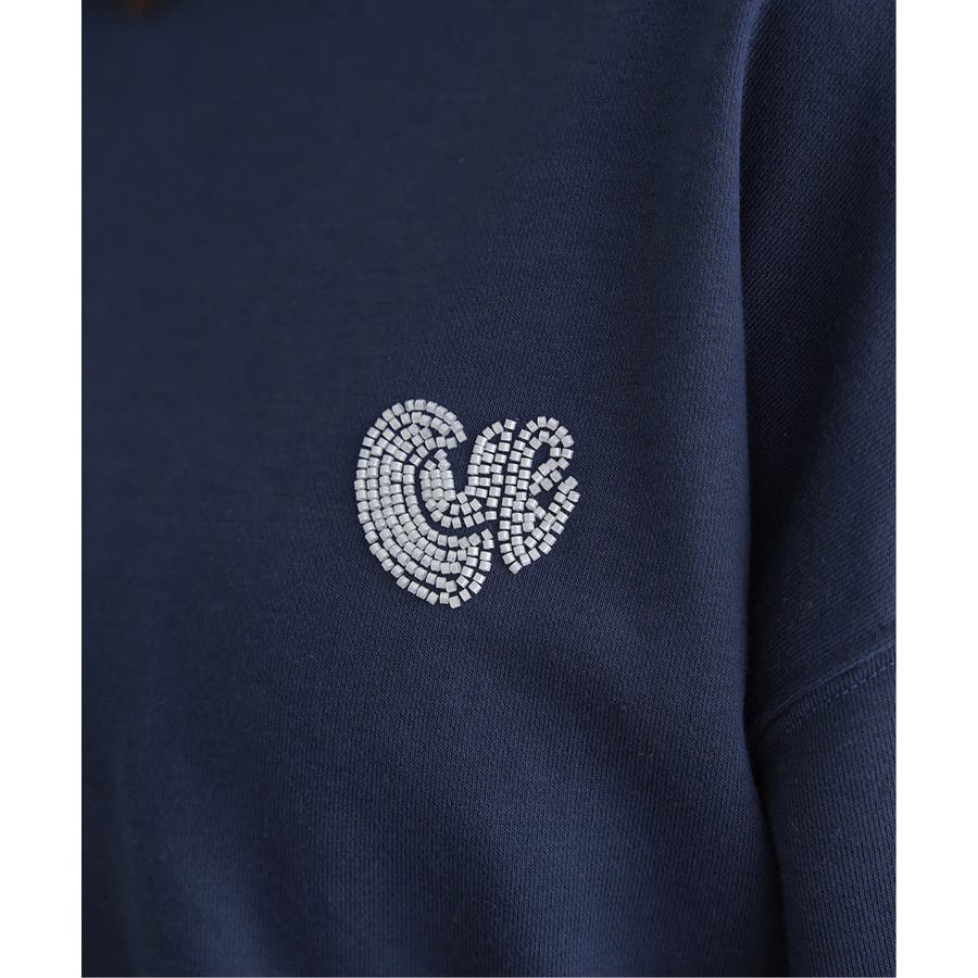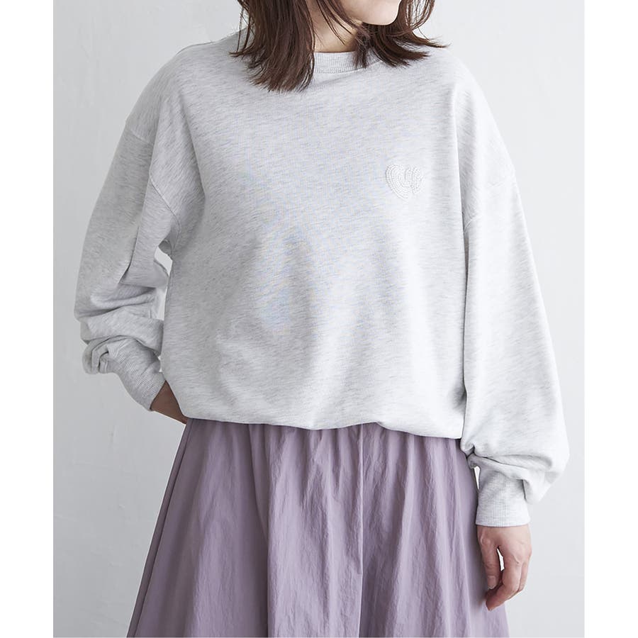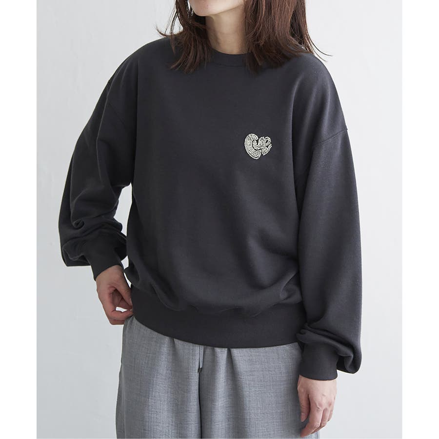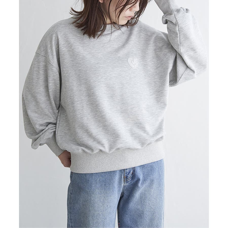 ハートのワンポイント刺繍が入ったミニマルなデザインのスウェット。