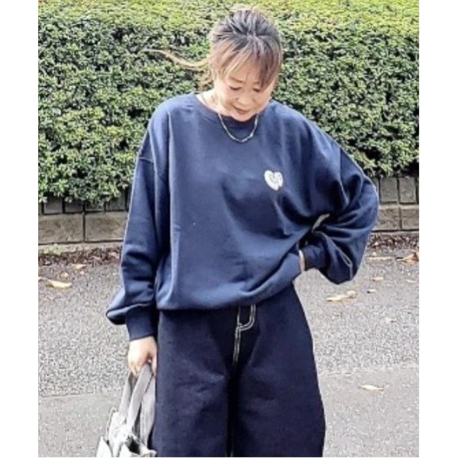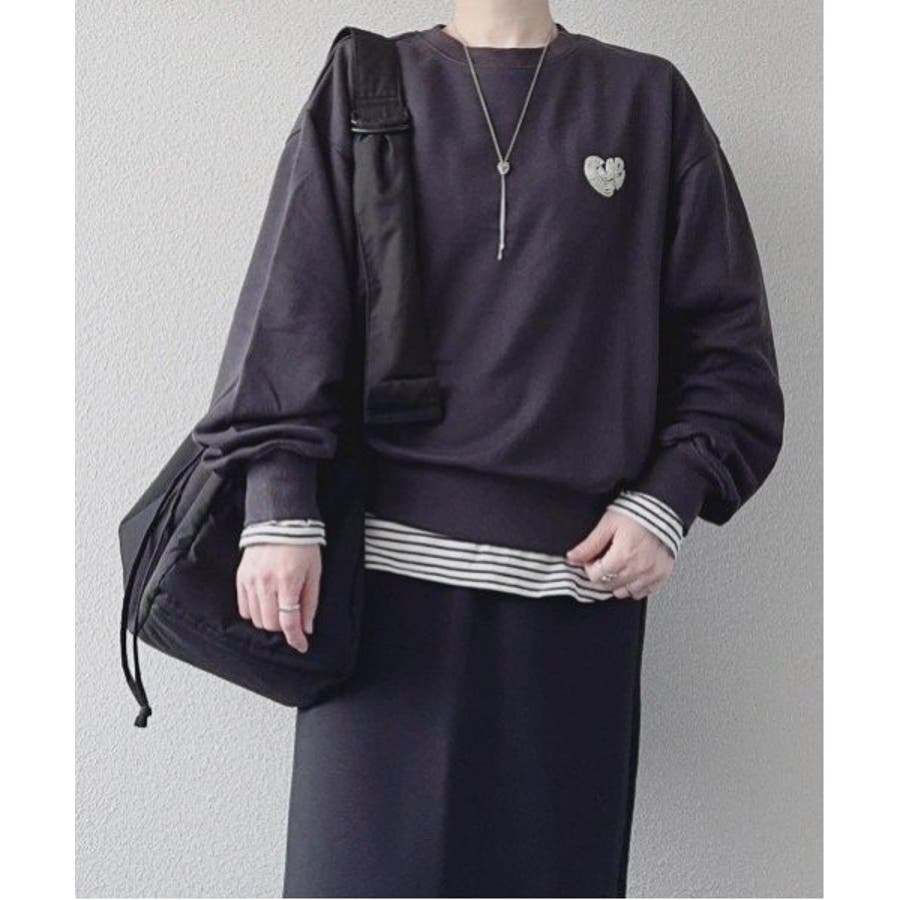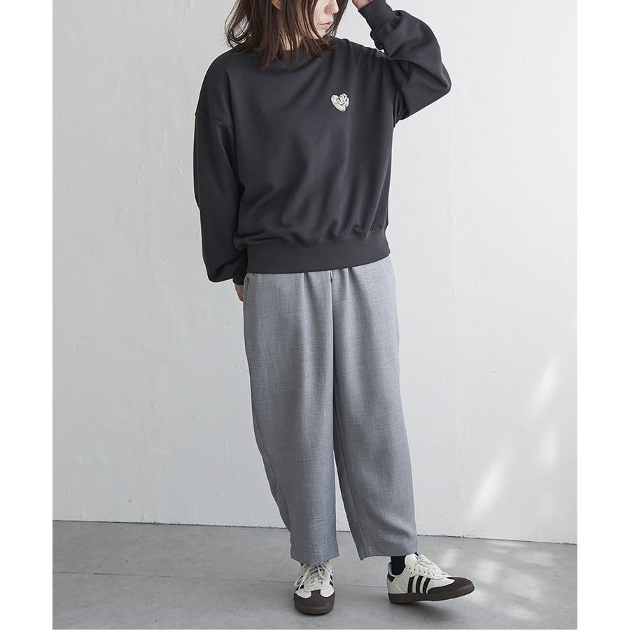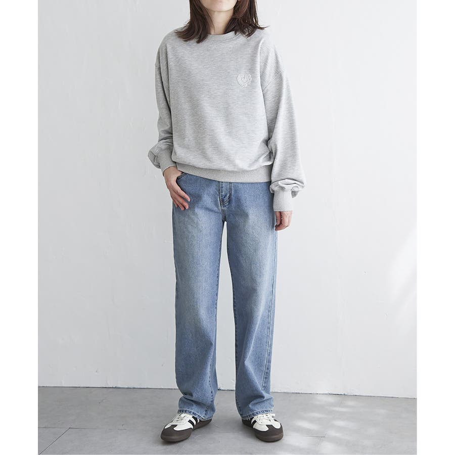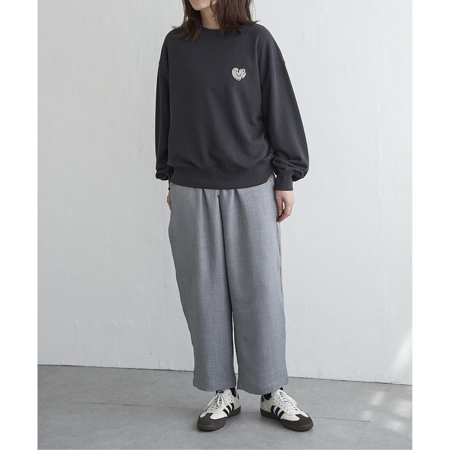 ハートのワンポイント刺繍が入ったミニマルなデザインのスウェット。