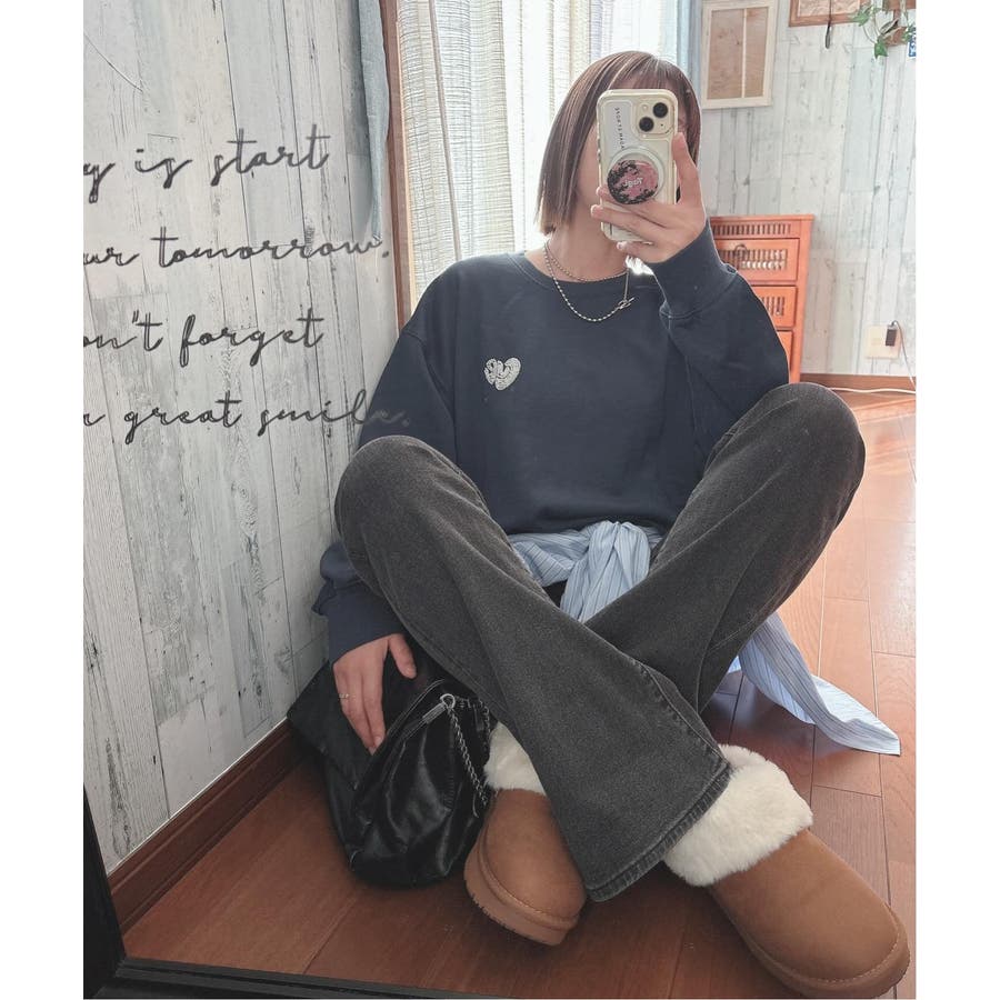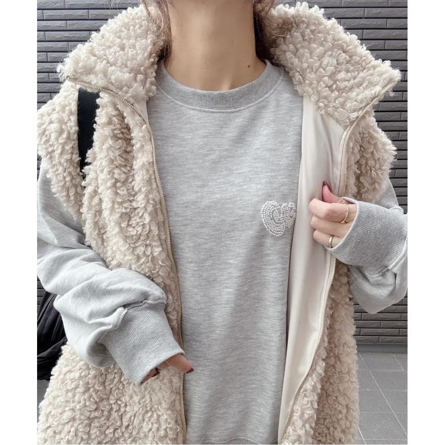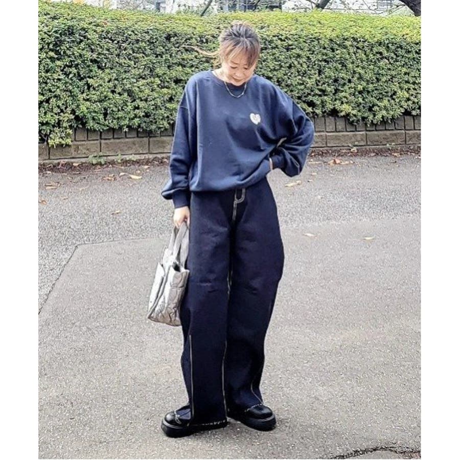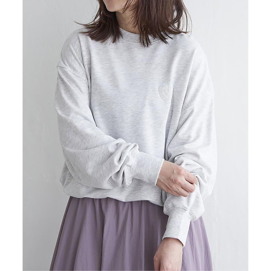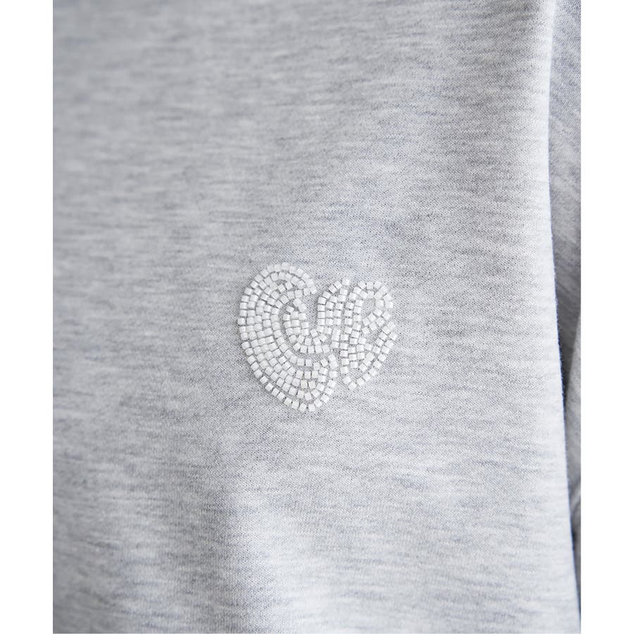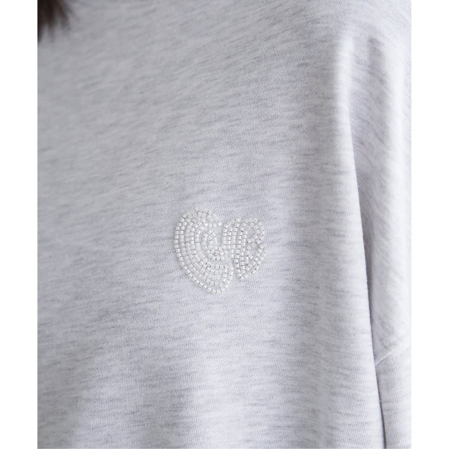 ハートのワンポイント刺繍が入ったミニマルなデザインのスウェット。