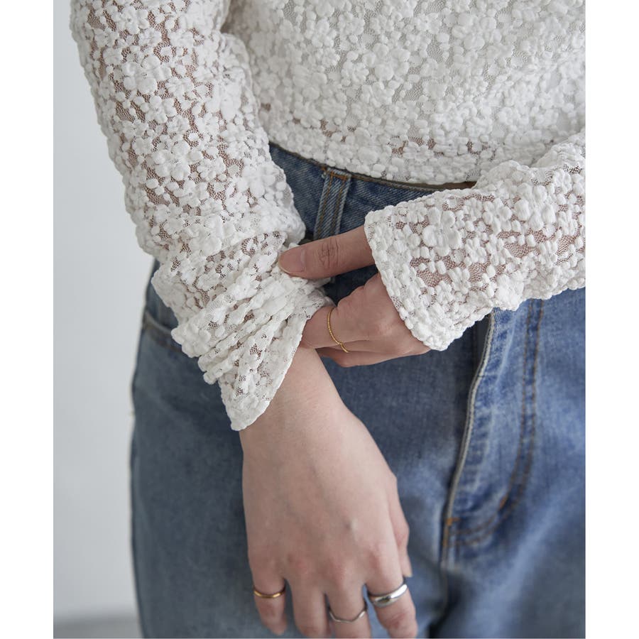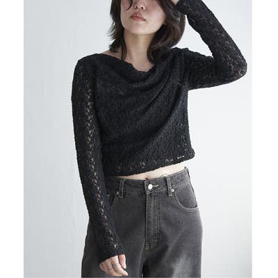 繊細な総レースとフロントのドレープが優雅なニュアンスを生むプルオーバー。